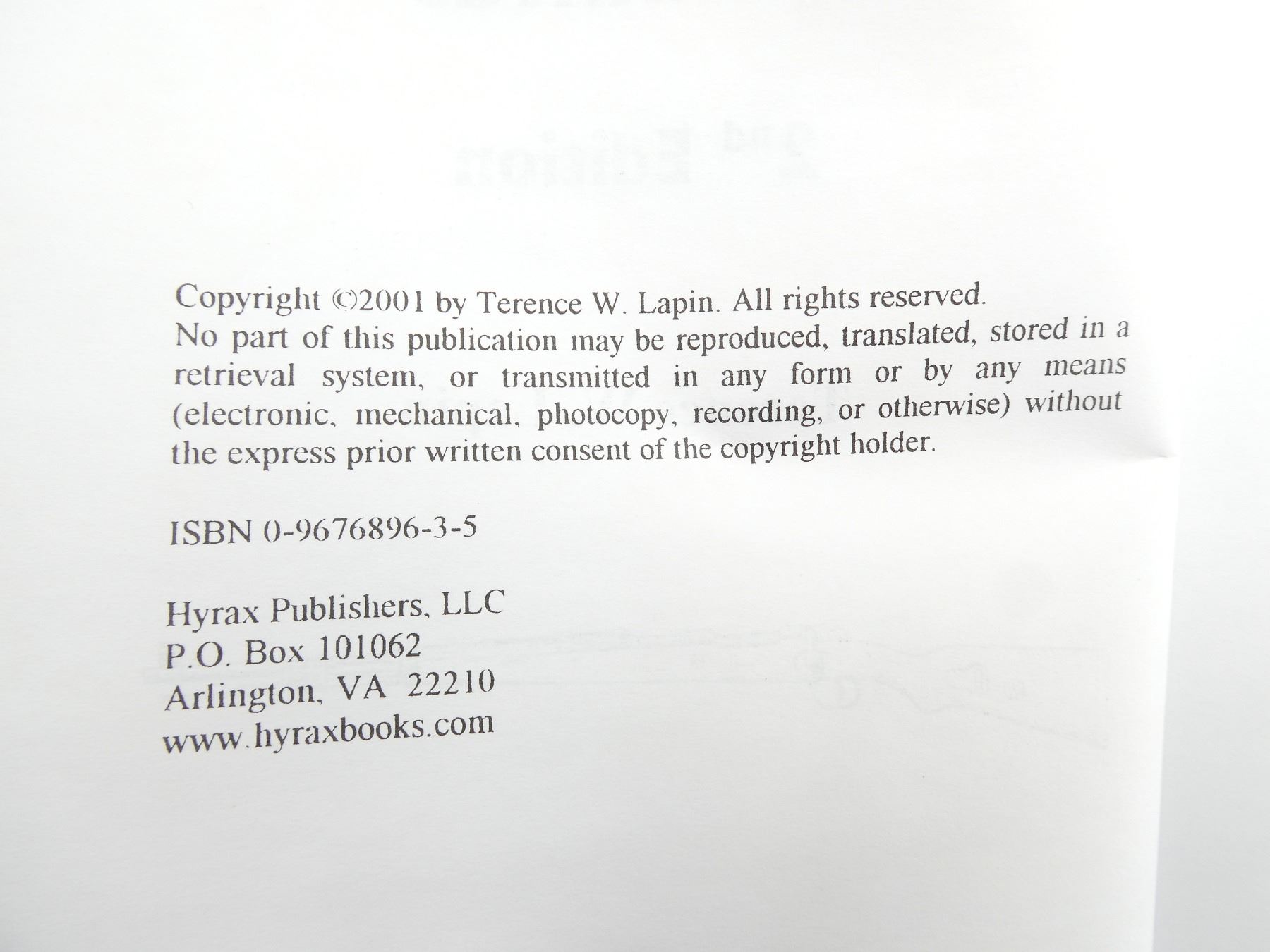 (1) BY TERENCE W. LAPIN, SOFT COVER, 2ND EDITION, ISBN: 0-9676896-3-5. SEE PHOTOS.
