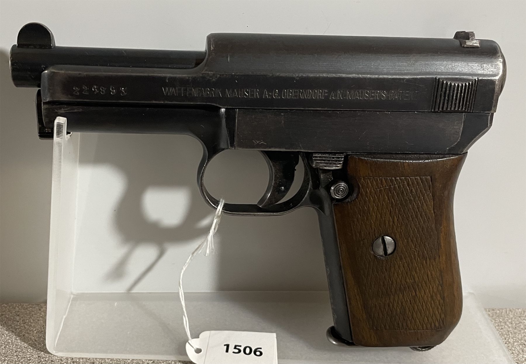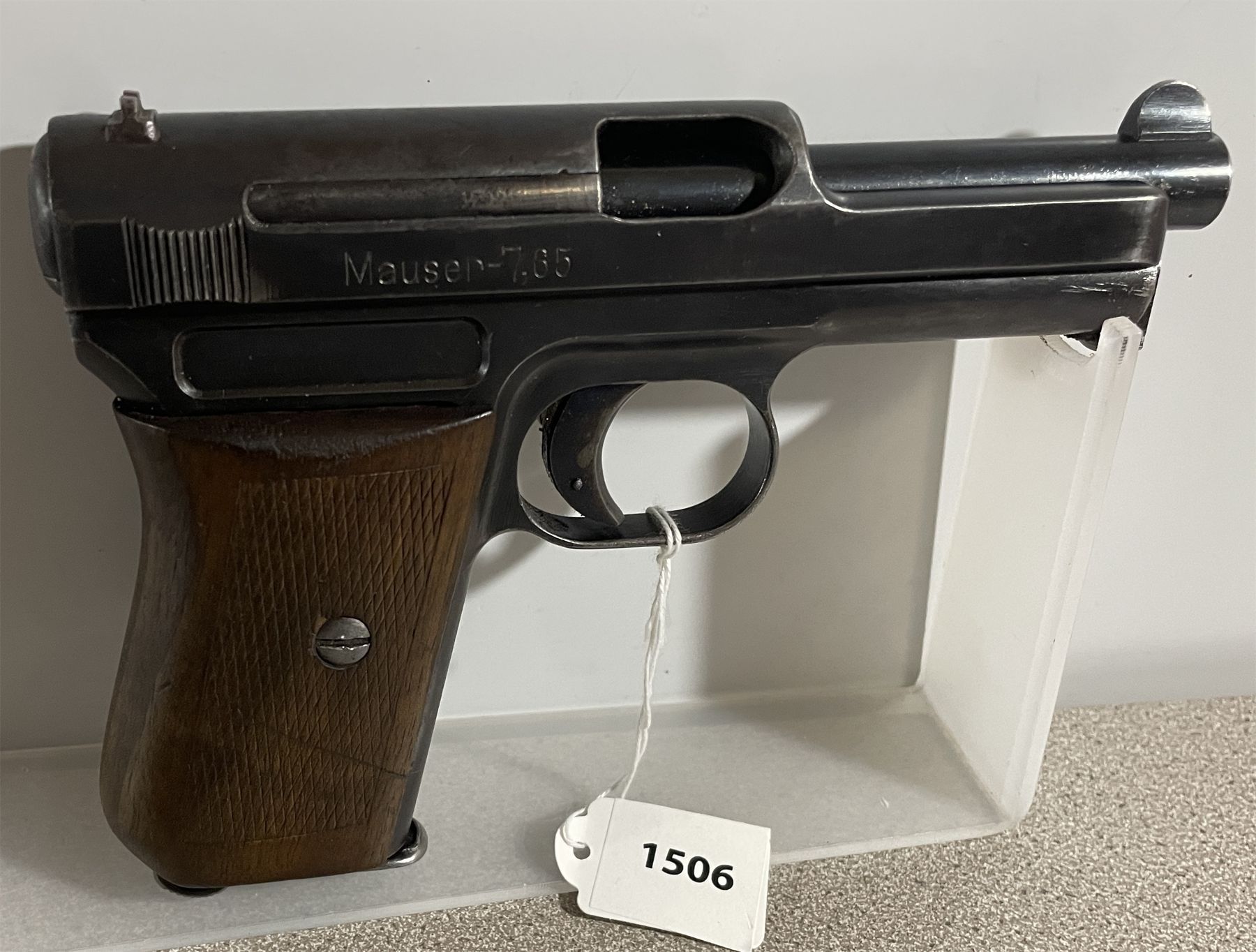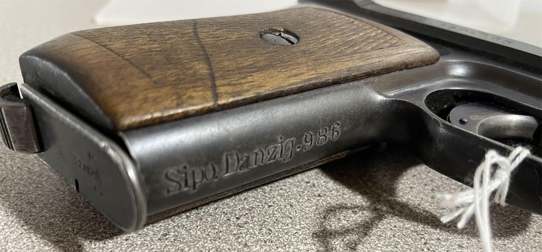 CONDITION: VG OVERALL. BORE VG - E. SPECS: 89 MM BARREL. SEMI-AUTO. MARKED SIPO DANZIG 986 - RARE SECRET POLICE MARKING. EXTRAS: S/N: 226893.