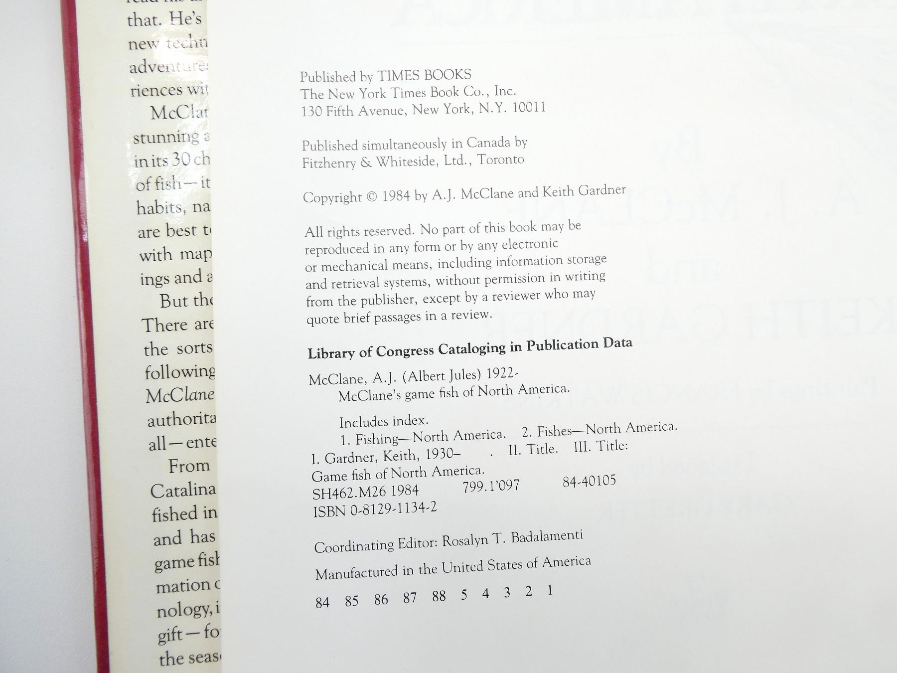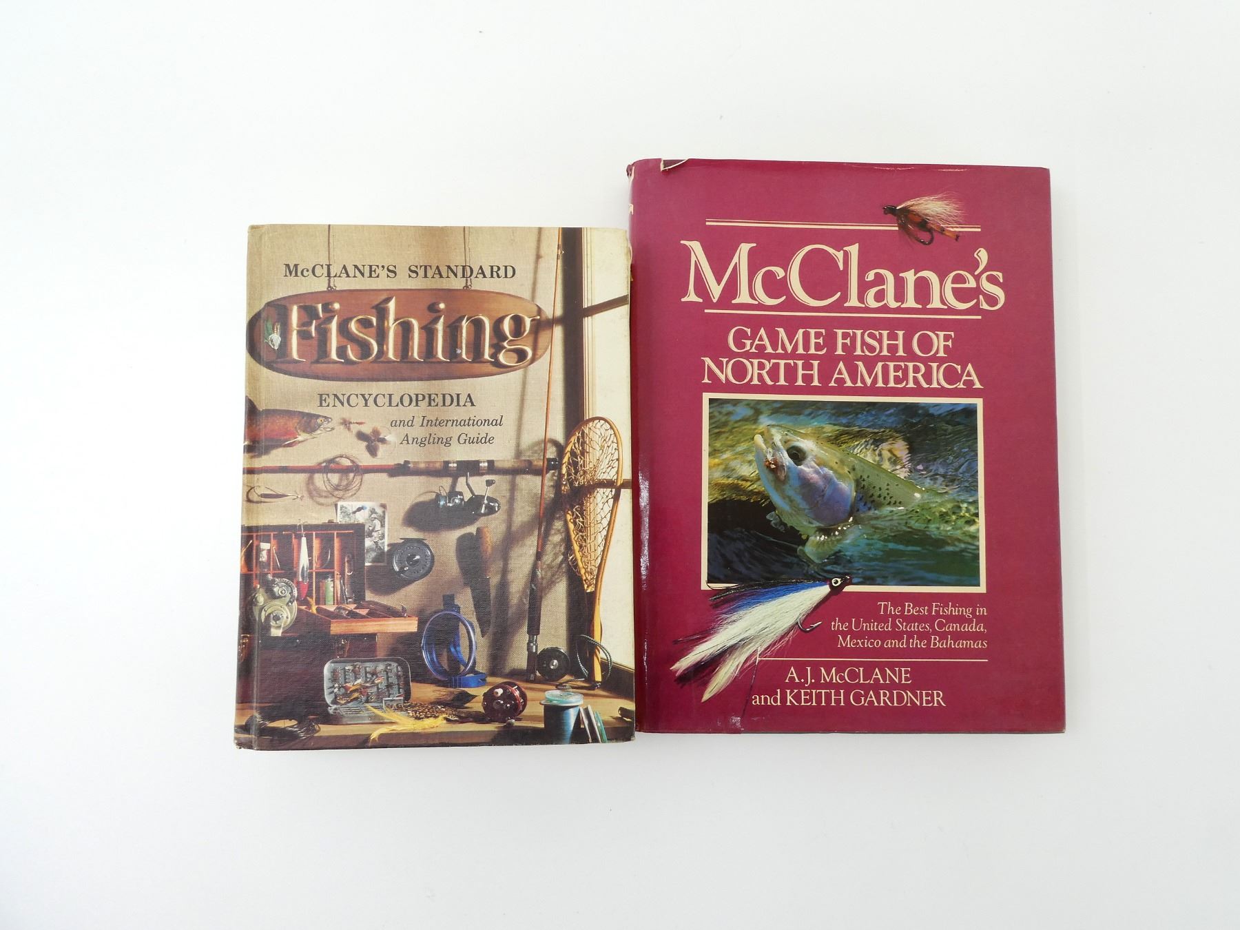 LOT INCLUDES; (1) "MCCLANE'S STANDARD FISHING ENCYCLOPEDIA" BOOK EDITED BY A. J. MCCLANE, HARD COVER, COPYRIGHT 1965 & (1) "MCCLANE'S GAME FISH OF NORTH AMERICA" BOOK BY A. J. MCCLANE & KEITH GARDNER, HARD COVER WITH DUST COVER, ISBN: 0-8129-1134-2. SEE PHOTOS.