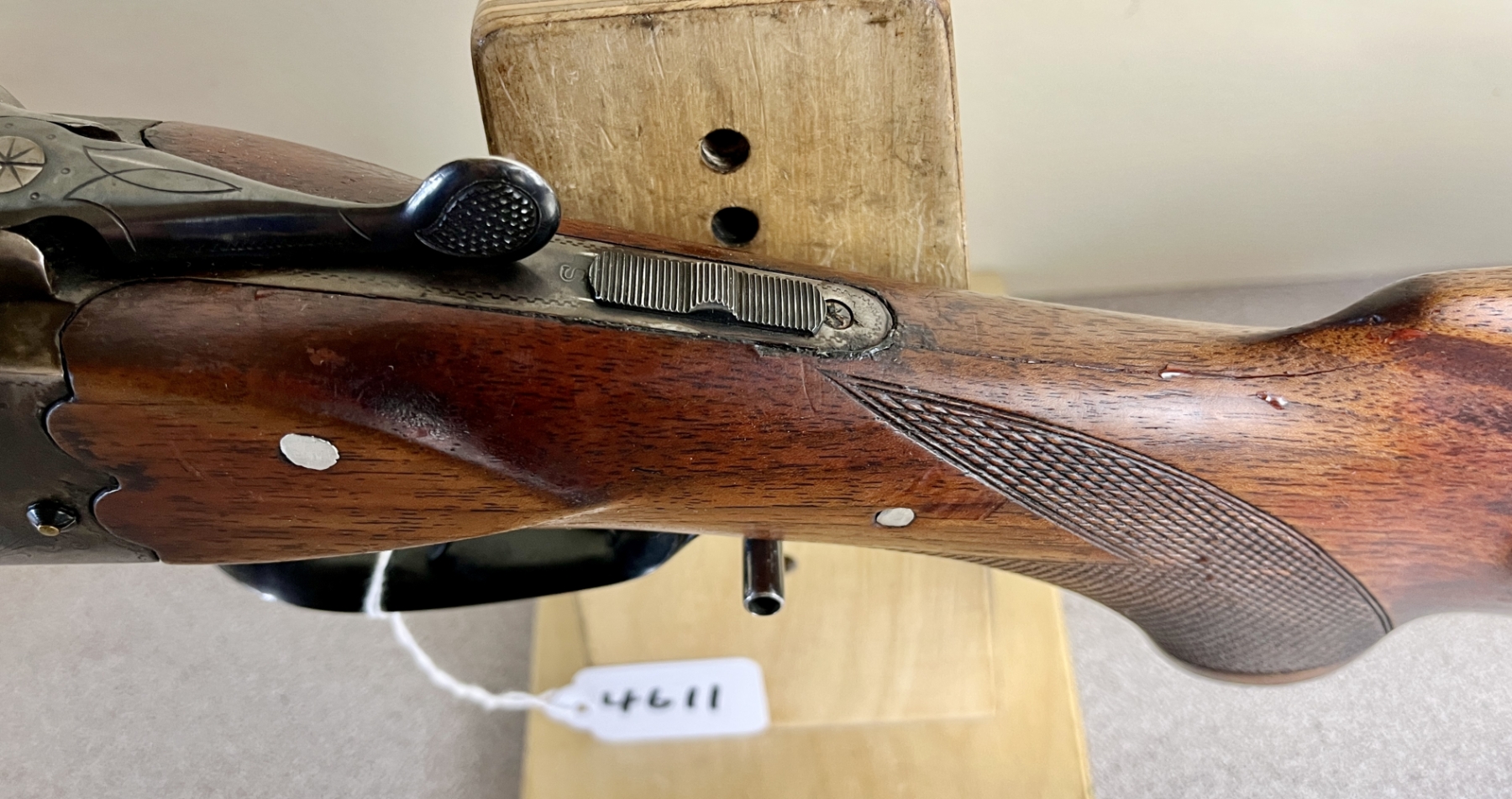 CONDITION: F-G OVERALL, BORES VG. NOTE: BUTTSTOCK SHOWS REPAIRED CRACK AT WRIST. SPECS: 28IN SXS BBLS FIXED FULL BY FULL CHOKES. EXTRAS: NONE. S/N: 539765