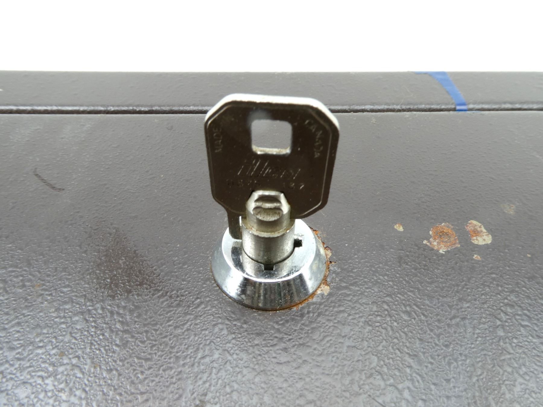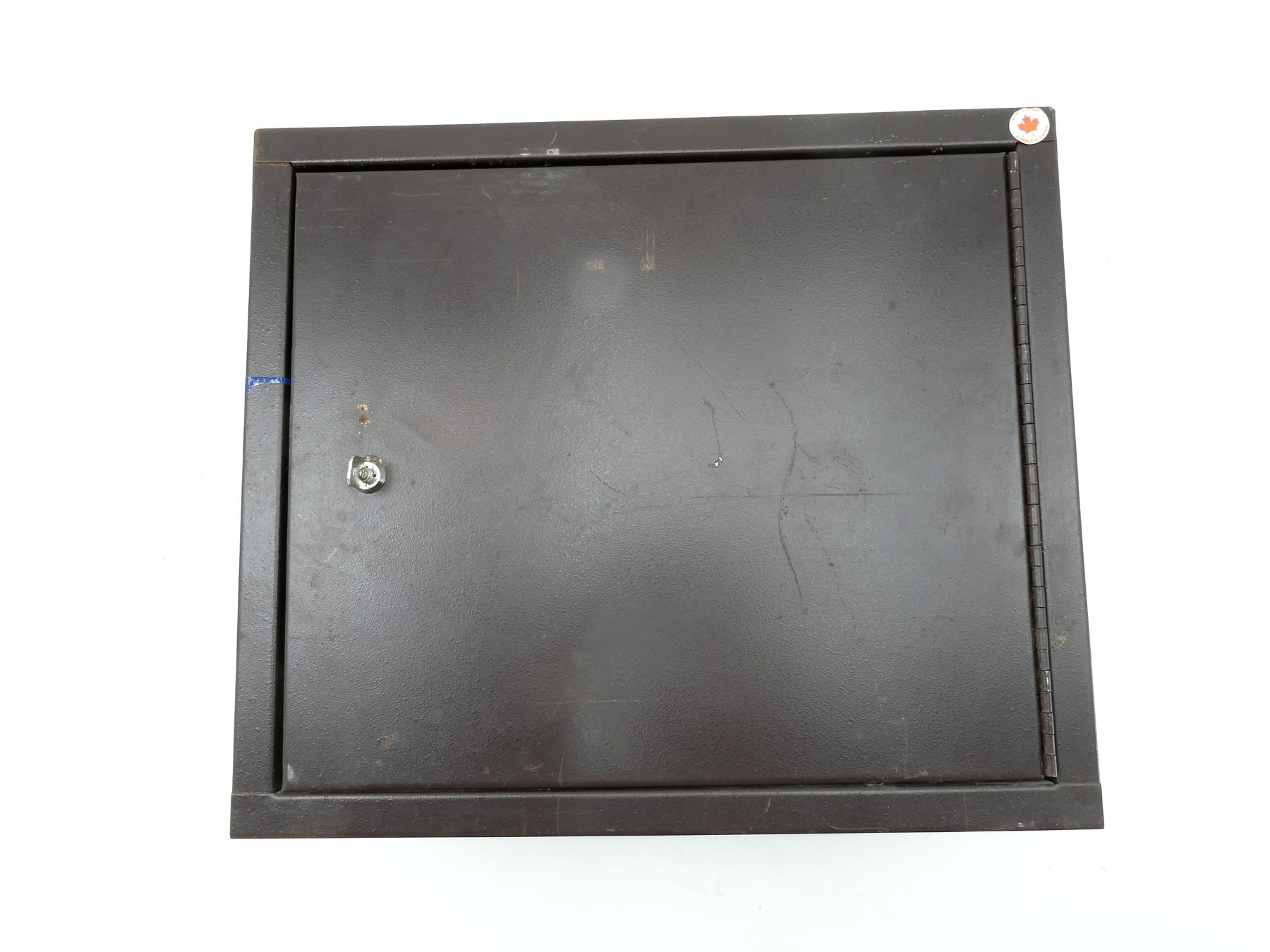 LOT INCLUDES; (1) BROWN METAL GUN CABINET, PADDED, SINGLE LOCK, WITH 1 KEYS, LOCK IS BROKEN, (2) SHELVES WITH FOAM, SHOWS WEAR AND TEAR FROM USAGE, SEE PHOTOS. APPROX. 21"X10"X18".