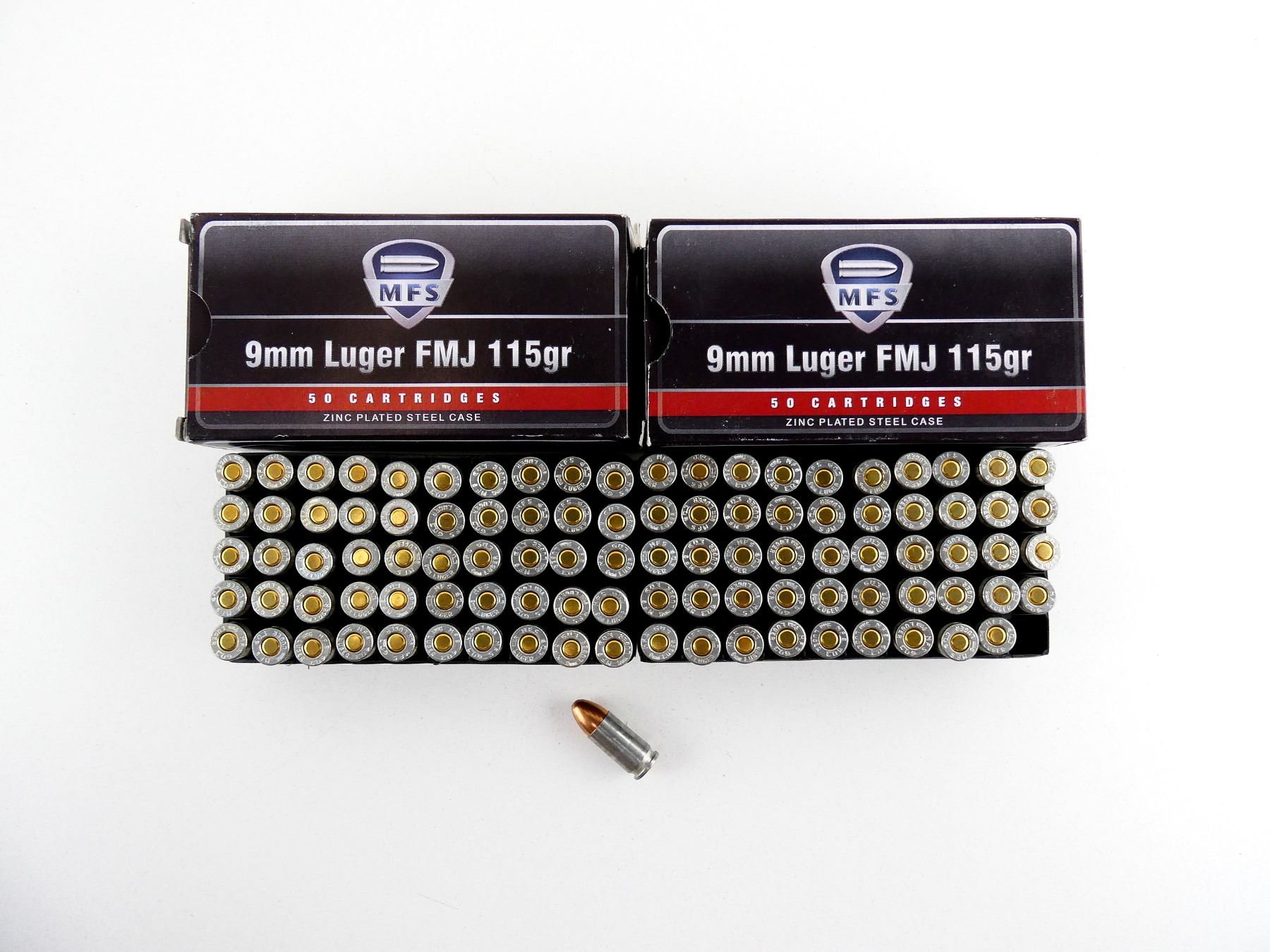 LOT INCLUDES; APPROX. (100) RNDS, 115 GRNS (STATED ON BOXES NOT CONFIRMED), FMJ.
