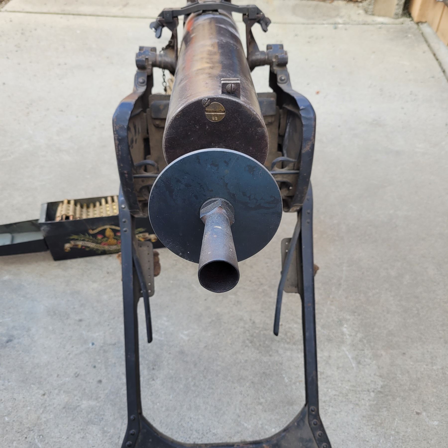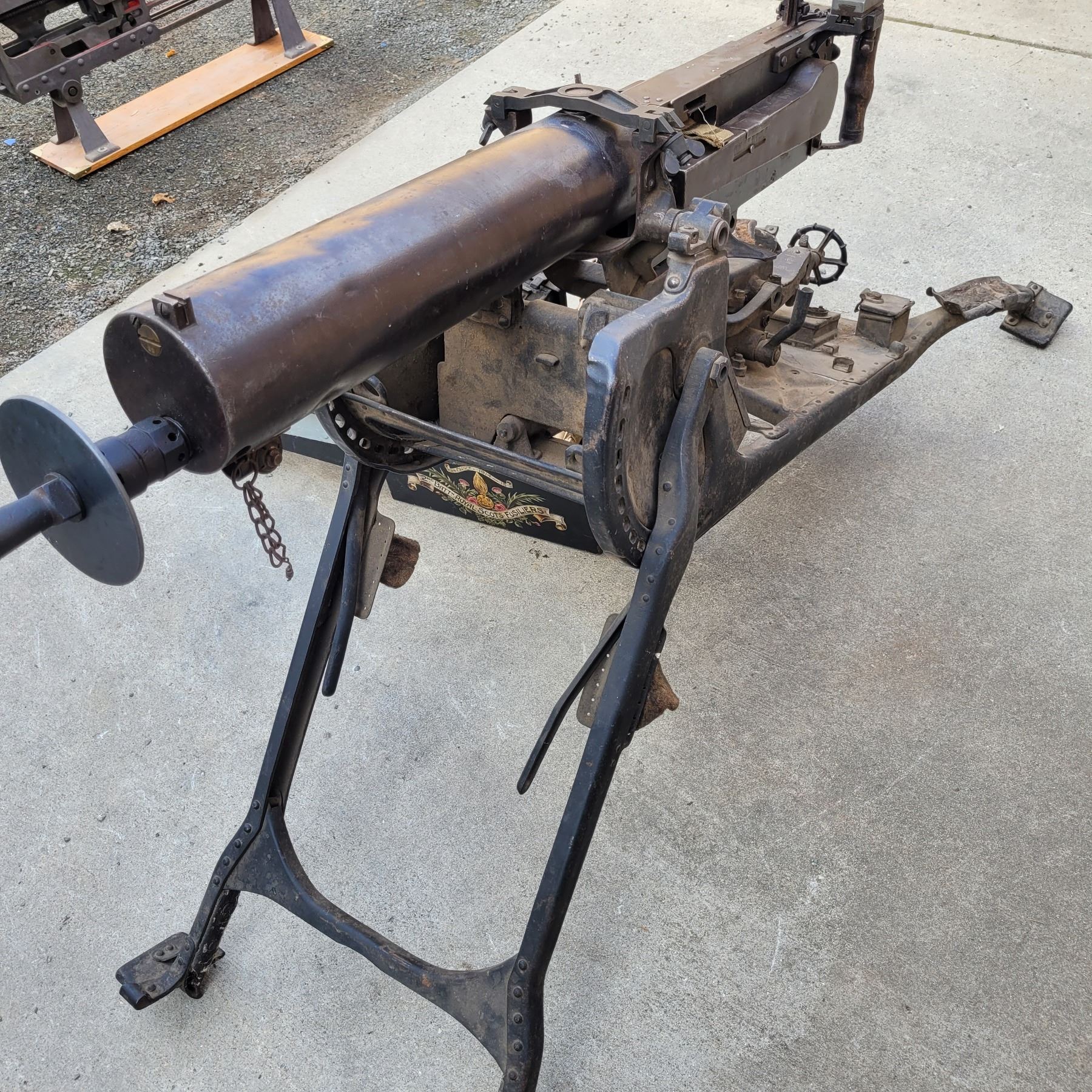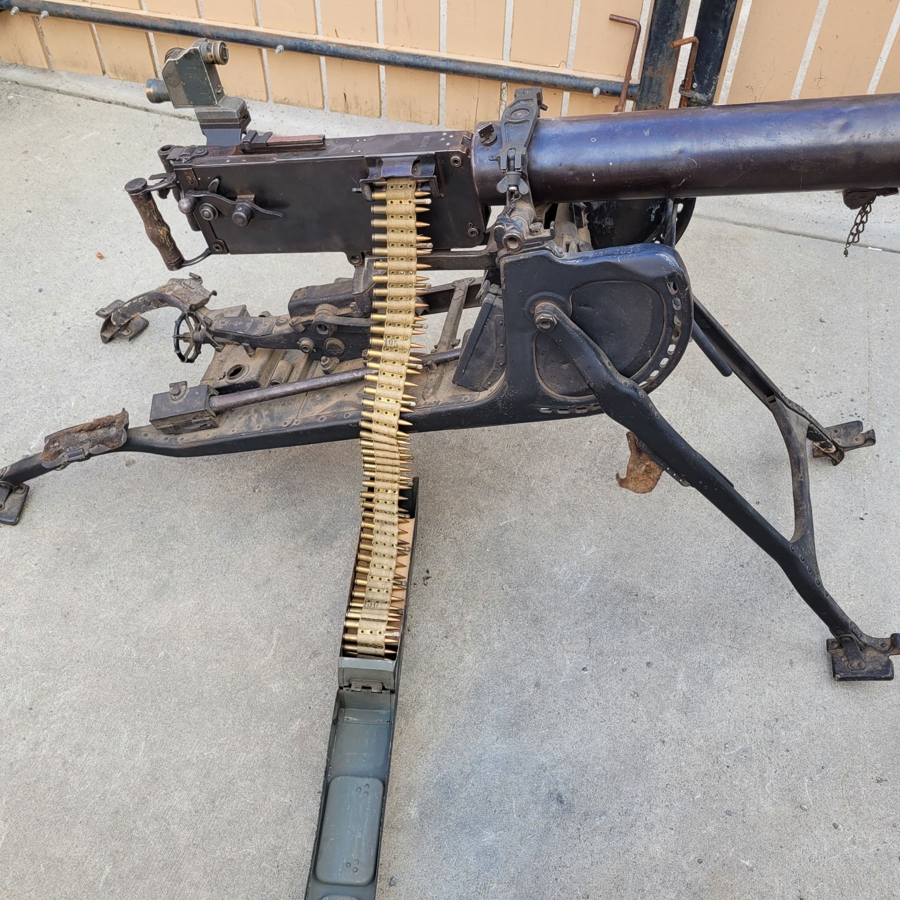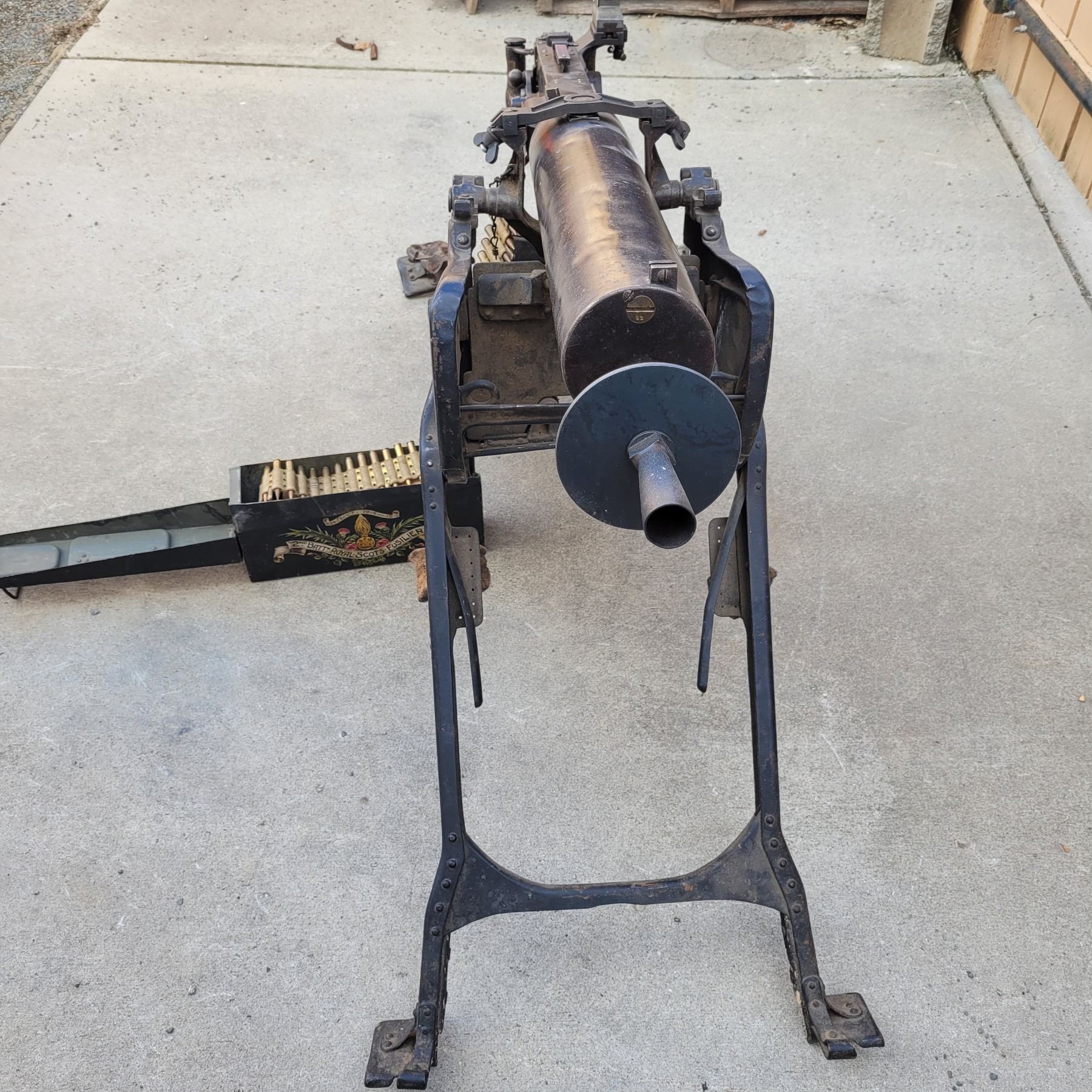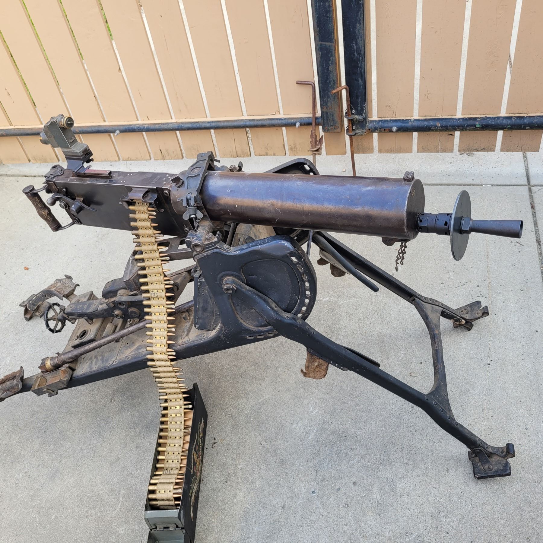 This is an original deactivated gun complete with the original sled and ammo can.