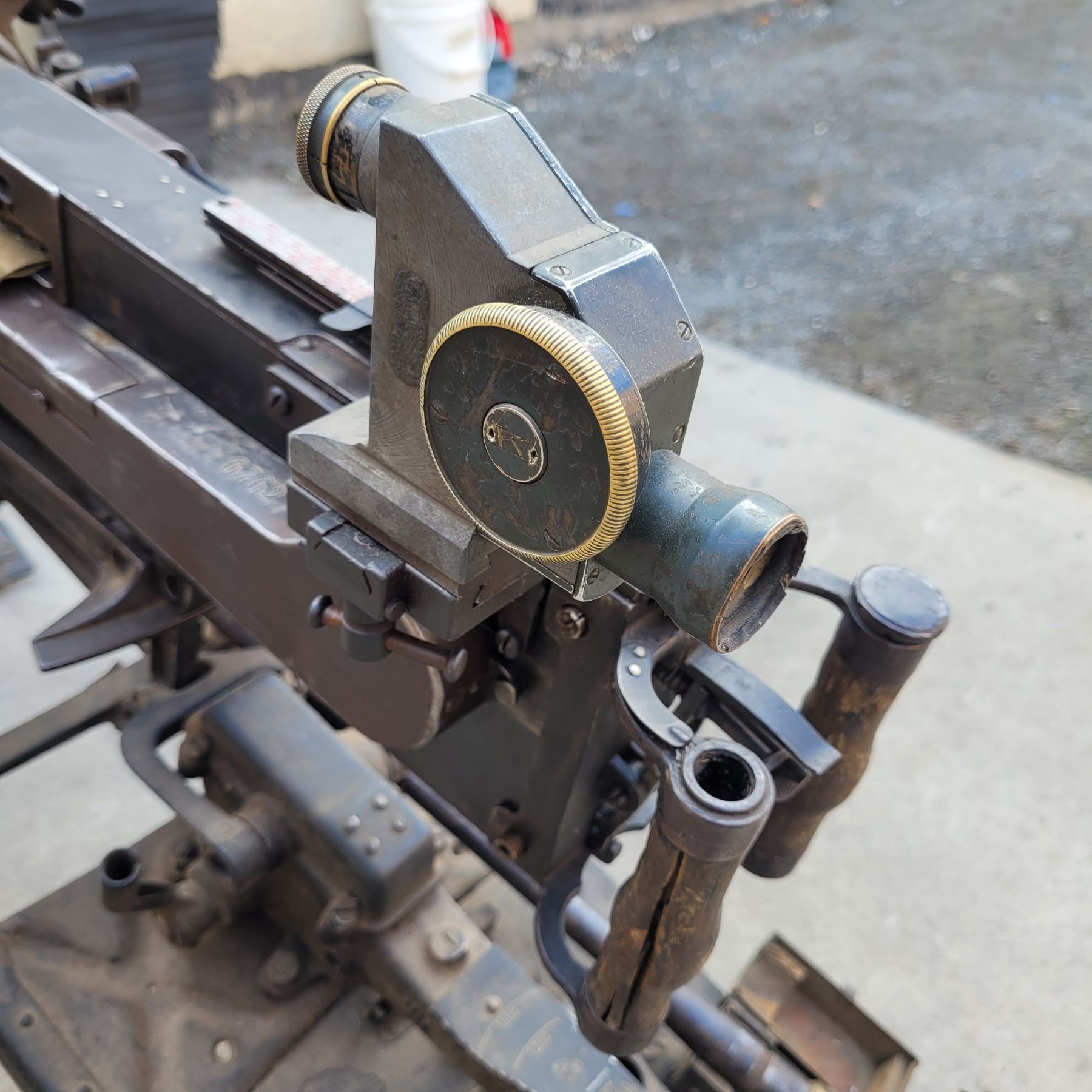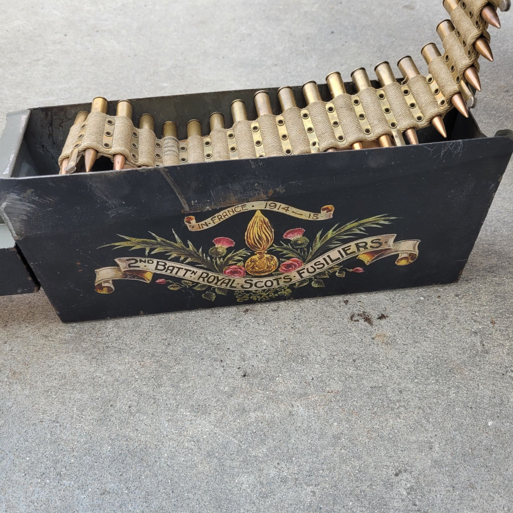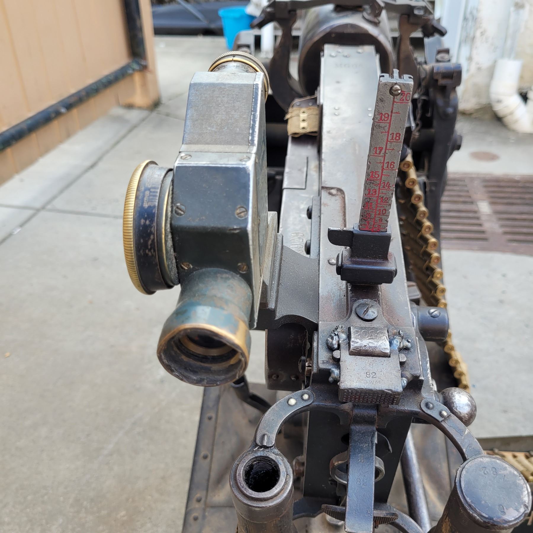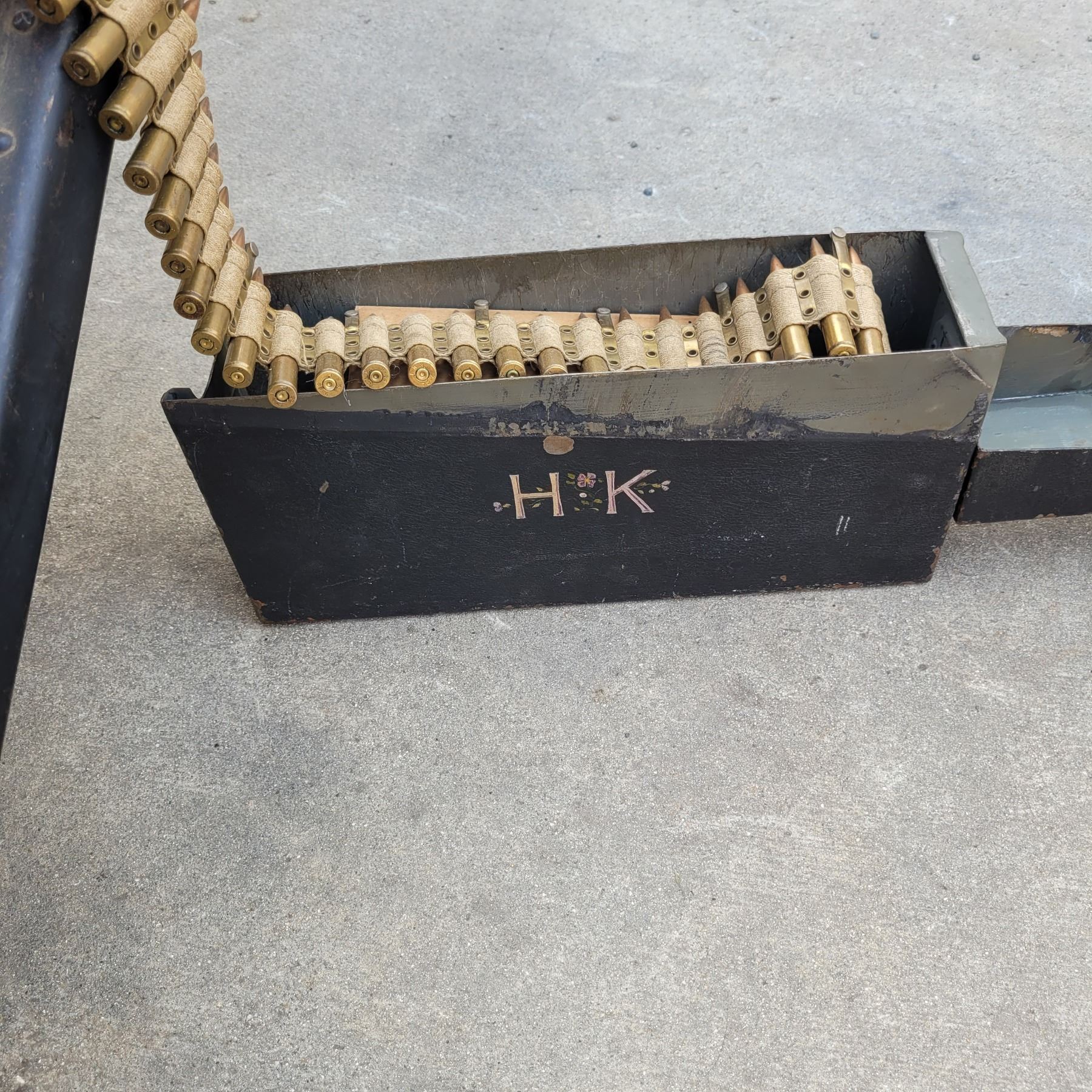 This is an original deactivated gun complete with the original sled and ammo can.
