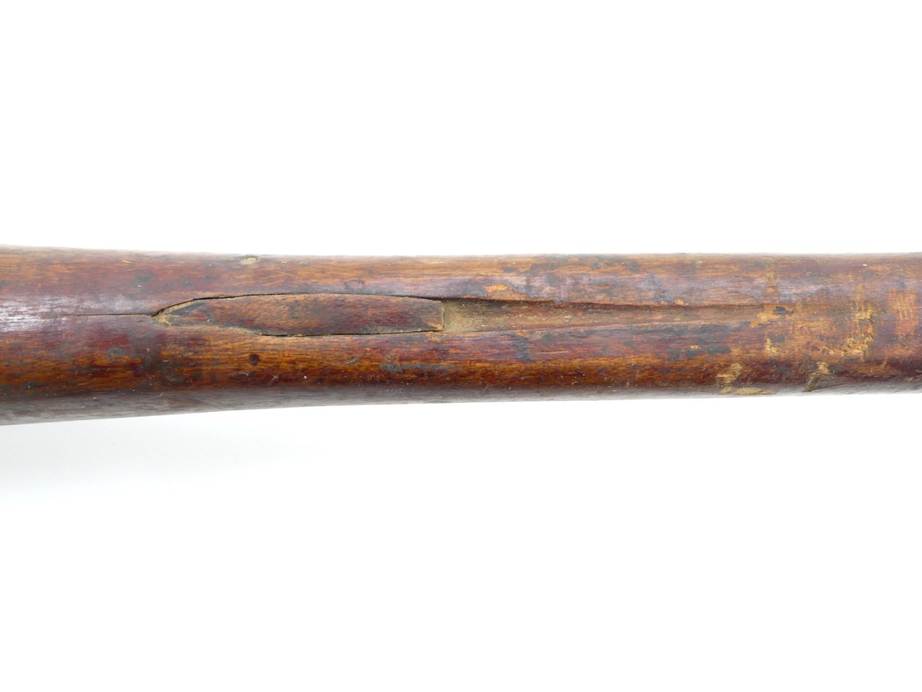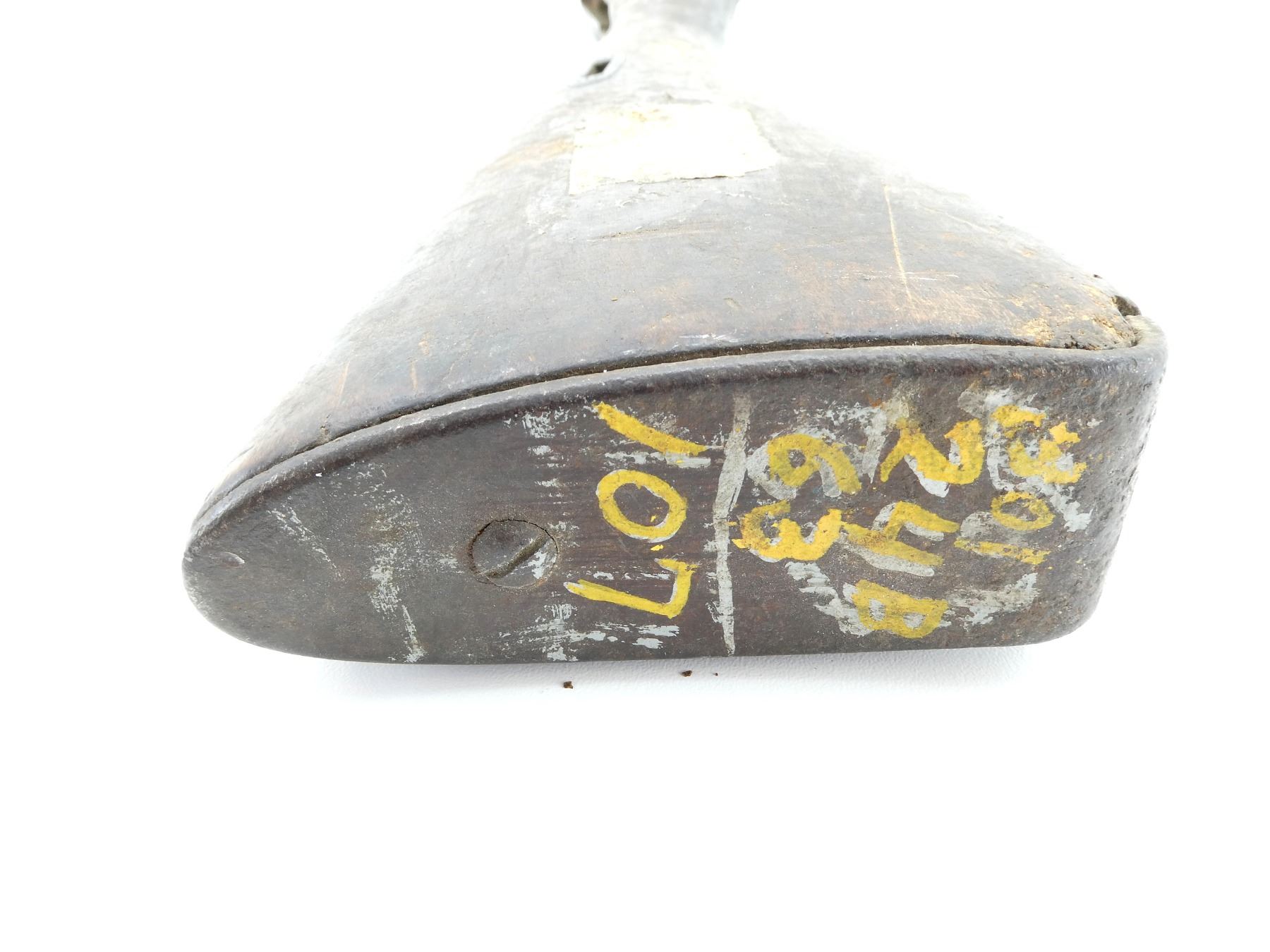 (1) WOODEN CONSTRUCTION WITH METAL FITTING, SMOOTH, UNMARKED, OVERALL LENGTH APPROX. 35 1/8". MAY REQUIRE FITTING. SEE PHOTOS.