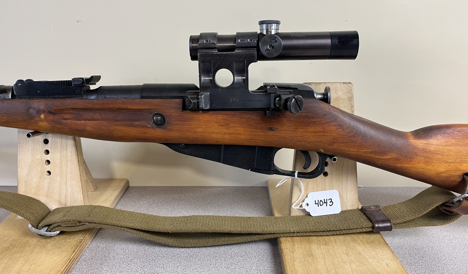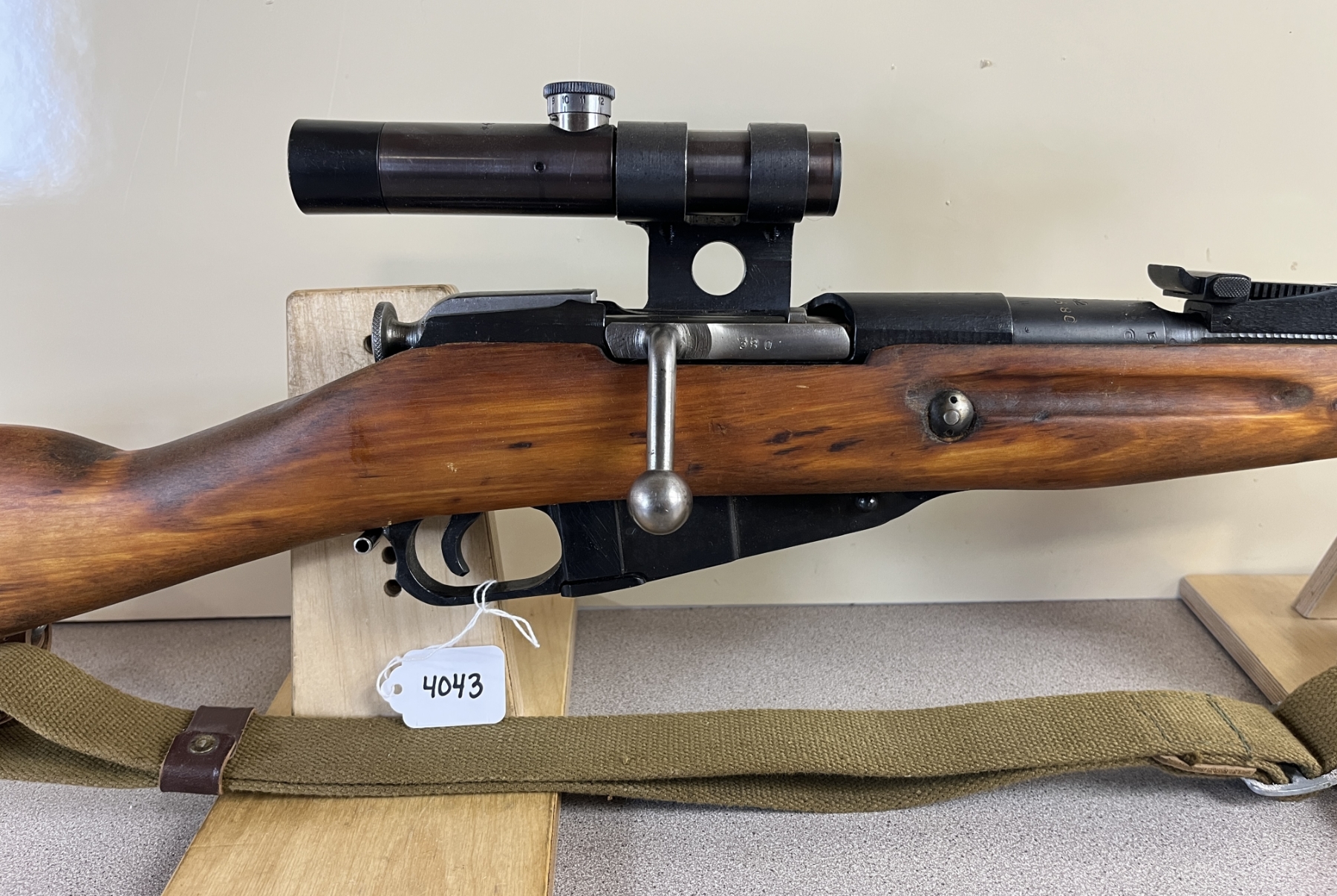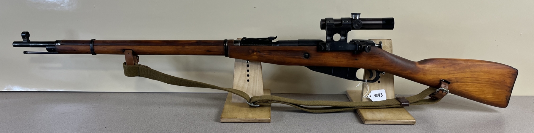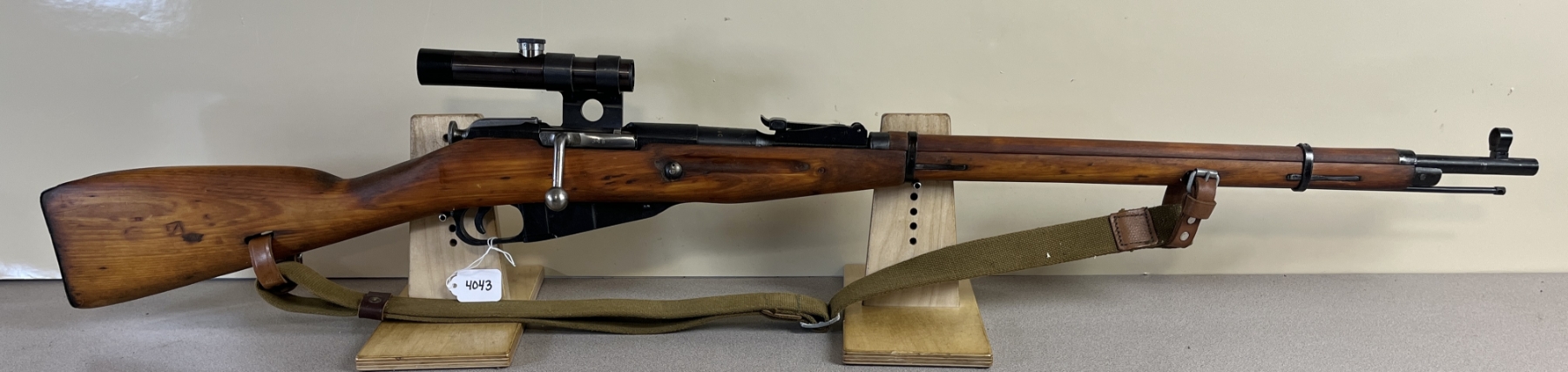 CONDITION: G OVERALL. BORE F. SPECS: 29IN BBL W/ IRON SIGHTS. EXTRAS: SOVIET 91/30 OPTIC. CLEAR W/ POST RETICLE. CANVAS SLING. S/N: E380.