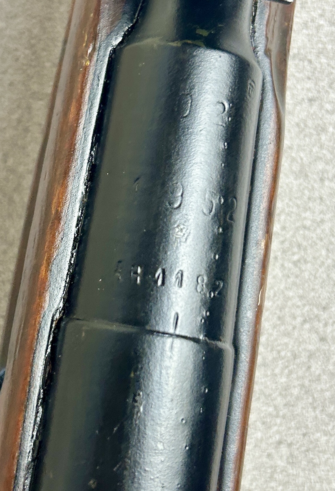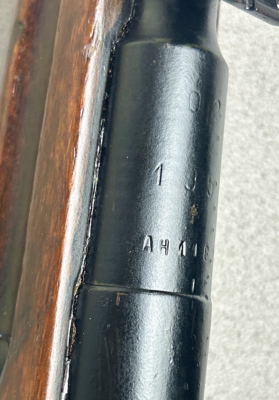 CONDITION: G OVERALL, FOR AGE, INCL BORE. NOTE: POSSIBLY REFINISHED, REPAIRED CRACK FRONT OF STOCK. NOTE: MISSING BAYONET. SPECS: 20IN BBL. HUNGARIAN STATE ARSENAL FACTORY 02 AS PER CONSIGNOR. EXTRAS: NONE. S/N: AH1182