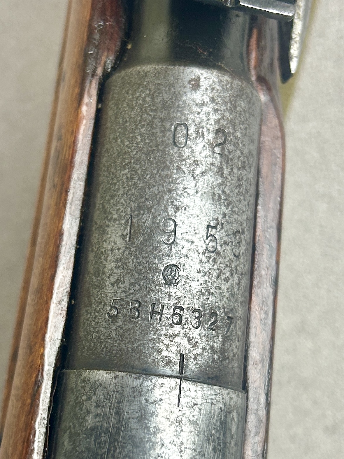 CONDITION: G OVERALL, FOR AGE, BORE F-G. NOTE: SOME FINISH LOSS, BORE IS DIRTY. SPECS: 20-1/2IN BBL. FOLDING BAYONET. EXTRAS: SLING. S/N: 5BH6327