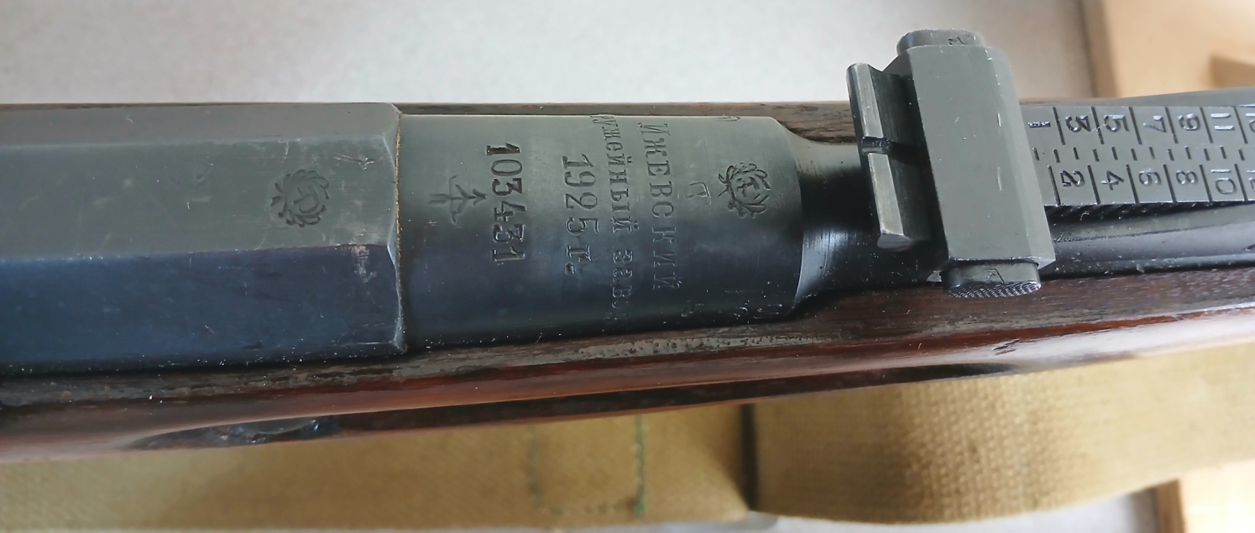 CONDITION: G OVERALL INCL BORE. SPECS: 29-1/2IN BBL. MANUFACTURED IN IZHEVSK IN 1925. EXTRAS: WEB SLING, BAYONET. S/N: 103431, NUMBERS REFURBISHED MATCHING