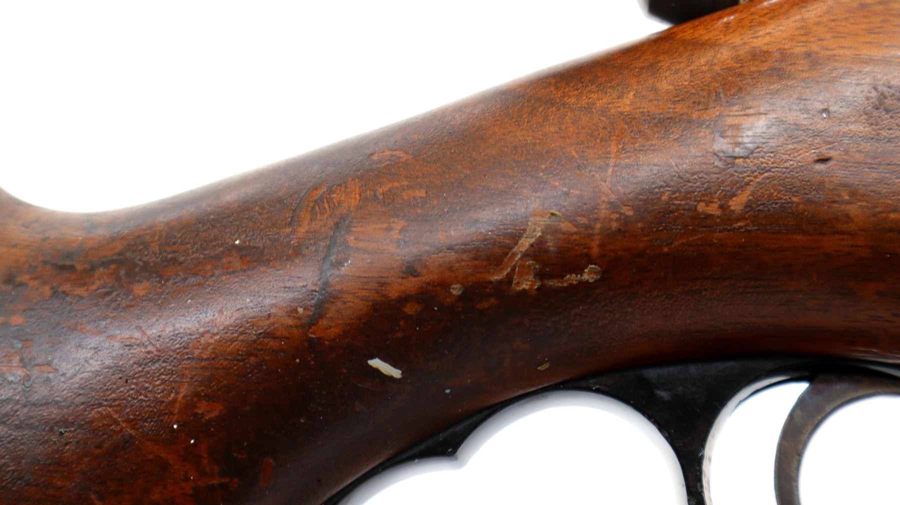 Wear: Metal finish shows a few light rust speckles, scratches, handling marks and wear. Stock shows some marks, scratches and wear.