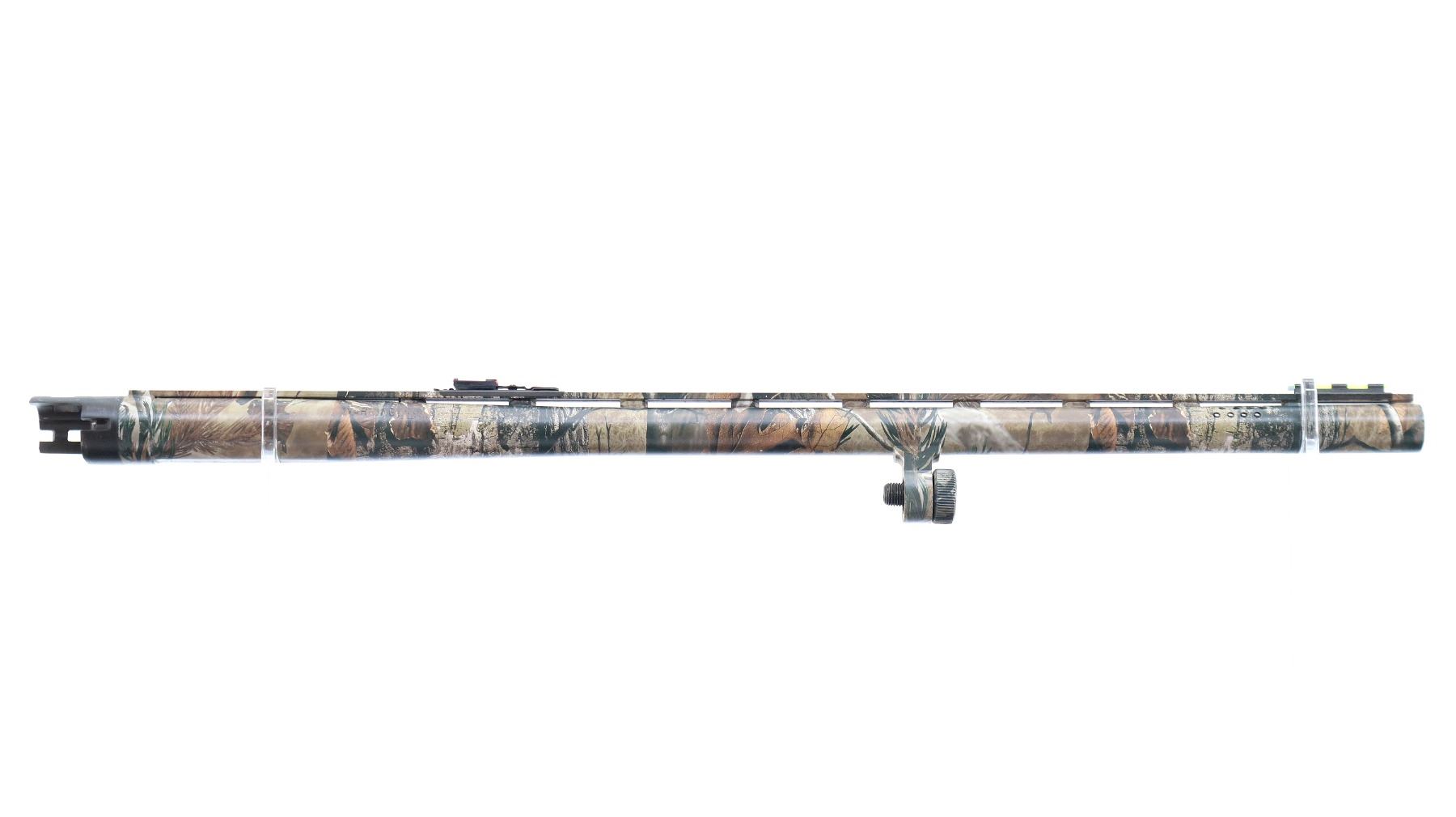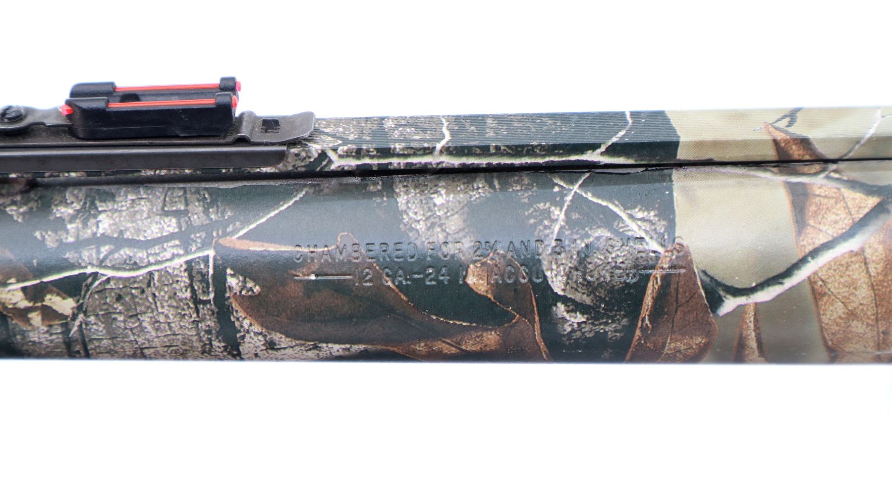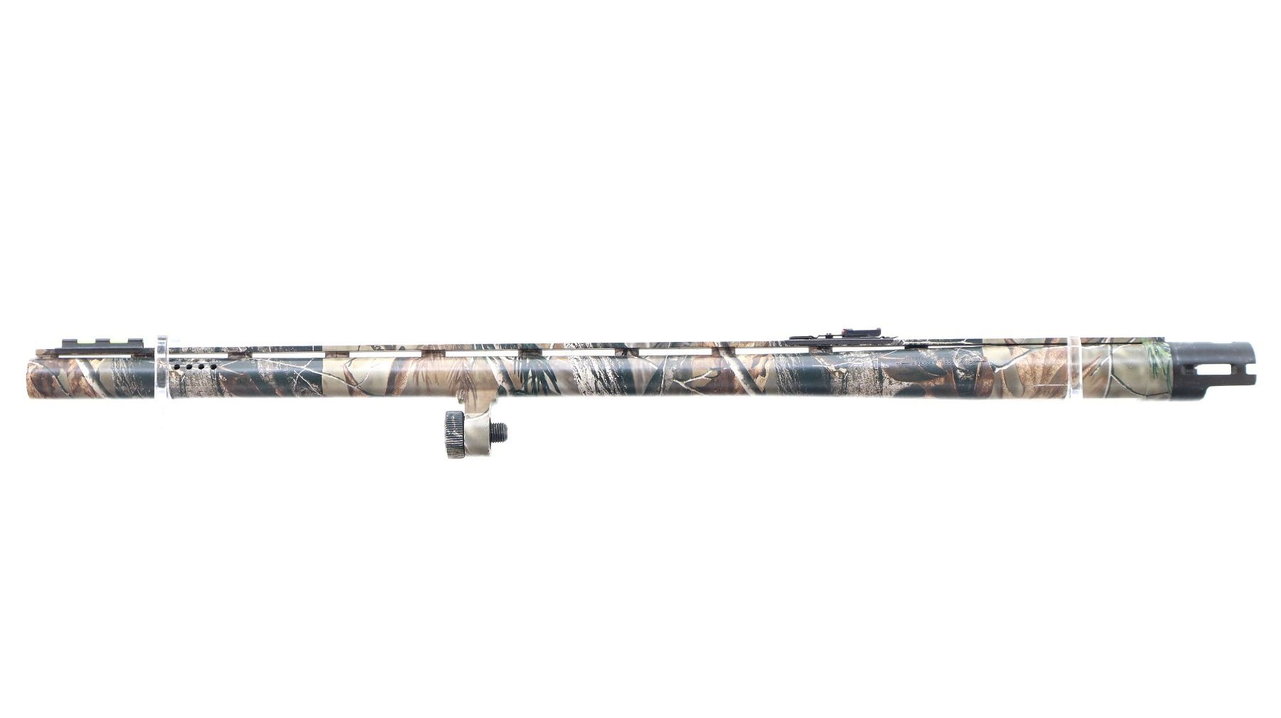 Main Description: No sights, AP HD Camo overall, round cantilever ported barrel with Tasco World Class True Mil Dot 3-9x40 scope installed, clear optics with Mil Dot reticle. Alloy receiver, tang safety, checkered forearm and pistol grip, black vented rubber recoil pad, grip cap, rear swivel stud. 2nd Barrel: 12 G X 3". 28", Very Good, Smooth, Removable Mod Choke Installed, white front and brass mid rib beads, ported vent rib. 3rd Barrel: 12 GX 3", 24", Excellent, smooth, Removable Full Choke Installed, green fiber optic front sight, adjustable u notched red fiber optic rear sight and ported vent rib.