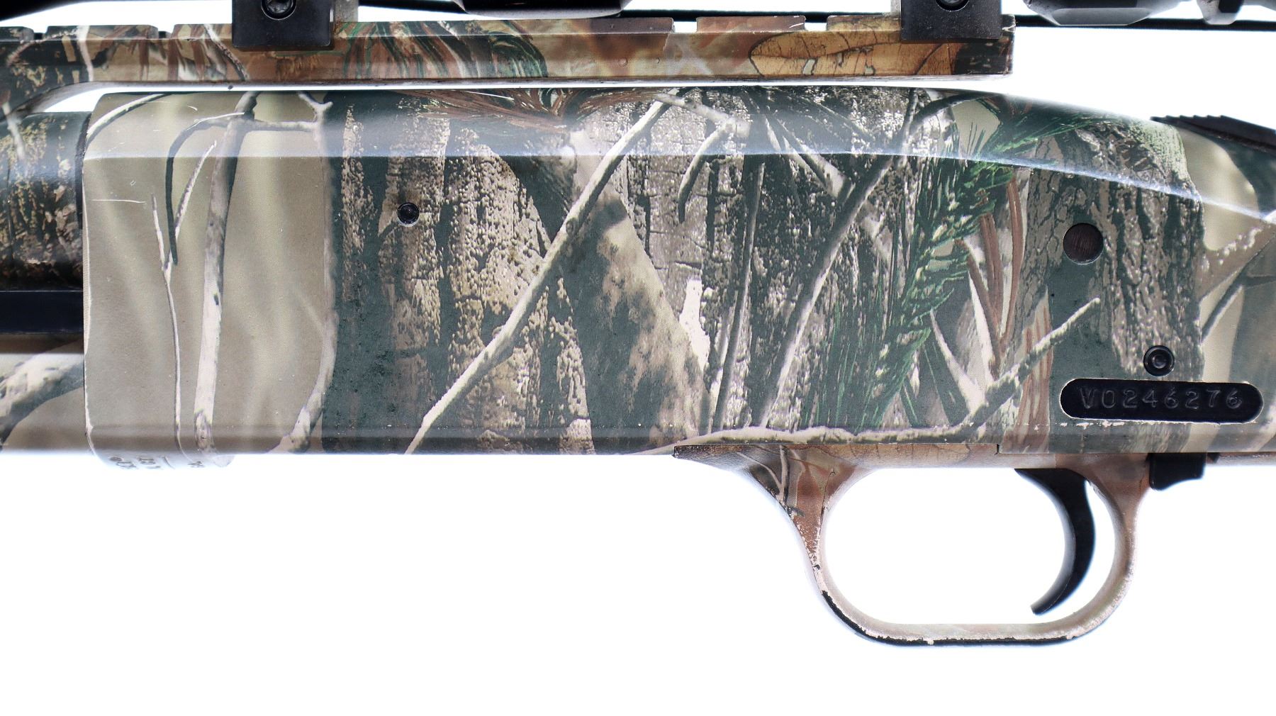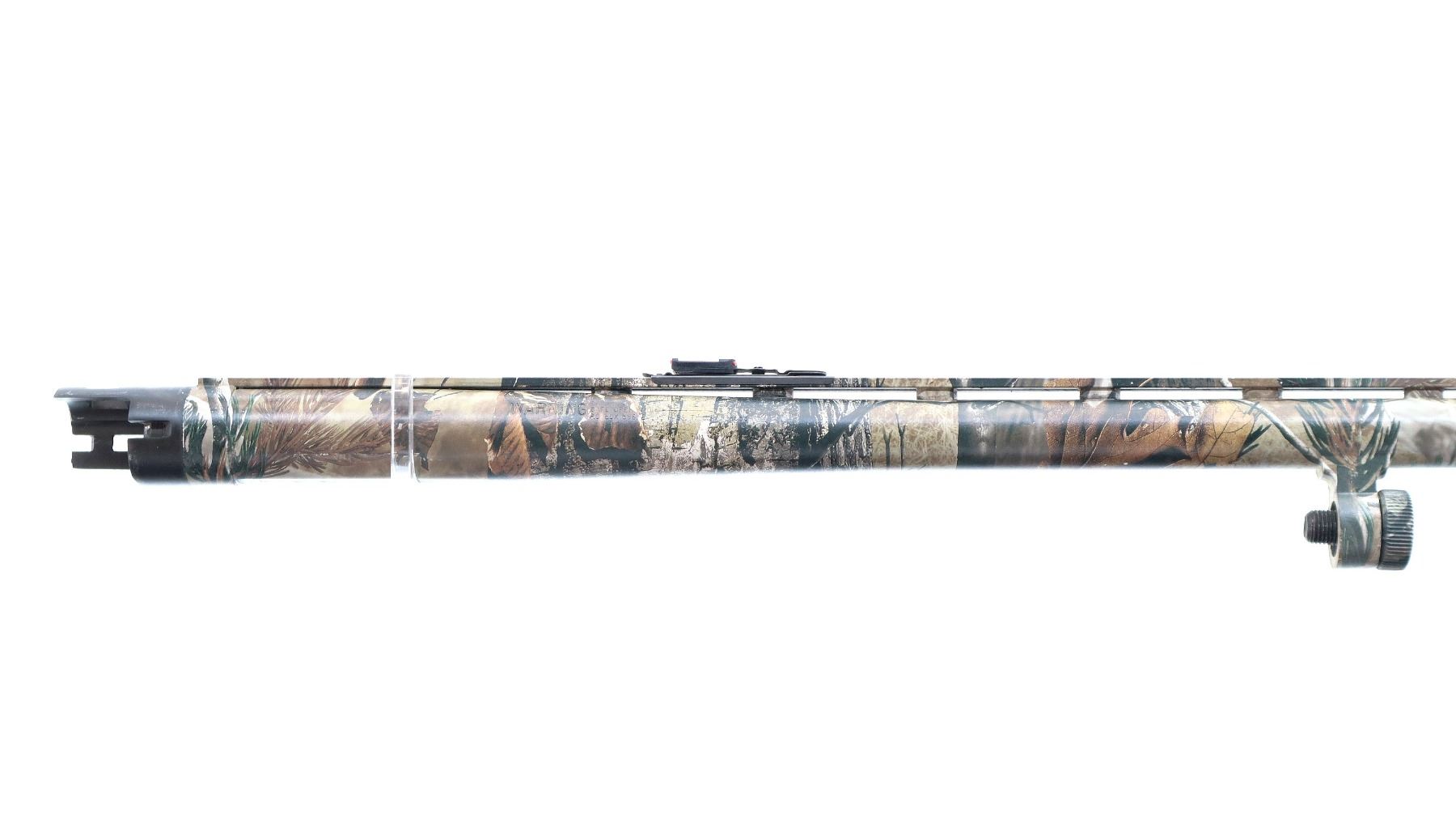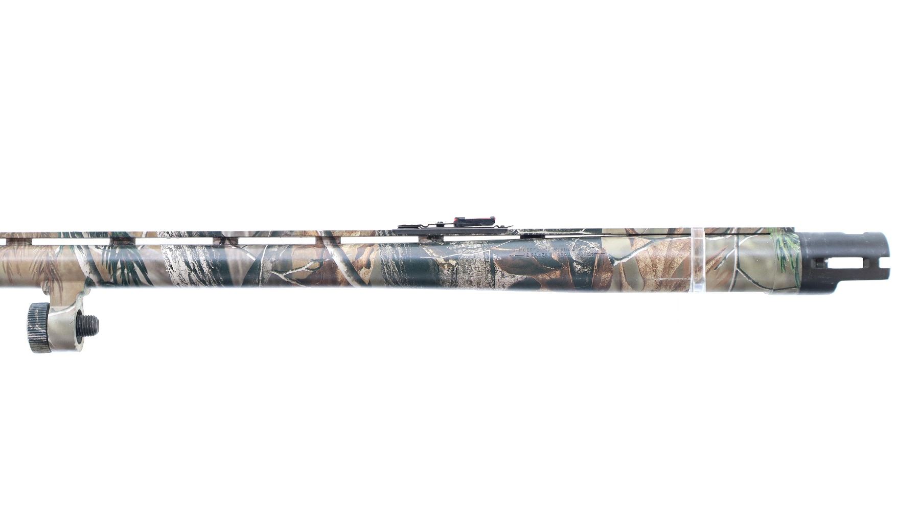 Main Description: No sights, AP HD Camo overall, round cantilever ported barrel with Tasco World Class True Mil Dot 3-9x40 scope installed, clear optics with Mil Dot reticle. Alloy receiver, tang safety, checkered forearm and pistol grip, black vented rubber recoil pad, grip cap, rear swivel stud. 2nd Barrel: 12 G X 3". 28", Very Good, Smooth, Removable Mod Choke Installed, white front and brass mid rib beads, ported vent rib. 3rd Barrel: 12 GX 3", 24", Excellent, smooth, Removable Full Choke Installed, green fiber optic front sight, adjustable u notched red fiber optic rear sight and ported vent rib.
