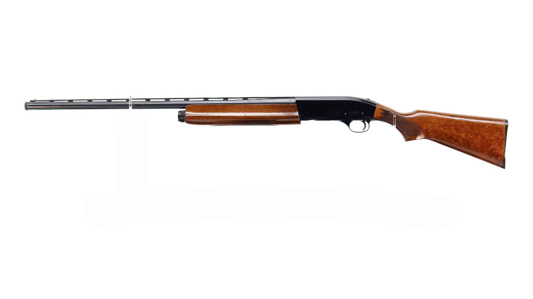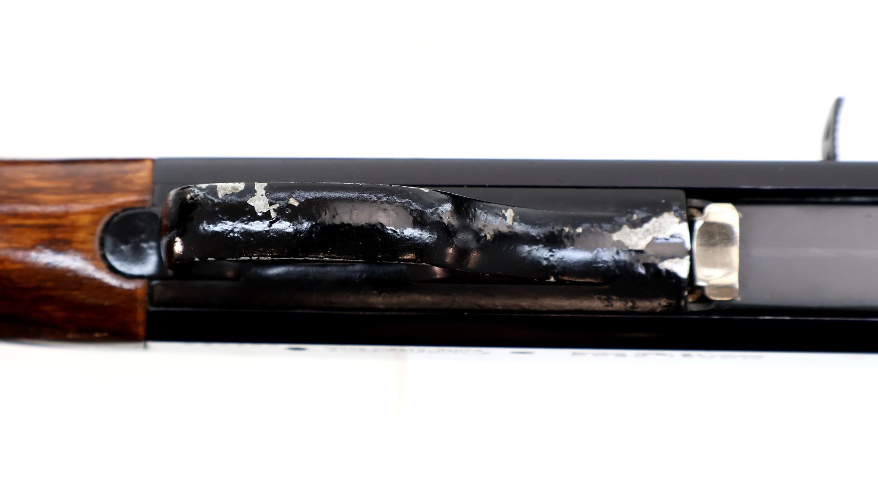 Main Description: Brass bead, blued vent rib barrel, black alloy receiver, note action does not function gas piston is broken, requires parts and repair. Two piece wood stocks, checkered forearm and pistol grip, grooved black polymer butt plate.