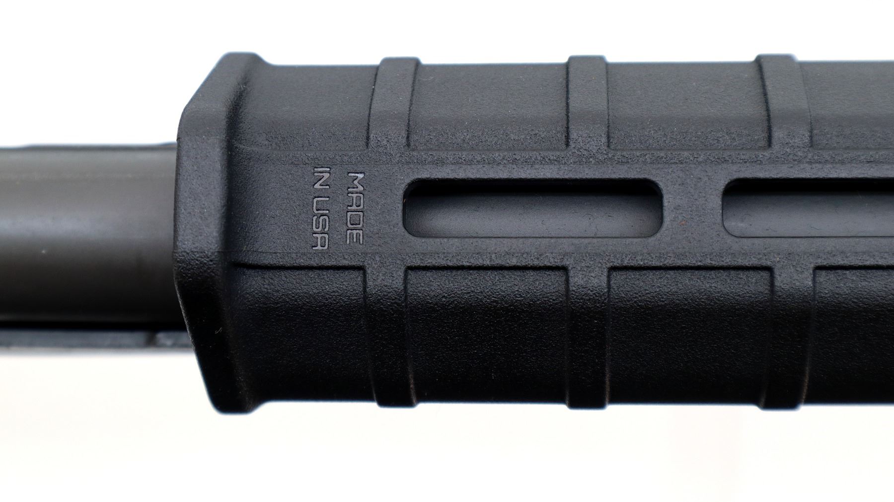 Main Description: Red fiber optic front bead with ears and ramp, adjustable rear peep sight with ears, Parkerized round barrel and full length magtube, black alloy receiver drilled and tapped with one piece rail, tang safety and four round side saddle. Two piece black synthetic stocks, ventilated MagPul forearm, textured pistol grip, black rubber recoil pad, bayonet lug, swivel studs. Accessories include: Original forearm with parts, Lock, Ontario Knife Co M9 bayonet with grooved black polymer grips, scabbard and belt loop.