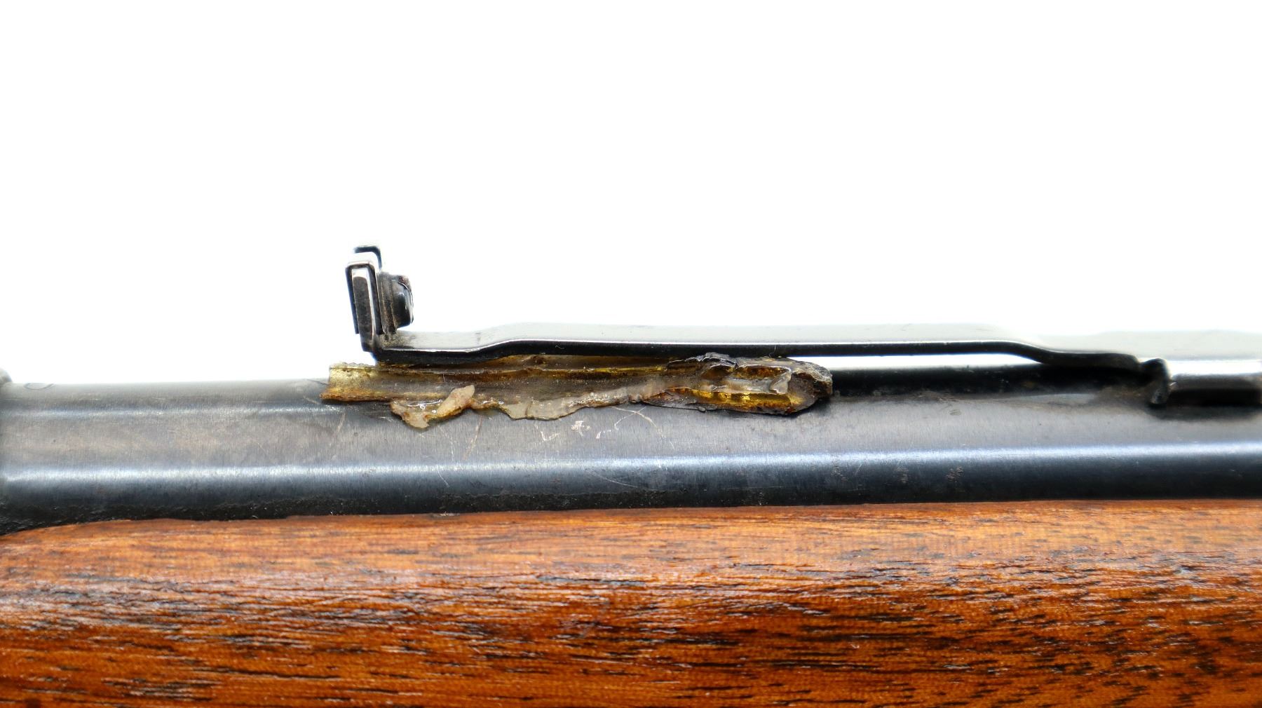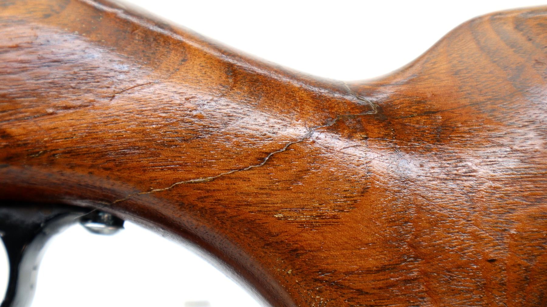Wear: Metal finish shows some light rust speckles, scratches, handling marks and wear. Stock shows some marks, scratches and wear.