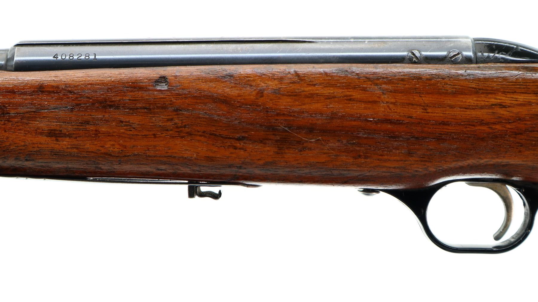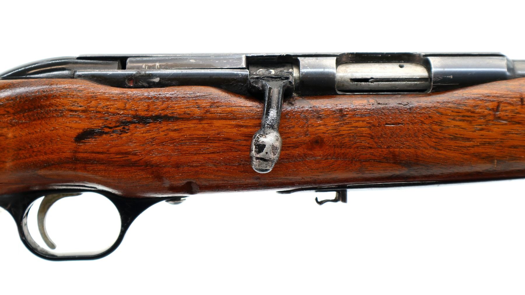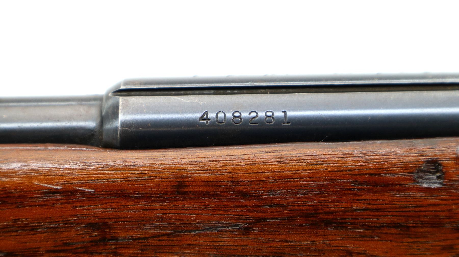 Main Description: Blade front sight, u notched rear sight missing elevator, blued/black painted metal finish with pitting underneath, grooved receiver, welded/replaced bolt handle. One piece wood stock, forend tip cracked and repaired, pistol grip cracked and repaired through wrist, cheek rest, checkered black polymer butt plate, grip cap and trigger guard have replaced screws, sling swivels.