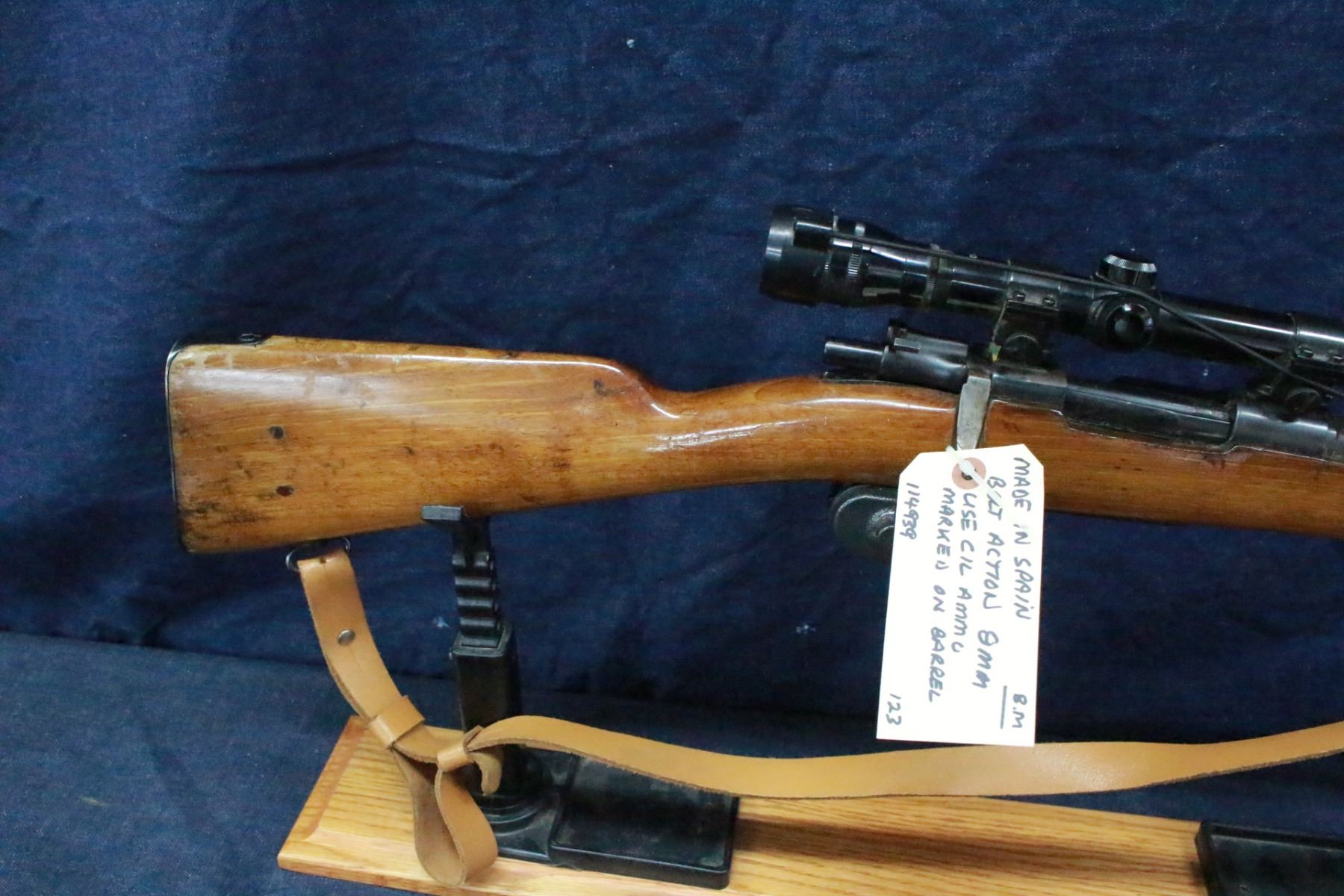 8mm; Bolt Action; Use CIL Ammo Only Marked on the Barrel; with Scope & Sling; No Key for the Lock; S/N 114939