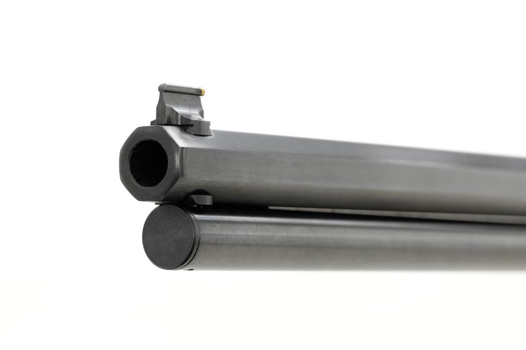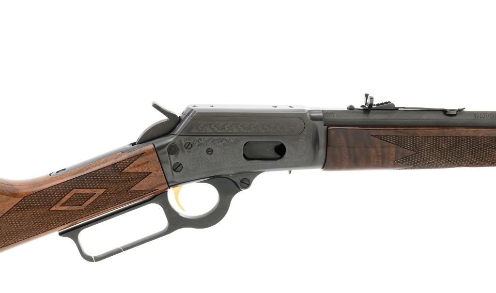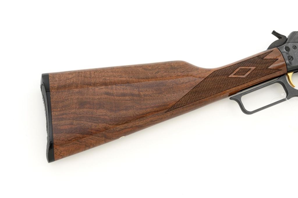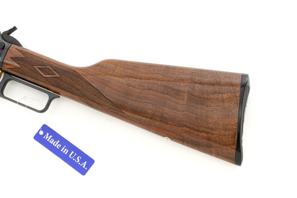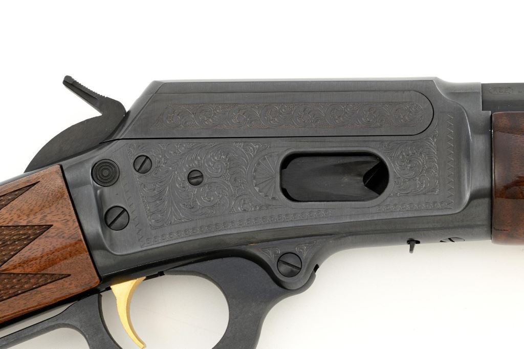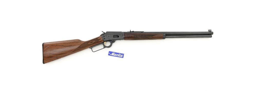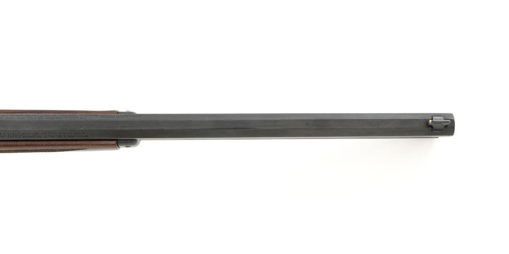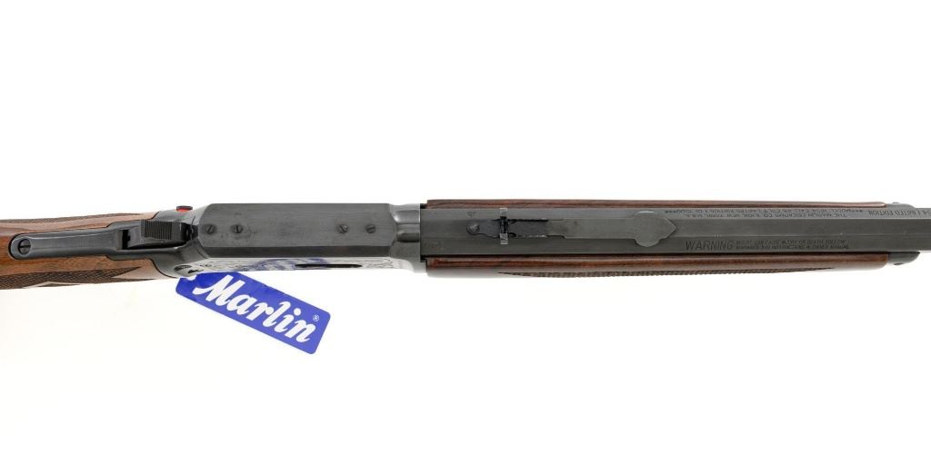 Marlin M1894 Cowboy Limited Lever Action Rifle, #MR40364G, .45 Colt cal., 20" octagon barrel, blue finish with intricately engraved receiver and gold inlaid "Cowboy". Gloss finished finely checkered deluxe walnut forend and straight grip buttstock, ending with a checkered plastic Marlin buttplate, providing a 13.5" LOP. Receiver is factory drilled and tapped, sights include a dovetailed brass tipped blade front and semi-buckhorn rear. Includes factory cardboard box with matching end label, instruction manual, safety lock, and associated packaging materials. Rifle is in excellent overall condition, appearing as new with the factory box and original hang tag. Stock has only a few light storage marks, displaying attractive figure in the buttstock. Action is crisp. Bore is mirror bright with excellent rifling. One of only 1,500 produced. Est.: $1,000-$1,500. (Modern)