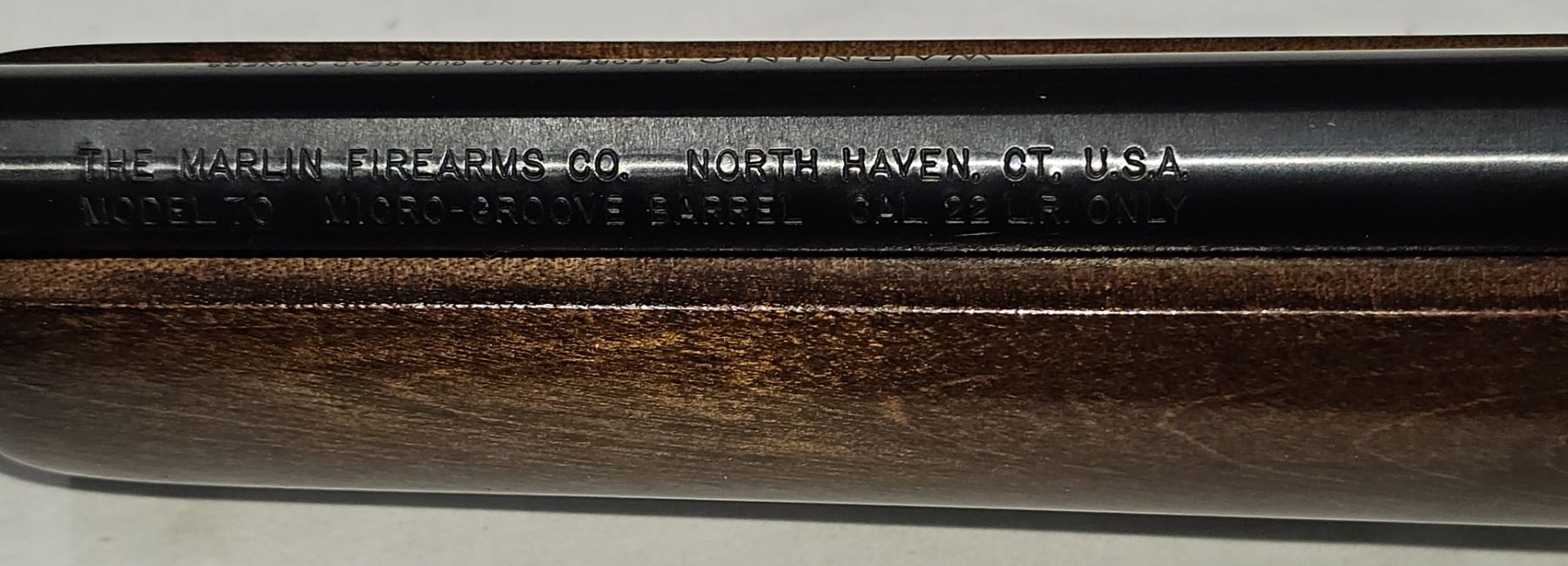This is a MINT condition Marlin Model 70 shooting 22 Cal Long Rifle .