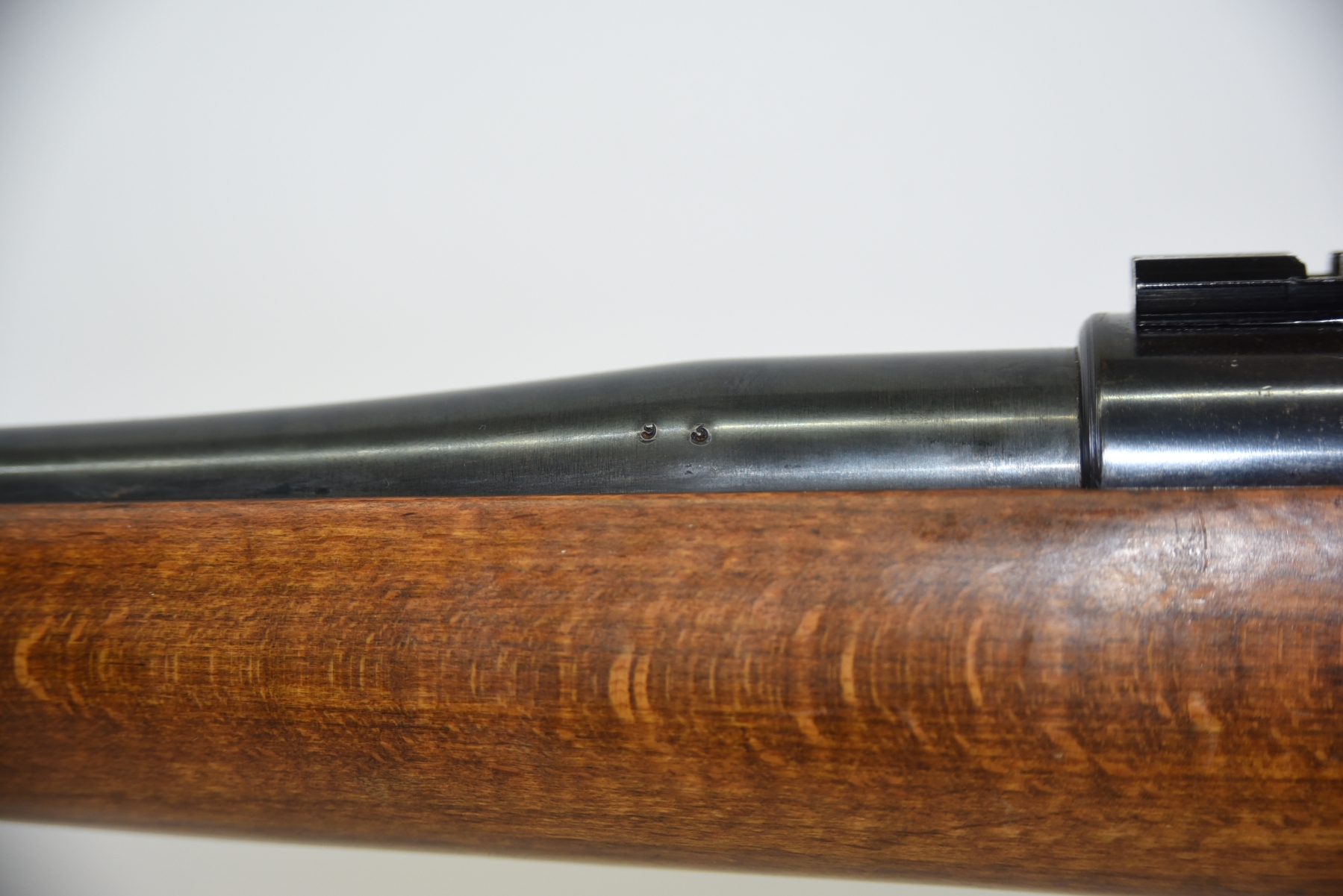 Wood stock shows notches in the grip section, light scratches, scuffs, light dents; condition is very good.