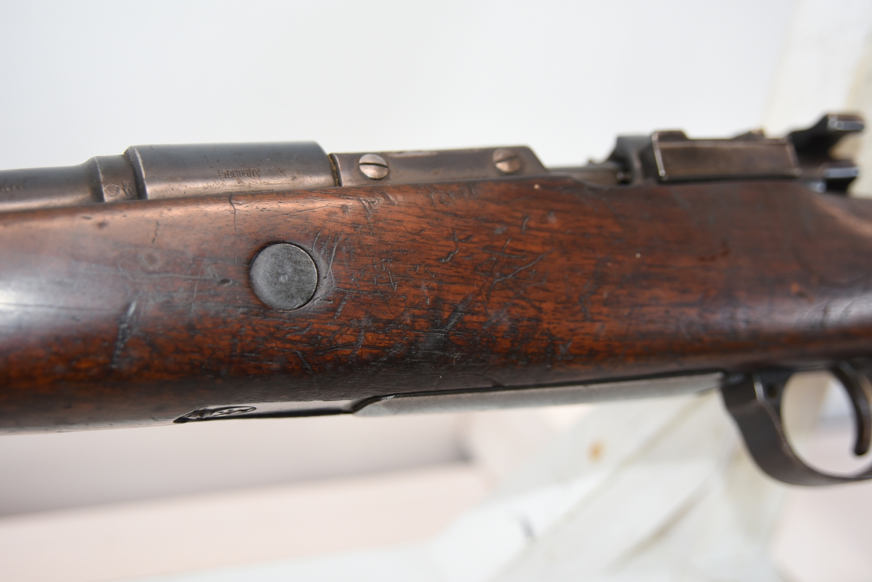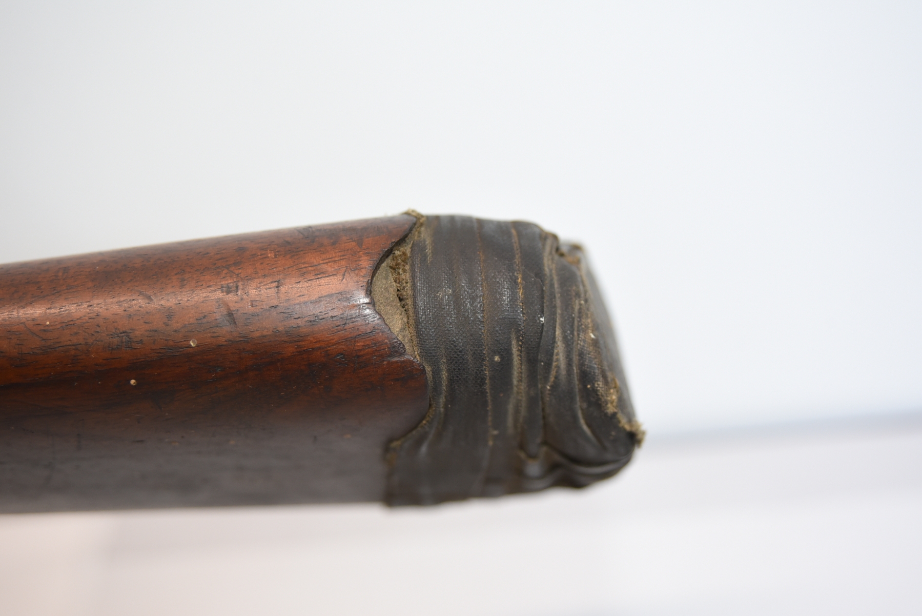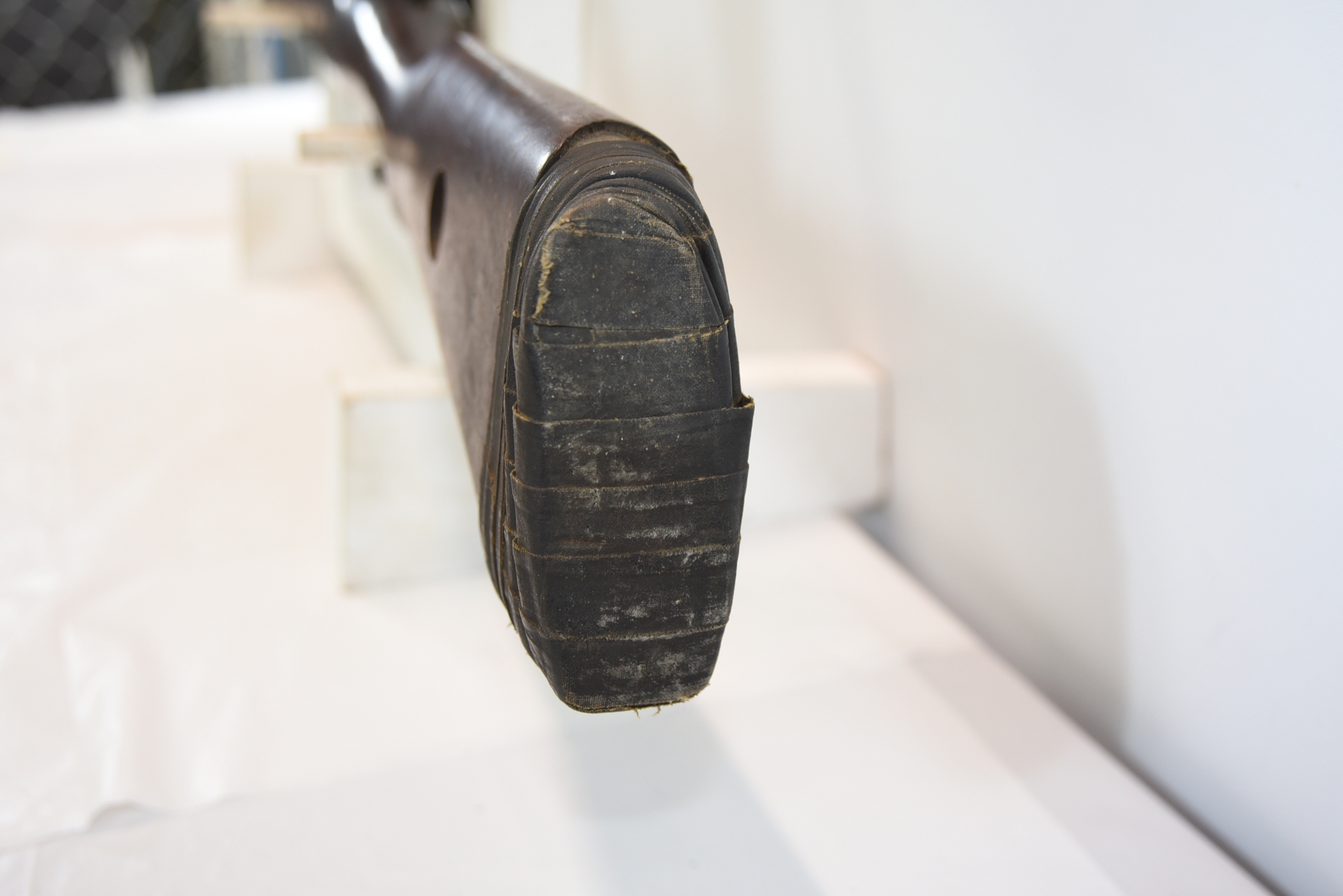 Wood stock shows scratches, scuffs, light dents, chipping by upper tang, no butt plate and its all taped up.