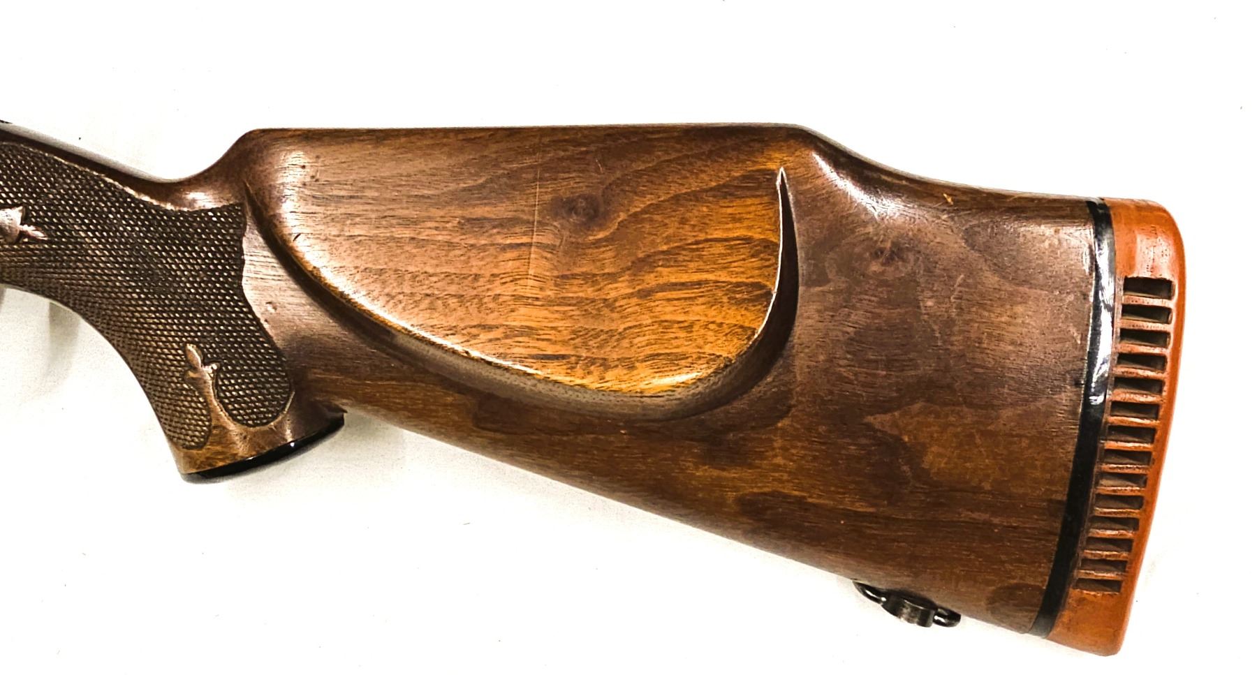 Wood stock is high gloss finish with checkering and cheek weld. Nice cheel weld and