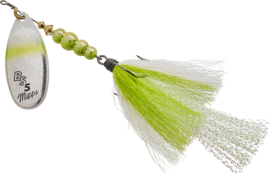 Mepps Bronze Slammer In-Line Spinner #5, 1/2oz Silver Chartreuse