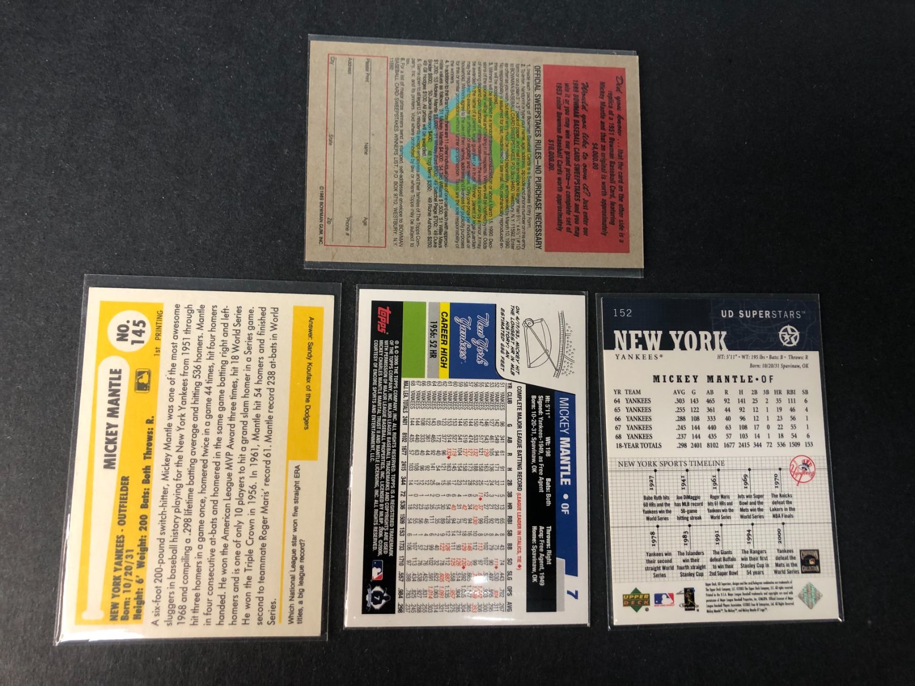 Lot of 4 different Mickey Mantle cards