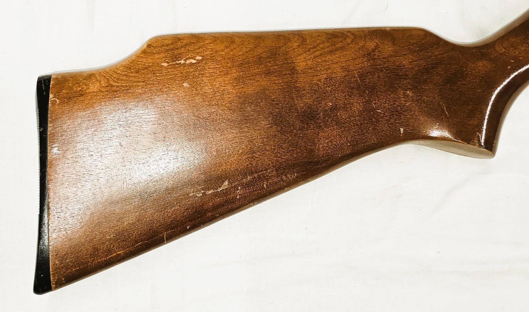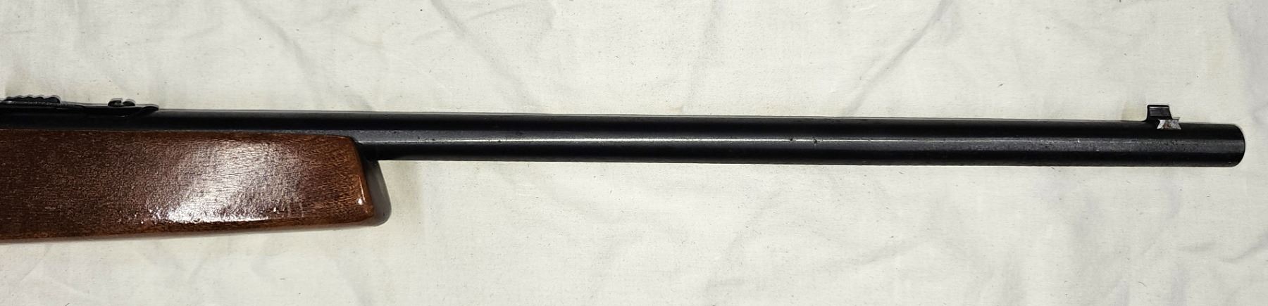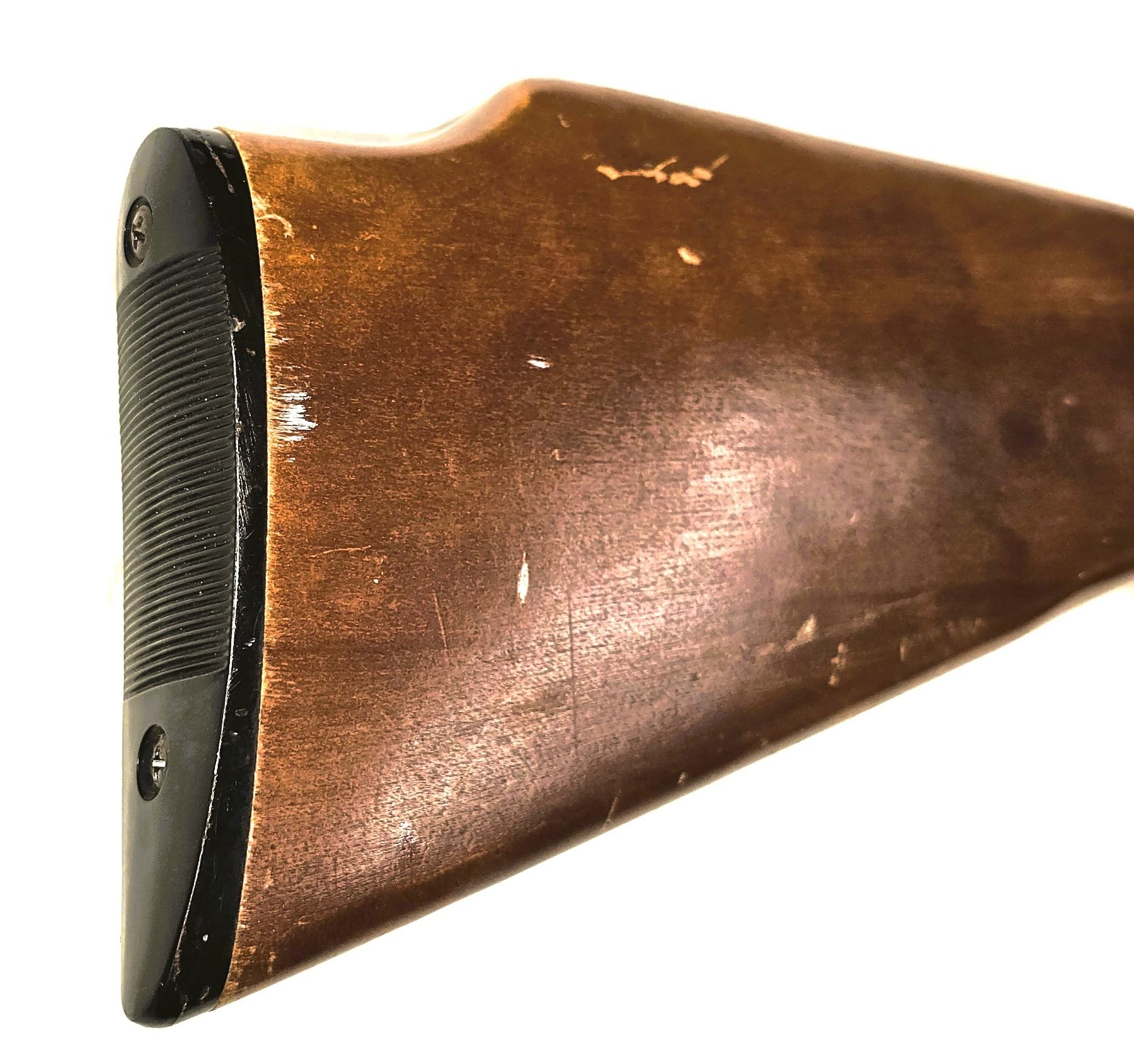 Metals have a 75% bluing and scuffs, rear iron sight with elevator tree anf front blade sight are standard.