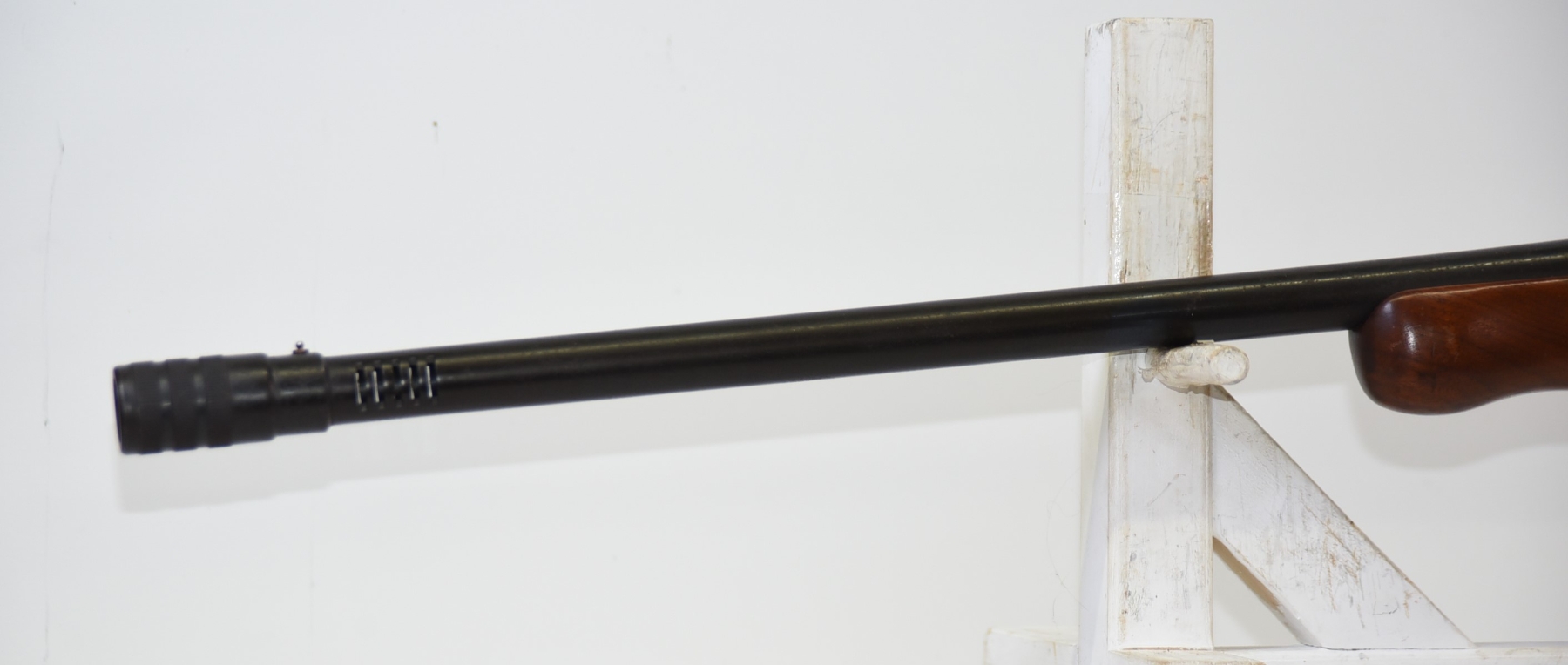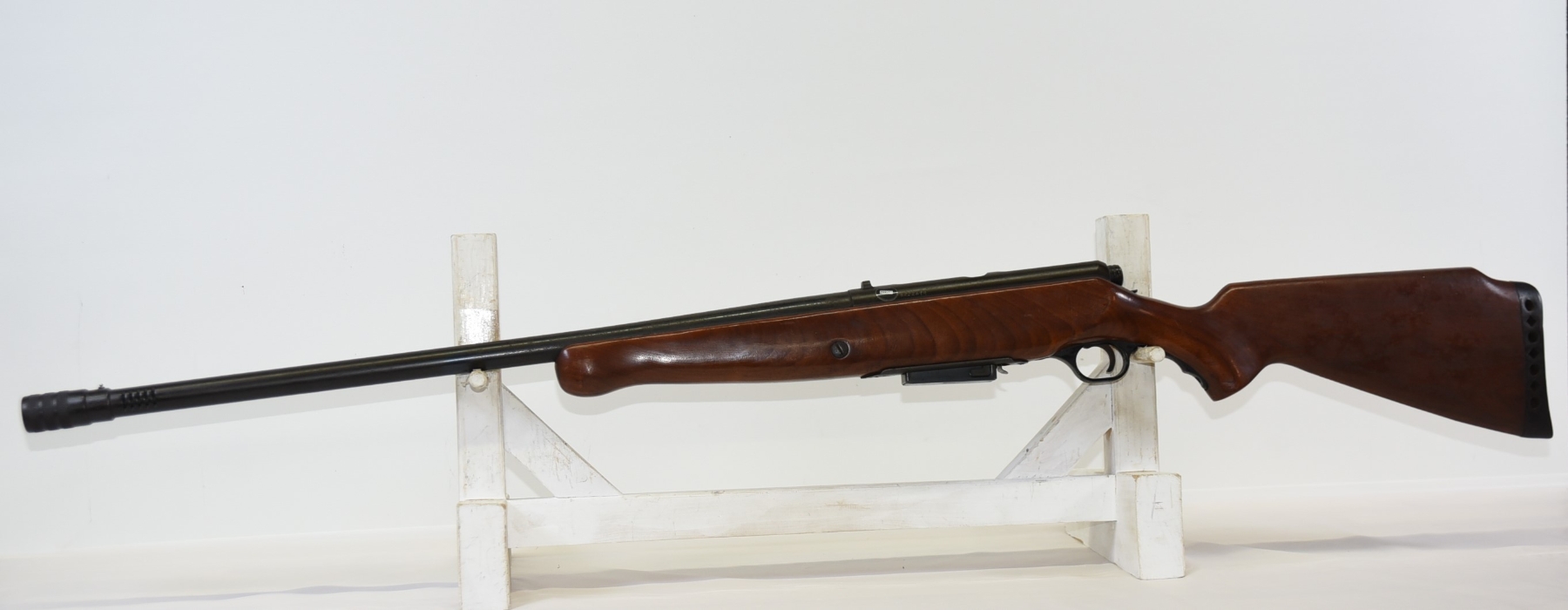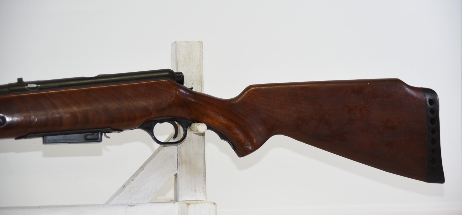 Wood stock shows scratches & scuffs, there are some light dents, rear recoil pad has hardened; condition is good.