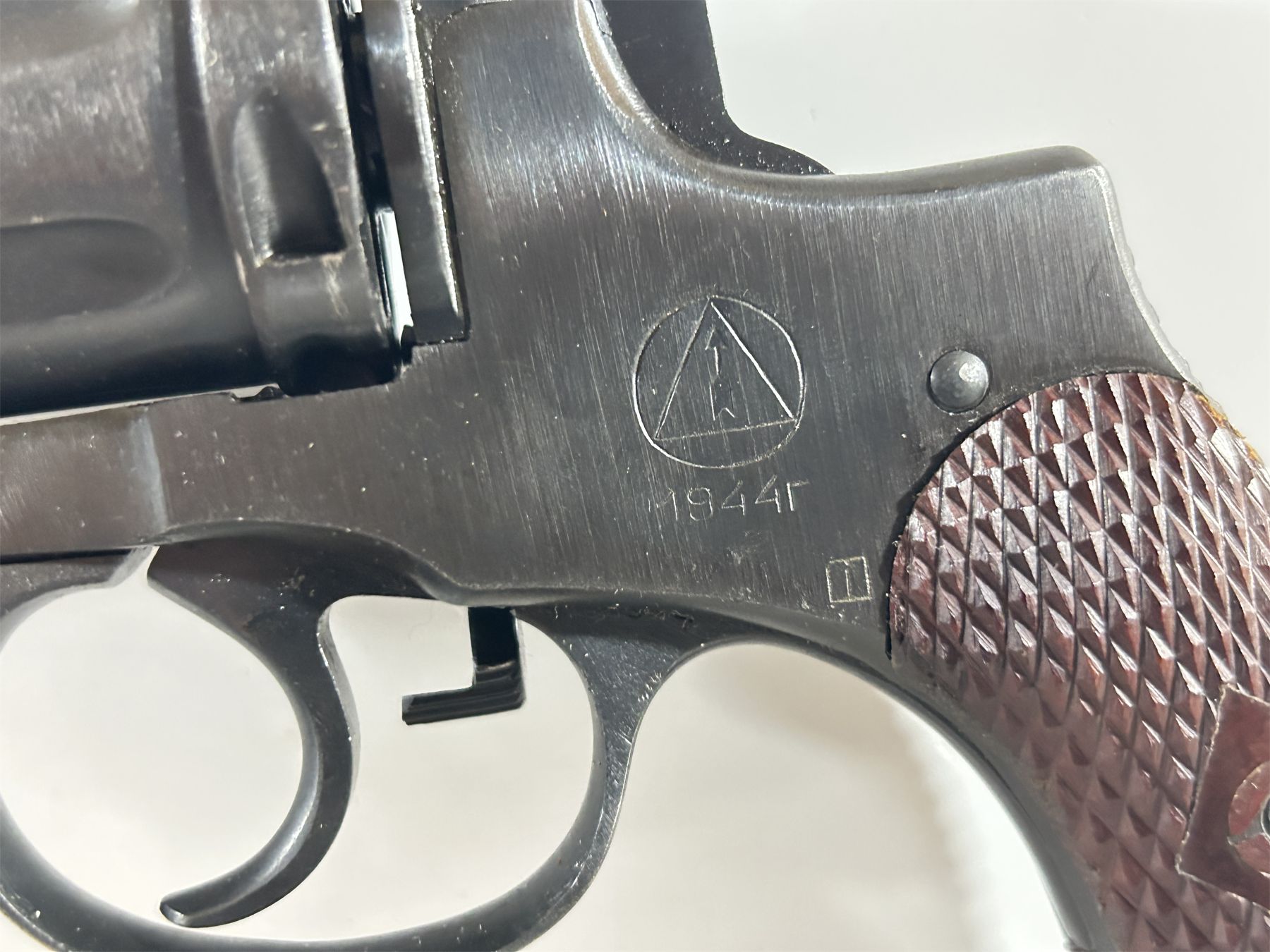 CONDITION: G-VG OVERALL INCL BORE. SPECS: 114 MM BARREL. MFG 1944 IN IZHEVSK, 7 SHOT REVOLVER. EXTRAS: NONE. S/N: P504