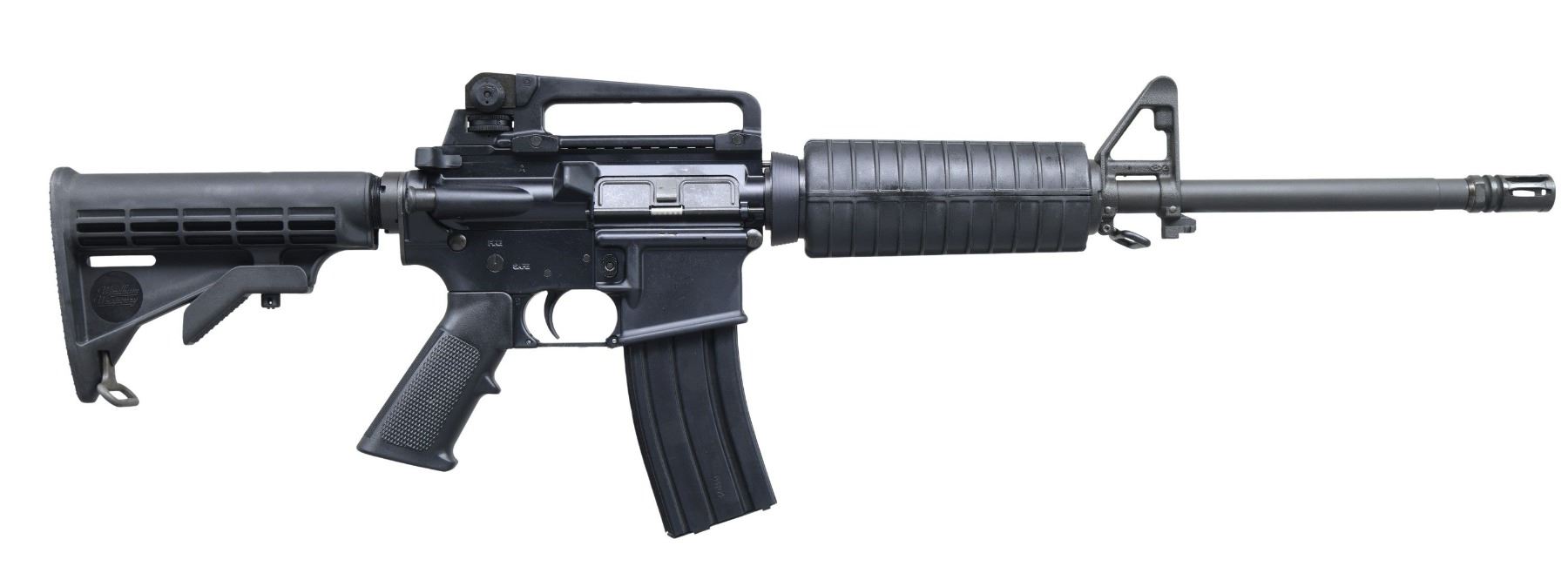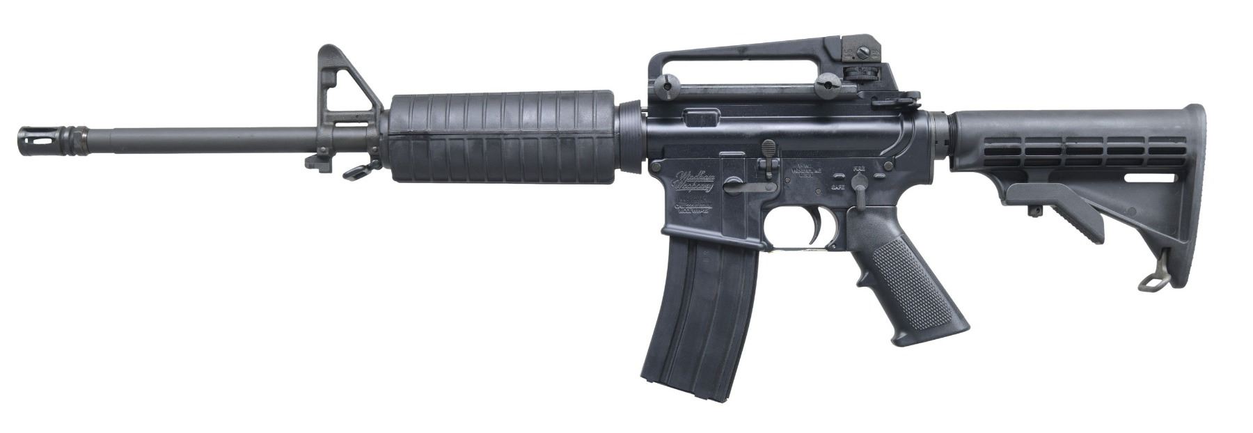 RIFLE WITH CASE. Cal. .223 Rem/ 5.56 NATO. S# WW083414. M4 Profile AR-15 configuration w/ 16.5" bbl. MAGS: 1 WW 30 rd. UNATTACHED ACCESSORIES: black plastic hardcase contain WW paperwork. CONDITION: all aspects near excellent showing minimal use. Shiny bore. (25-3200/MD). MODERN. $400-600.