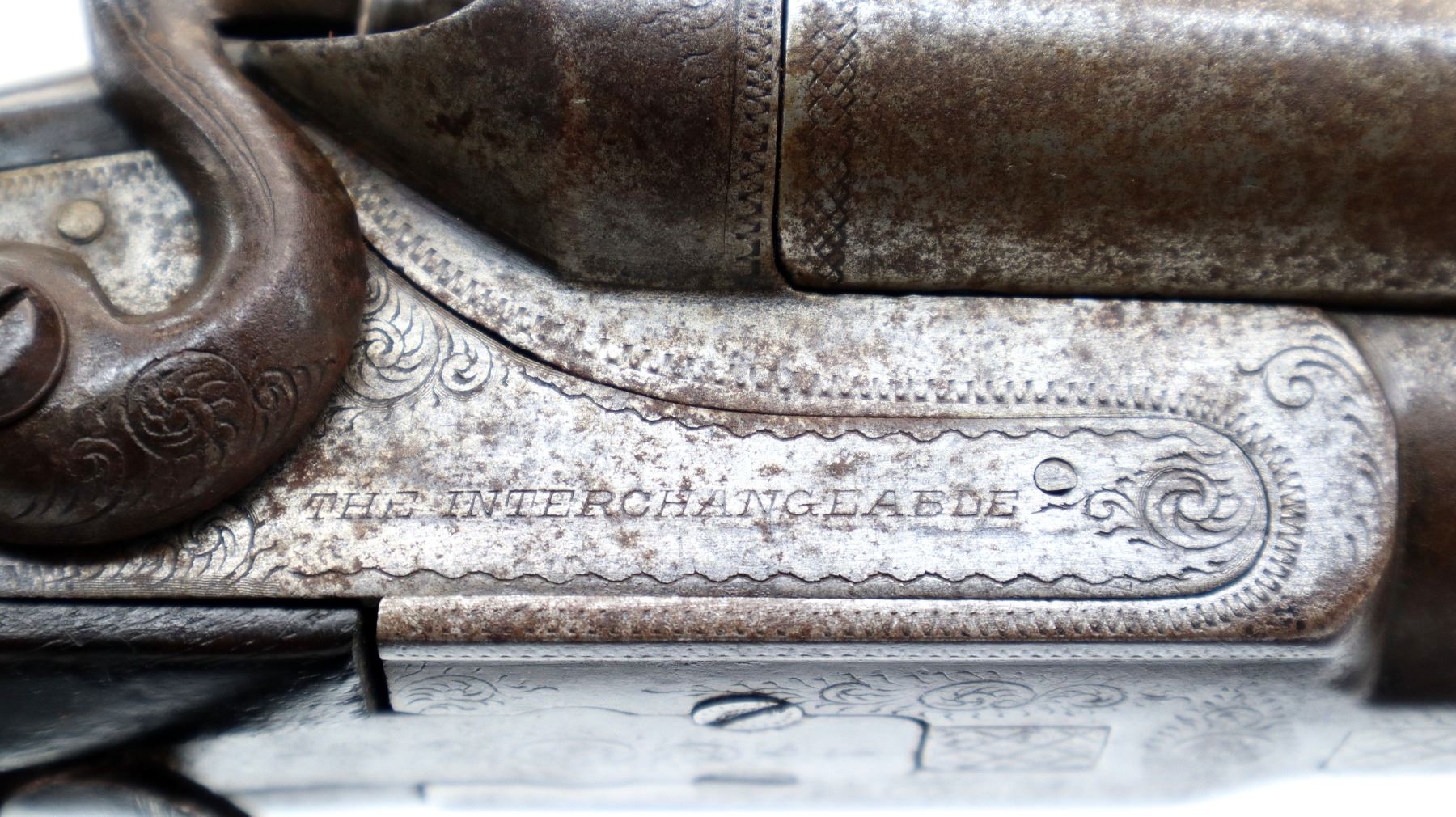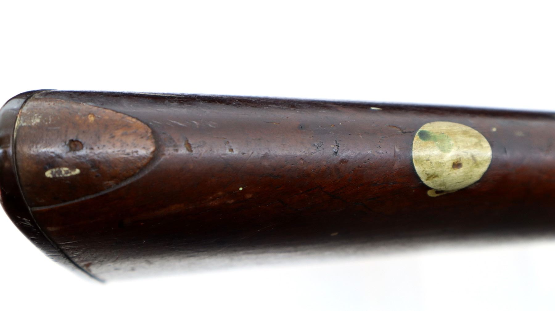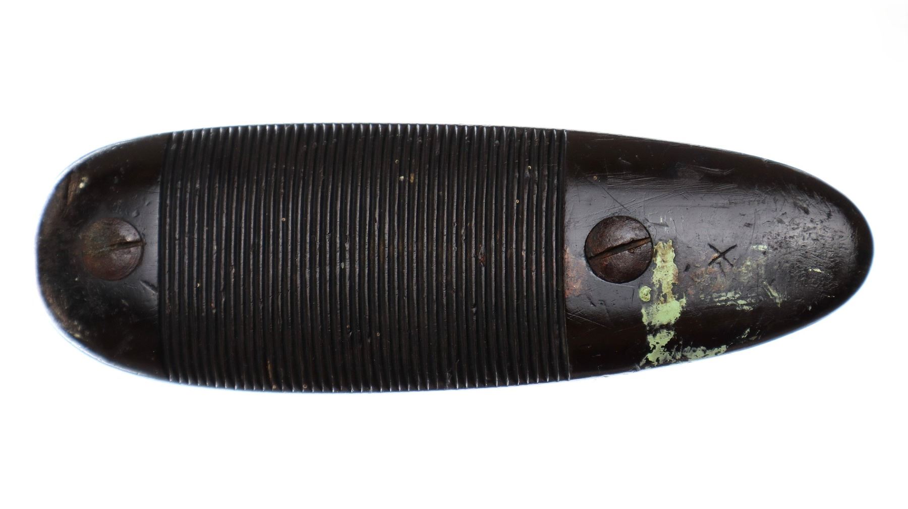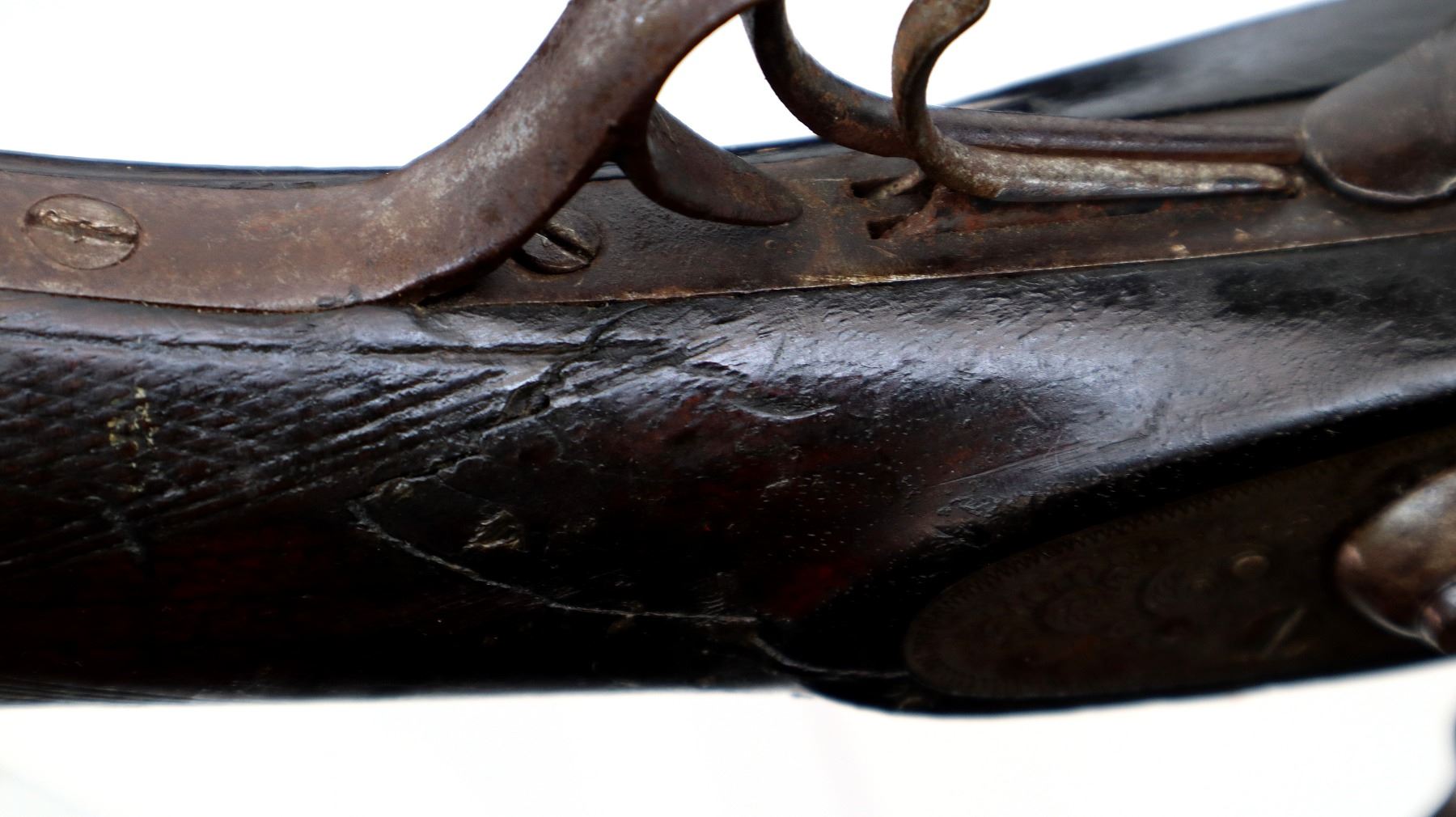 Wear: Metal finish turning brown with pitting, rust, scratches, handling marks and wear. Stocks show marks, scratches and wear.