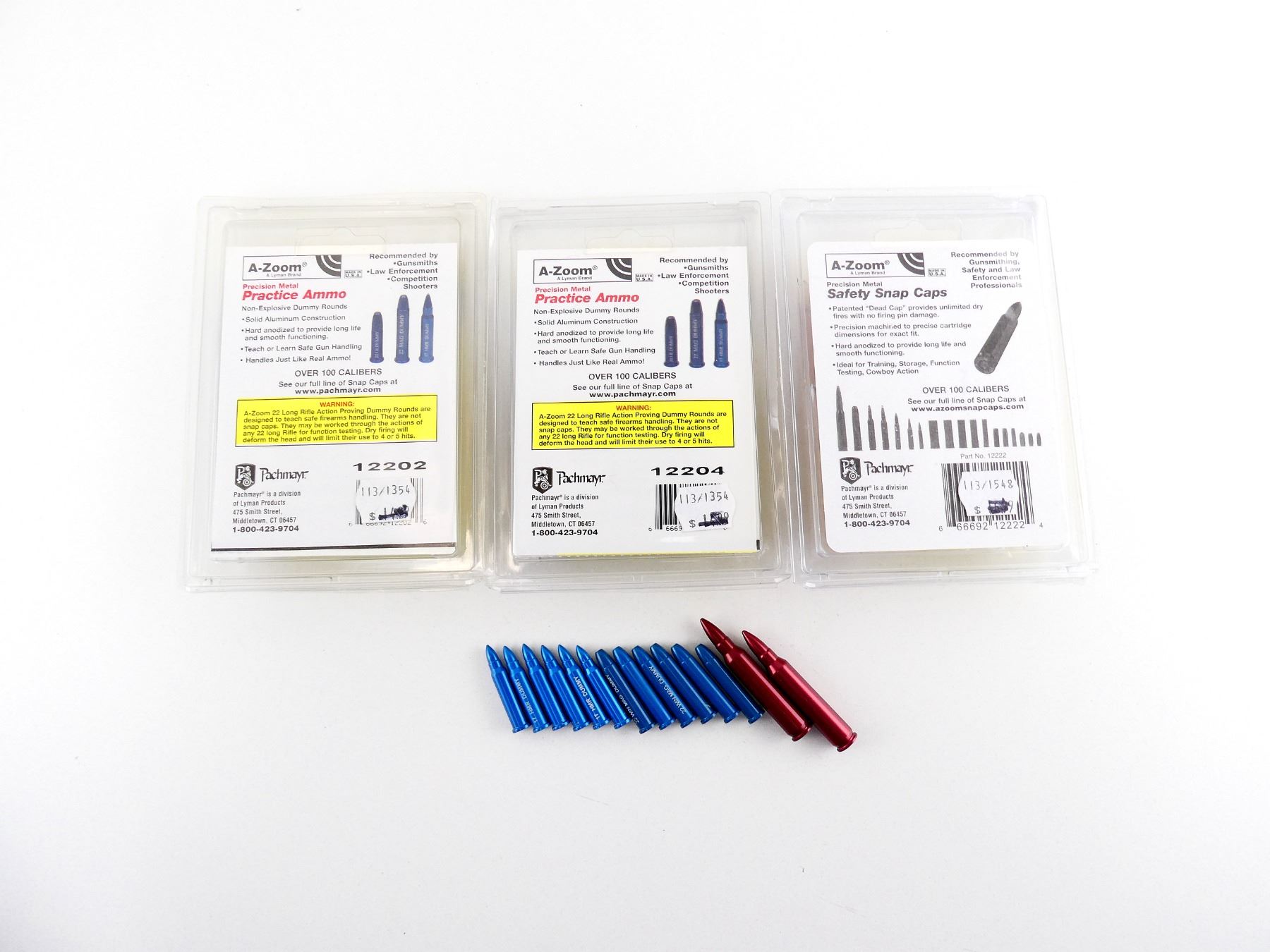 LOT INCLUDES; APPROX. (12) SNAP CAPS, VARIOUS CALIBERS INCLUDING; .17 HMR, .22 WIN MAG, .223 REM.