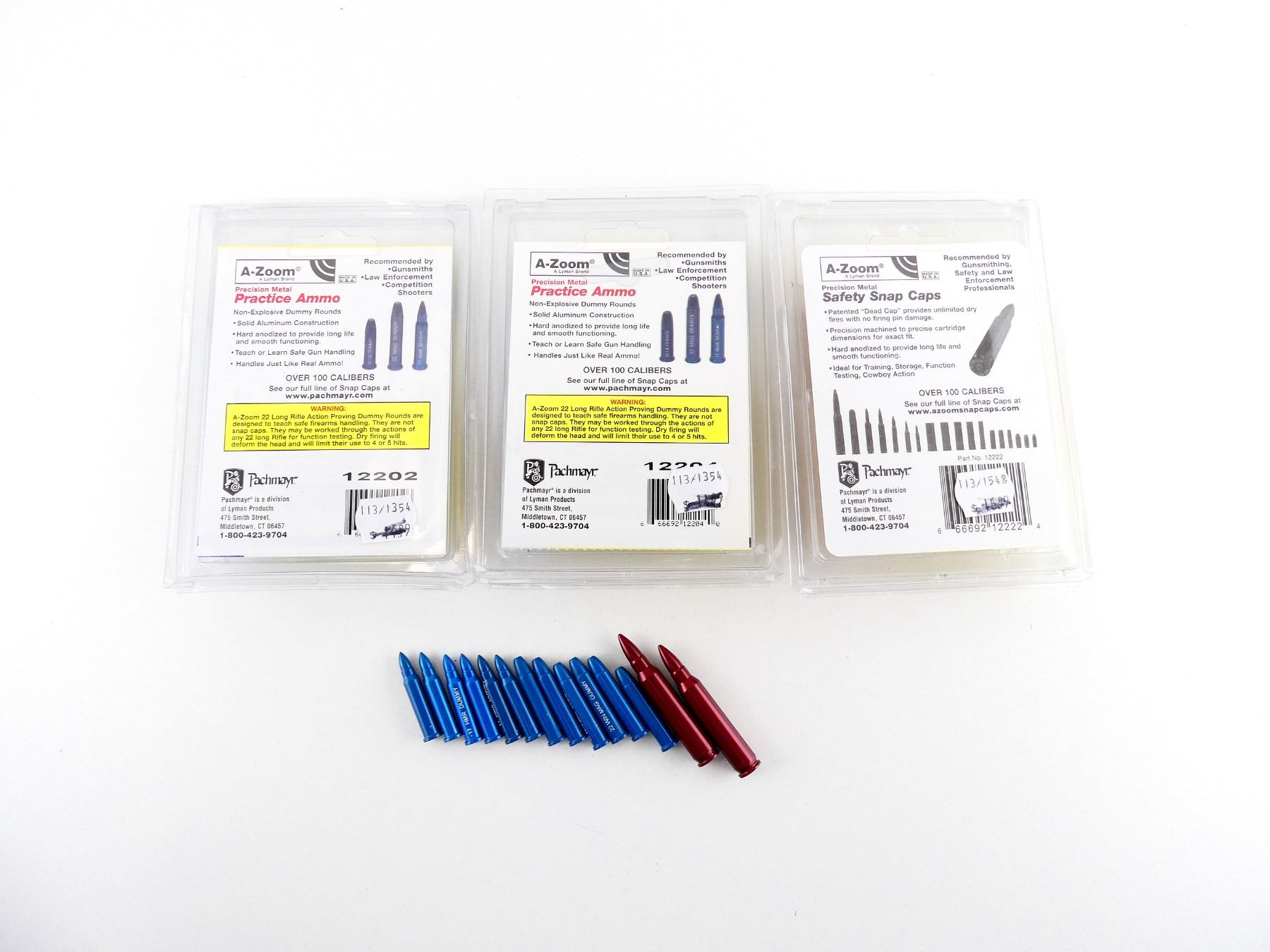 LOT INCLUDES; APPROX. (12) SNAP CAPS, VARIOUS CALIBERS INCLUDING; .17 HMR, .22 WIN MAG, .223 REM.