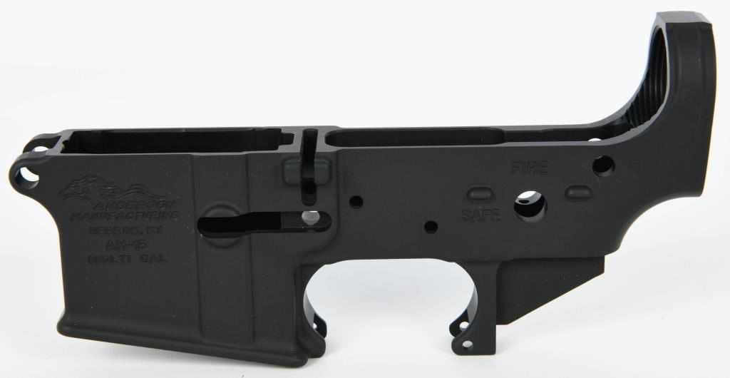 Up Next We Have a Brand New Anderson AM-15 Stripped Lower Receiver, Marked Multi Caliber, forged lower Receivers are CNC machined from a high-strength, 7075 T6 aluminum forging for reliable performance and outstanding durability. Machined to Military Specifications standards and marked "MULTI-CAL" to be used with multiple calibers on the AR-15 platform. This Lower Receiver comes in type III black hard anodizing with an open trigger.