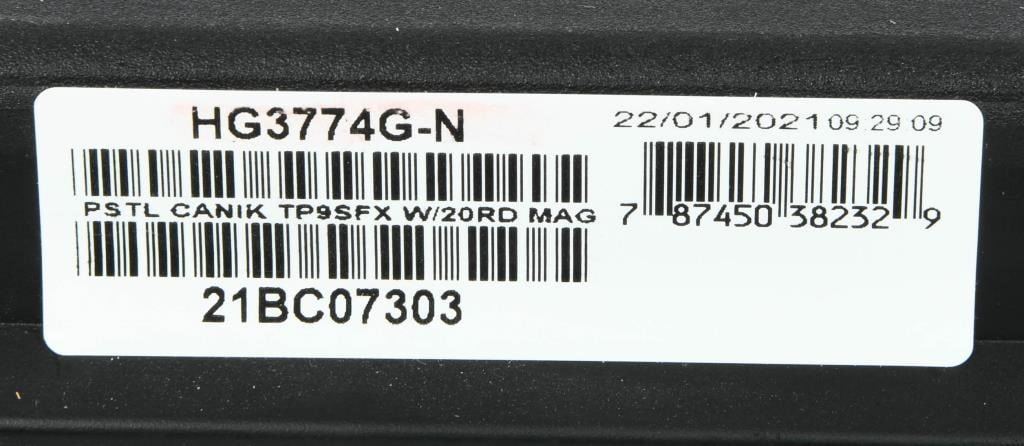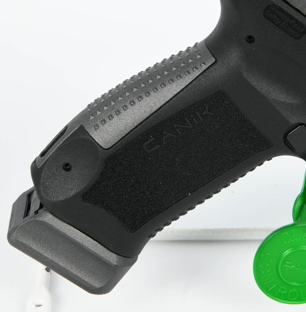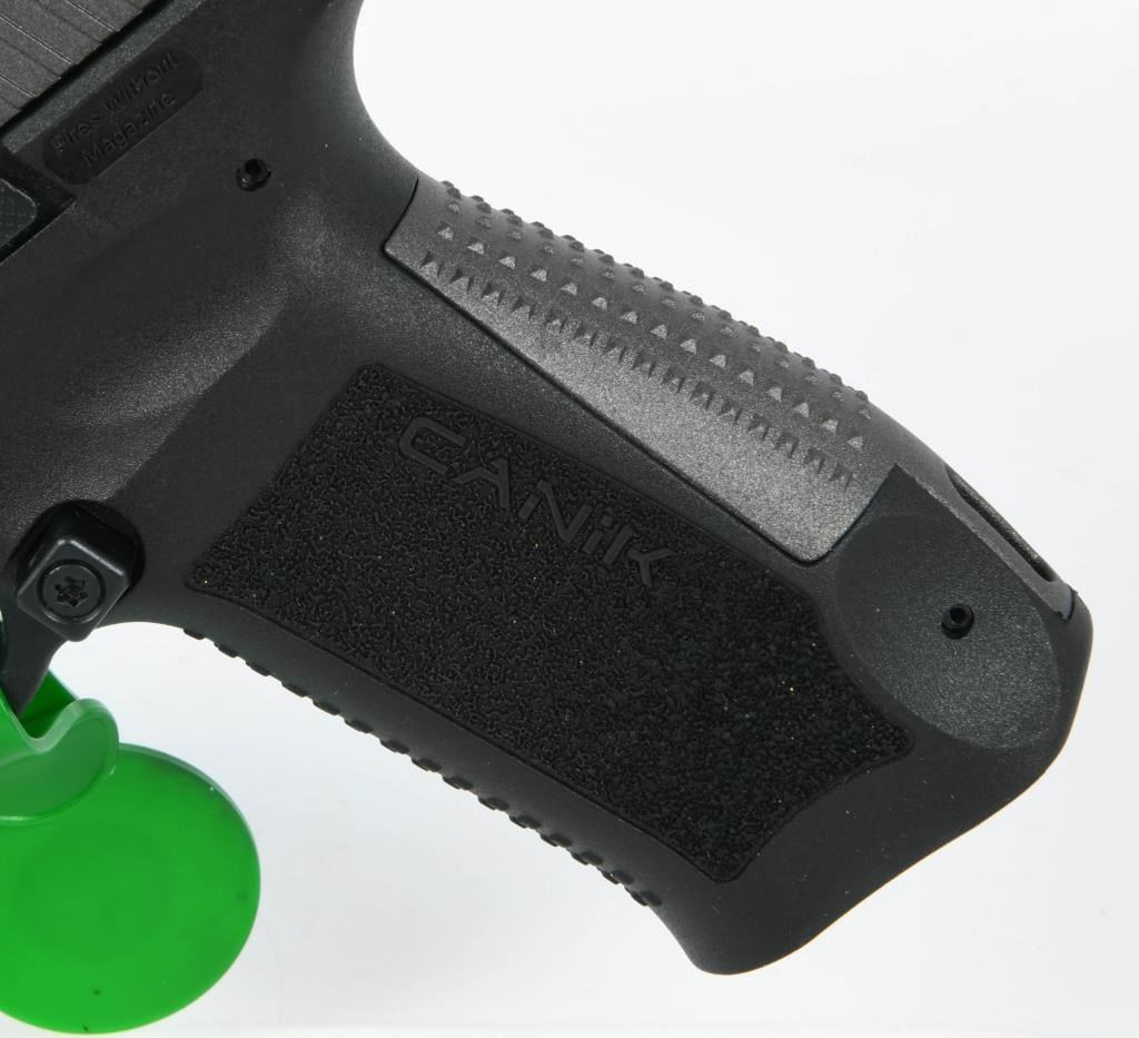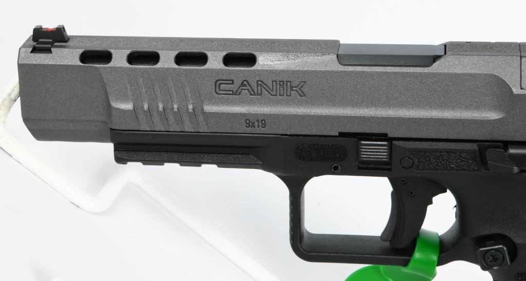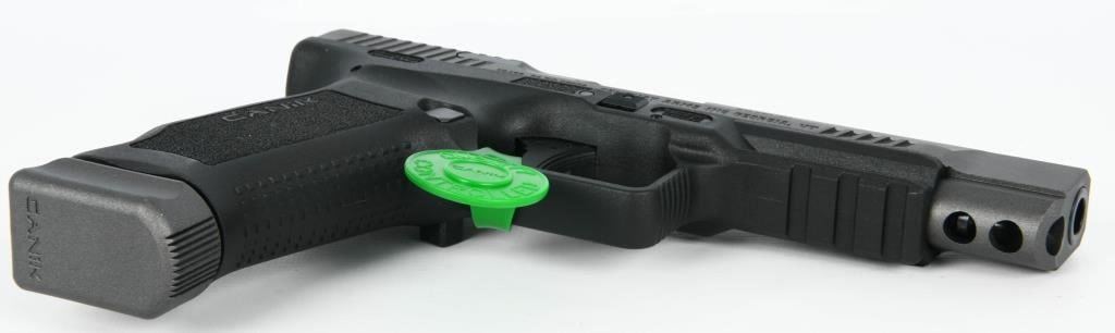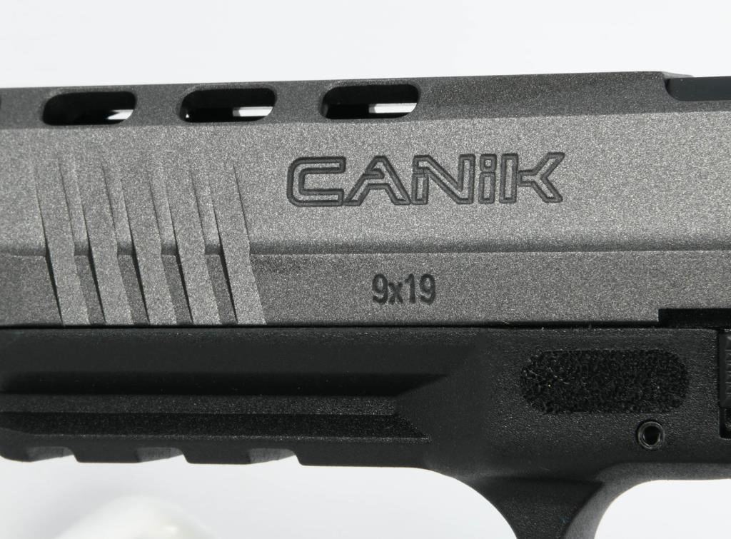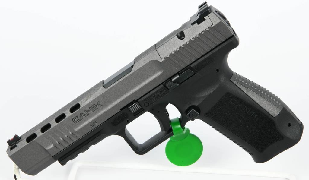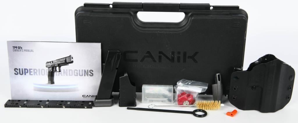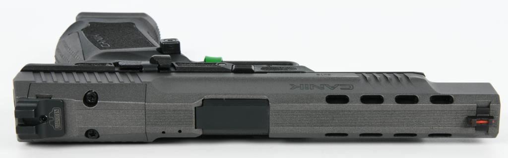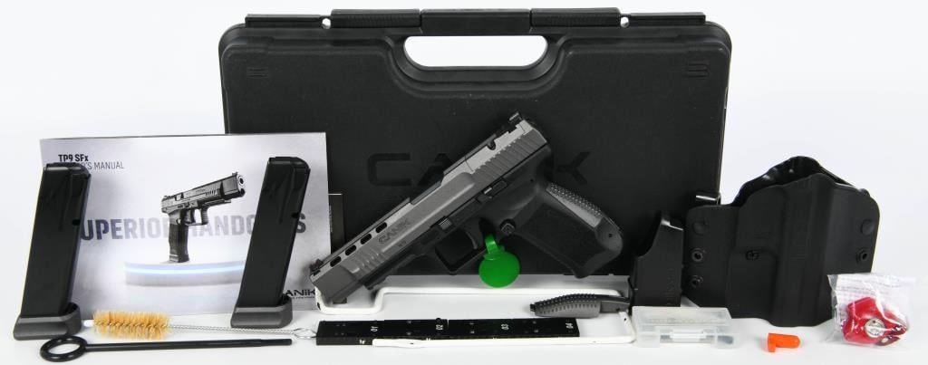 The Canik TP9SFx is a brand new semi-automatic pistol chambered in 9mm Luger, offering a range of features that make it a compelling choice for shooters. With a 5.2" match-grade barrel, this full-sized polymer pistol is designed to deliver exceptional accuracy, making it suitable for various applications such as duty, competition, or home defense. Equipped with a striker-fired single-action-only trigger system with trigger safety, the TP9SFx ensures a consistent and reliable shooting experience. The polymer frame provides durability and a familiar feel, while features like the striker status indicator, reversible magazine catch, and interchangeable backstraps enhance user customization and comfort. The Tungsten Gray/Black finish adds a stylish touch to the pistol's appearance. One notable feature is the pre-milled section of the slide designed to accept a small reflex red dot-style sight. This allows users to easily attach a red dot sight for enhanced aiming capabilities. The TP9SFx comes in a factory hardcase, complete with all the necessary accessories, making it a comprehensive package for enthusiasts looking for a reliable, accurate, and feature-rich pistol at an affordable price. Whether you're a competitive shooter or someone in need of a dependable firearm for personal defense, the Canik TP9SFx is a compelling option that delivers on performance and value.