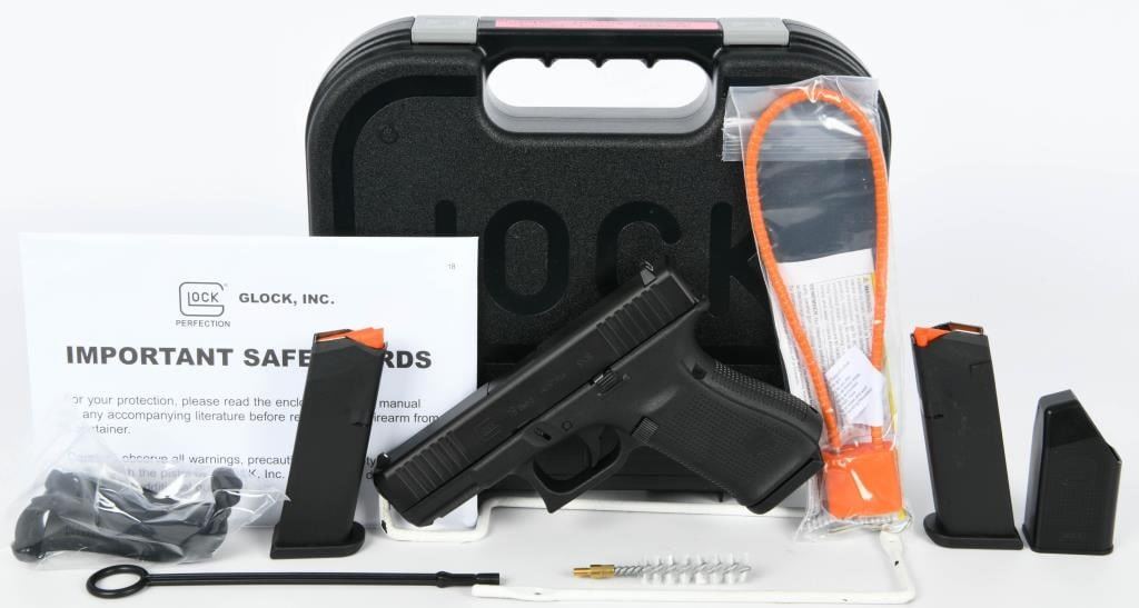 The GLOCK 19 Gen5 is a semi-auto pistol chambered in 9mm Luger, featuring a 4.02-inch barrel. Designed for a more versatile role with reduced dimensions, this firearm is suitable for various applications. The new frame design eliminates finger grooves, allowing for instant customization of the grip to accommodate any hand size by utilizing different back straps. This pistol is presented in black and comes brand new in the factory hardcase. It includes three 15-round magazines, providing a balanced combination of firepower and compactness. The reversible magazine catch and ambidextrous slide stop lever make it well-suited for both left and right-handed shooters, enhancing its overall versatility. The GLOCK 19 Gen5 incorporates modifications to the rifling and barrel crown for increased precision, further contributing to its accuracy. With a commitment to innovation and reliability, GLOCK continues to deliver handguns that meet the needs of a wide range of users, and the Gen5 series exemplifies their dedication to excellence.