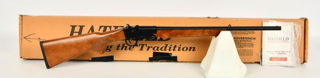 Up Next We Have a Brand New Hatfield SGL Single Shot Break-Open Shotgun Chambered For .410 Gauge, 20" Barrel, Front Bead Sight, Accepts 3" Shells, This Gun is Similar to The Beretta Design to Fold in Half For Storage. Comes in The Factory Box, More From The Internet Below: The Hatfield SGL .410 Gauge Break-Open Shotgun is a single-shot firearm It comes outfitted with a brass bead front sight and an exposed hammer. The walnut stock features a rubber recoil pad and a checkered pistol grip. Action bar and crossbolt safeties.