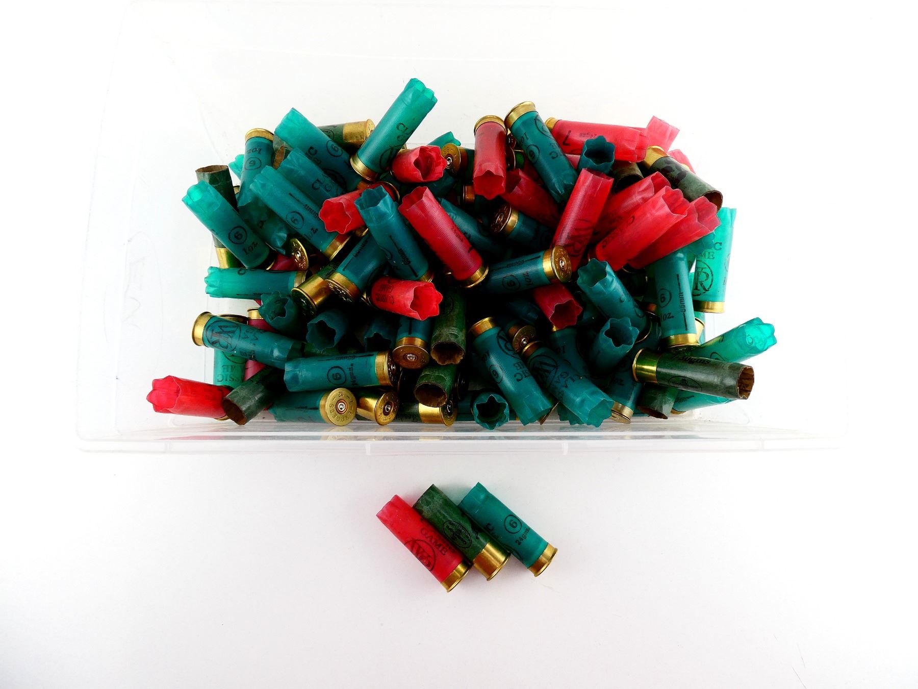 NON-PRIMED ASSORTED 12 GAUGE 2 1/2" SHOT SHELL HULLS LOT
