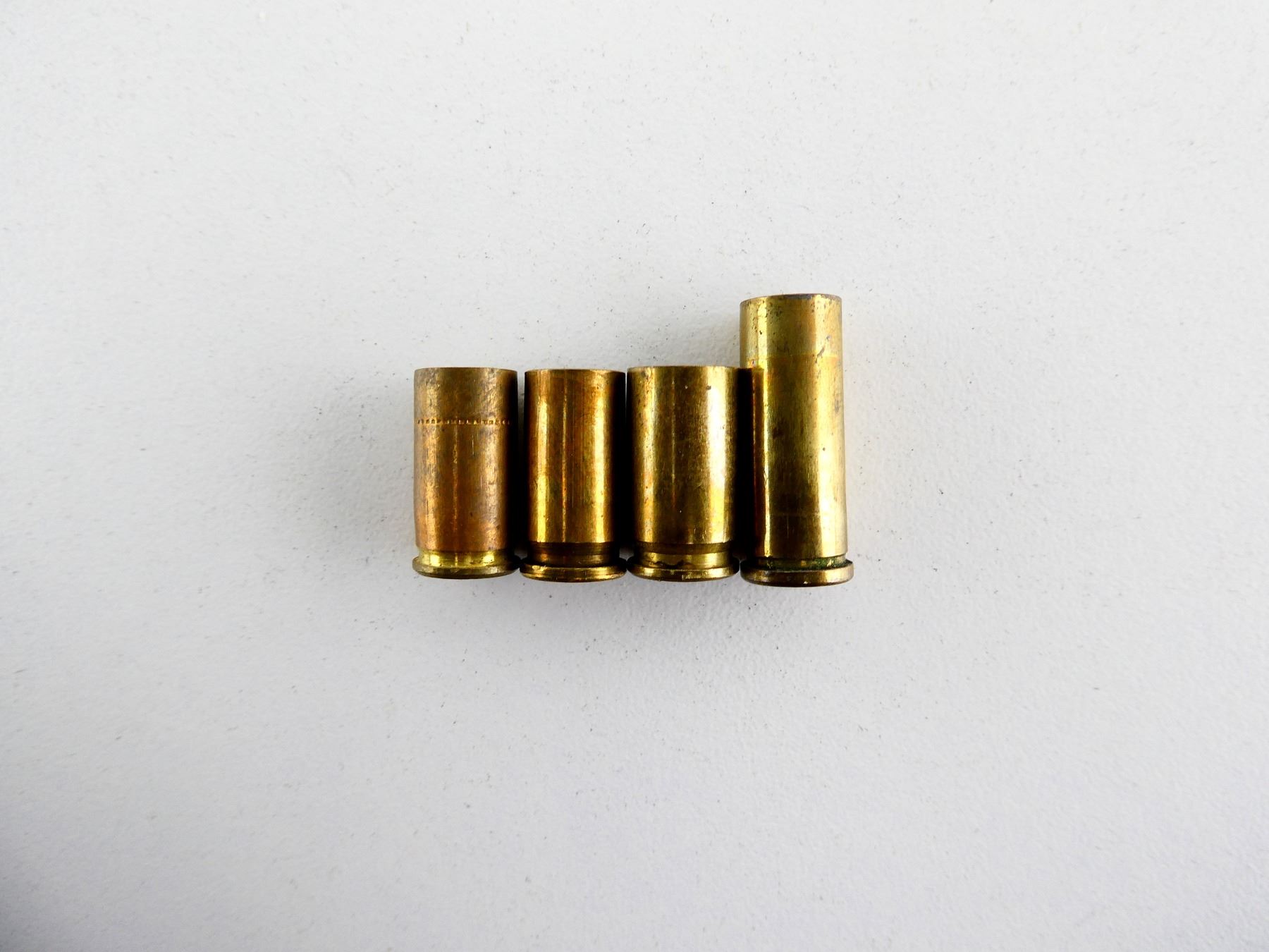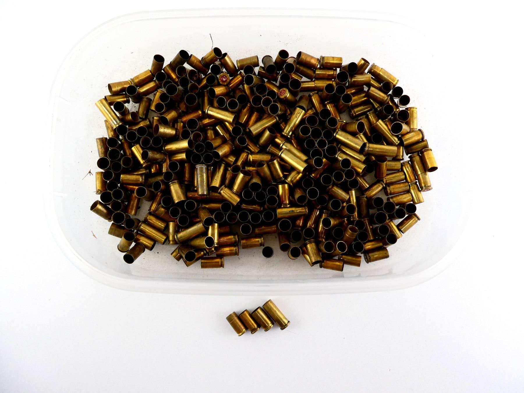 LOT INCLUDES; APPROX. 2.2 LBS NON-PRIMED BRASS CASES, VARIOUS CALIBERS INCLUDING; .32 AUTO, .32 S&W, .380 AUTO, ETC.