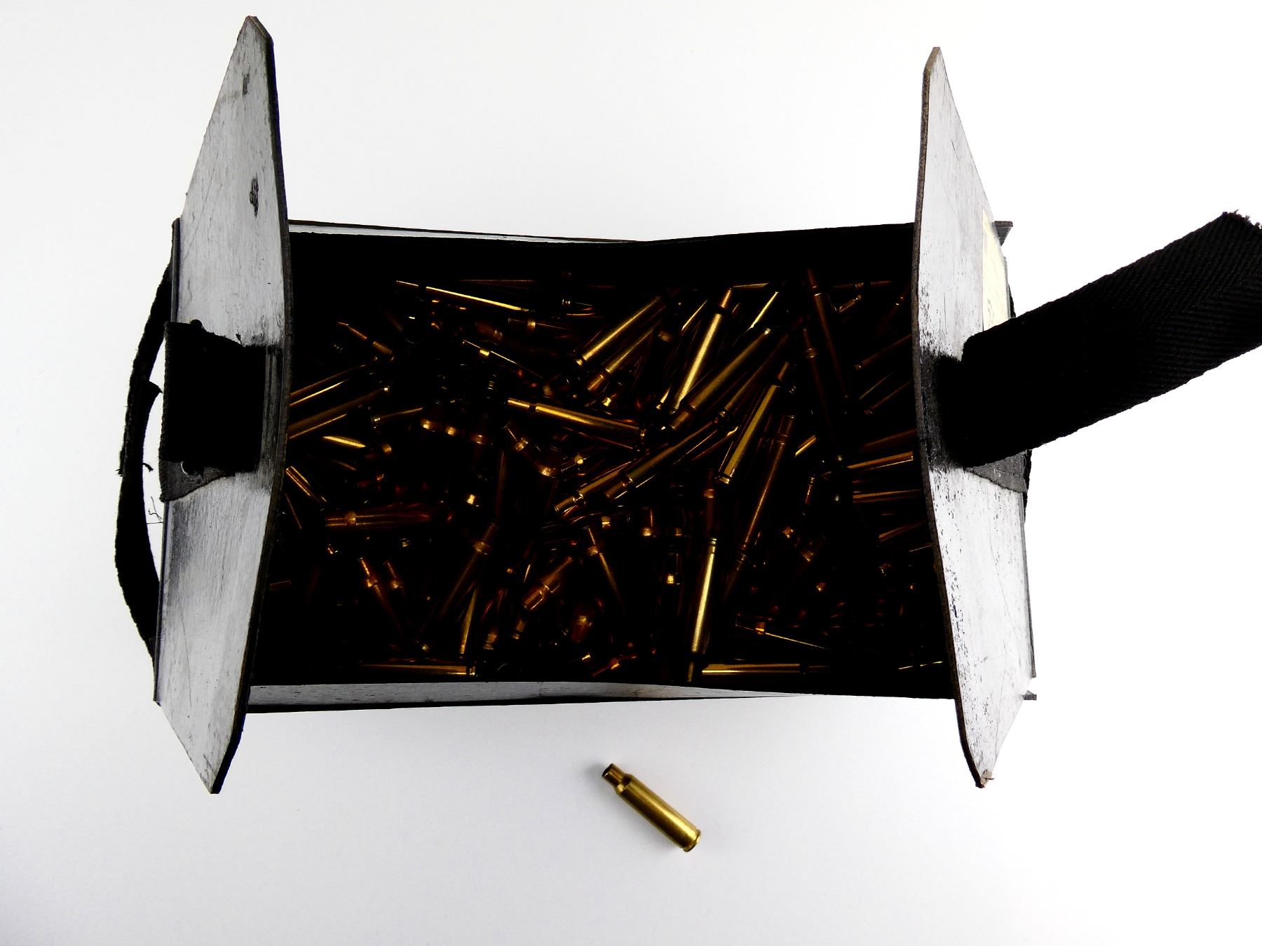 LOT INCLUDES; APPROX. 14 LBS NON-PRIMED BRASS CASES, (1) SWISS 7.5X55 SWISS MILITARY AMMO BOX.