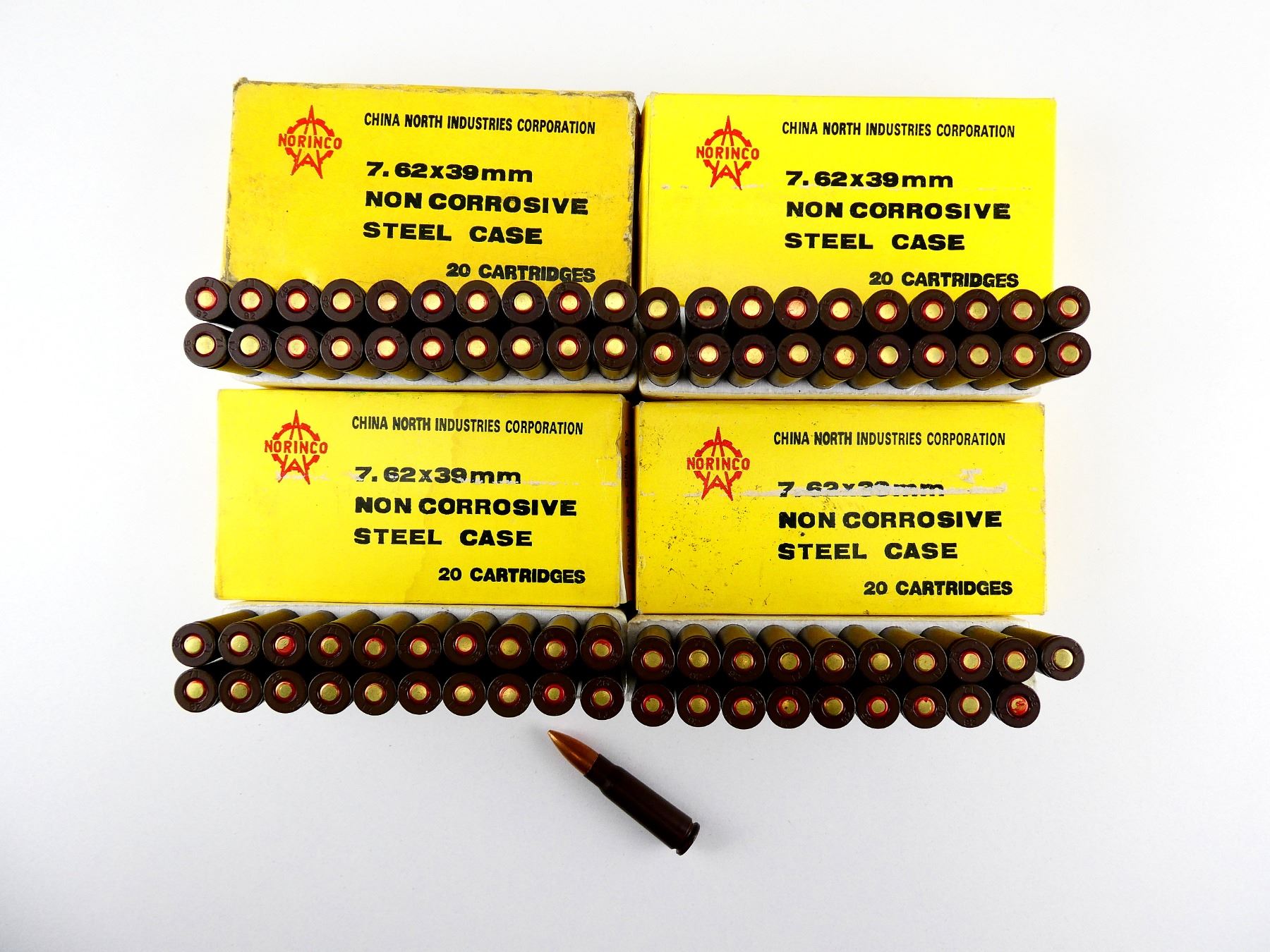 LOT INCLUDES; APPROX. (80) RNDS, FMJ, NON-CORROSIVE, STEEL CASE.
