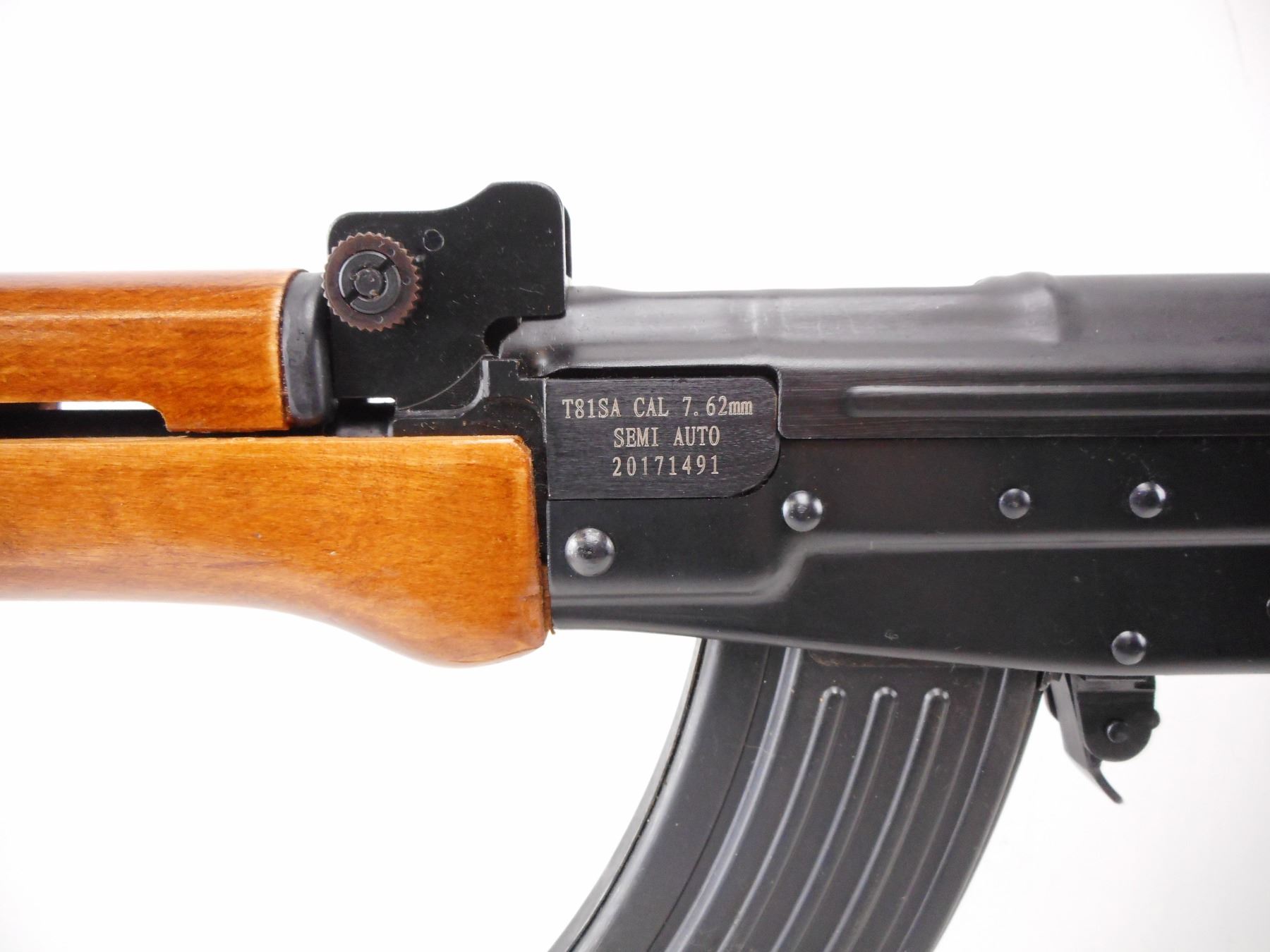 NORINCO, MODEL: TYPE 81, CALIBER: 7.62 X 39, COMES WITH MAGAZINE,  SPACERS , BORE IS EXCELLENT. POST FRONT SIGHT WITH HOOD. ADJUSTABLE U  NOTCH REAR SIGHT. INTEGRAL GRENADE LAUNCHER. BLACK MATTE FINISH ON METAL PARTS. FOLDING BUTT STOCK. WOOD FOREND, HANDGUARD AND PISTOL GRIP. SLING SWIVELS. CLEANING ROD. METAL SHOWS SLIGHT HANDLING MARKS AND WEAR. STOCK SHOWS SLIGHT HANDLING MARKS AND WEAR. , ACTION: SEMI AUTOMATIC , BARREL LENGTH: 18 3/4", CONDITION: 9/10, SERIAL # 20171491, CLASS: CANADIAN NON RESTRICTED CLASS