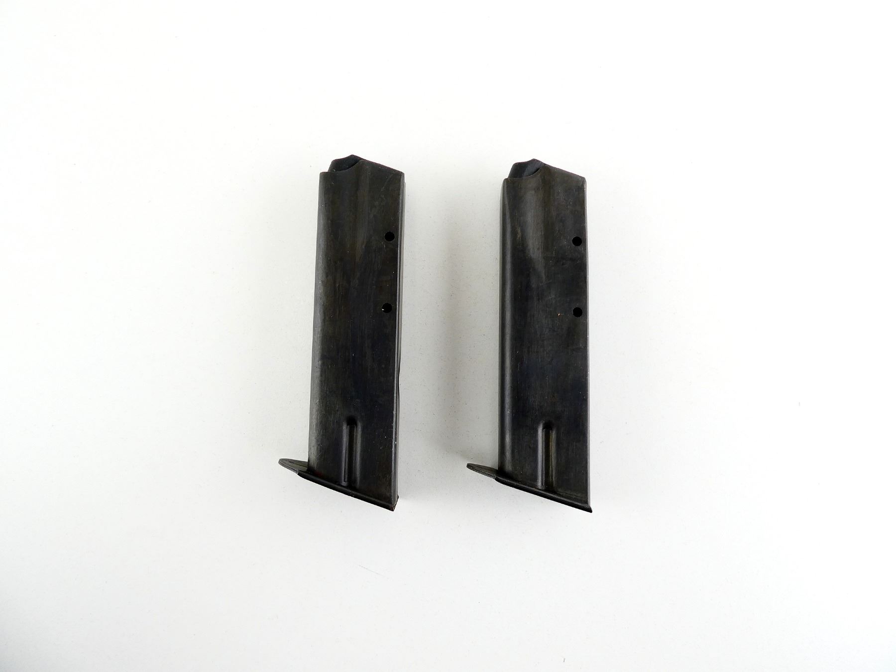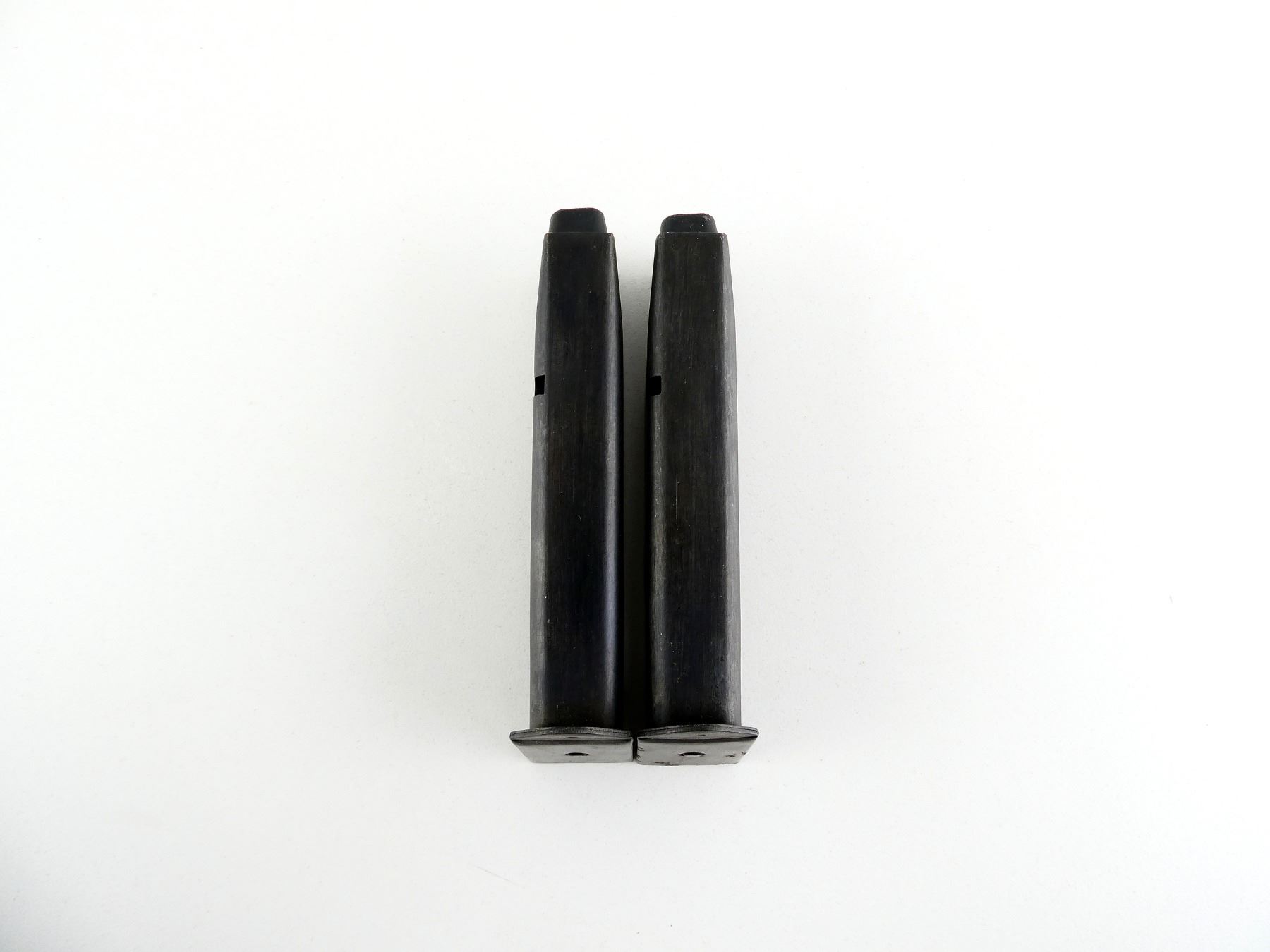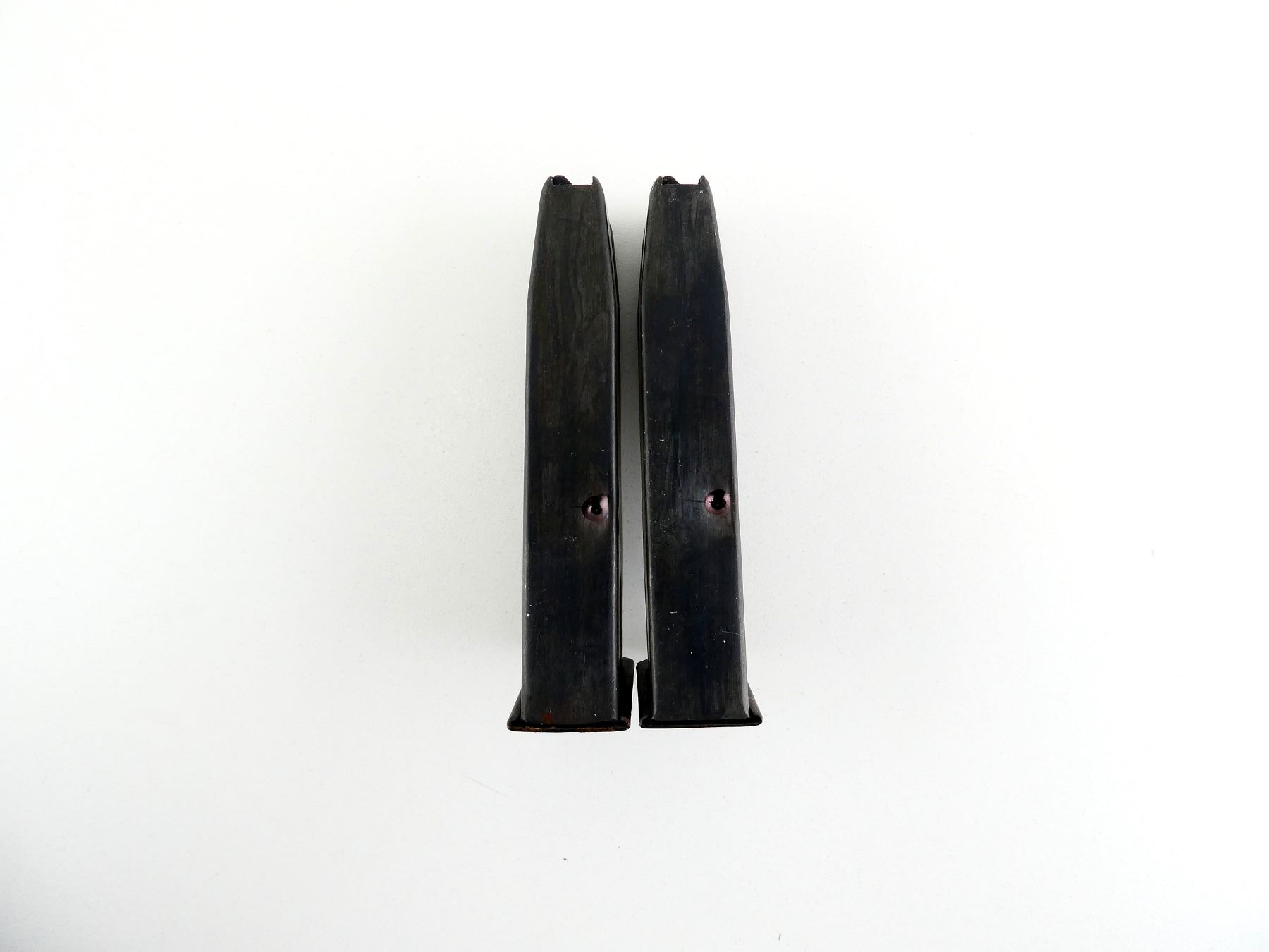 LOT INCLUDES; (2) 9MM LUGER, 10/15 ROUND PINNED MAGS, BLUED STEEL CONSTRUCTION, UNMARKED. SEE PHOTOS. PAL REQUIRED.