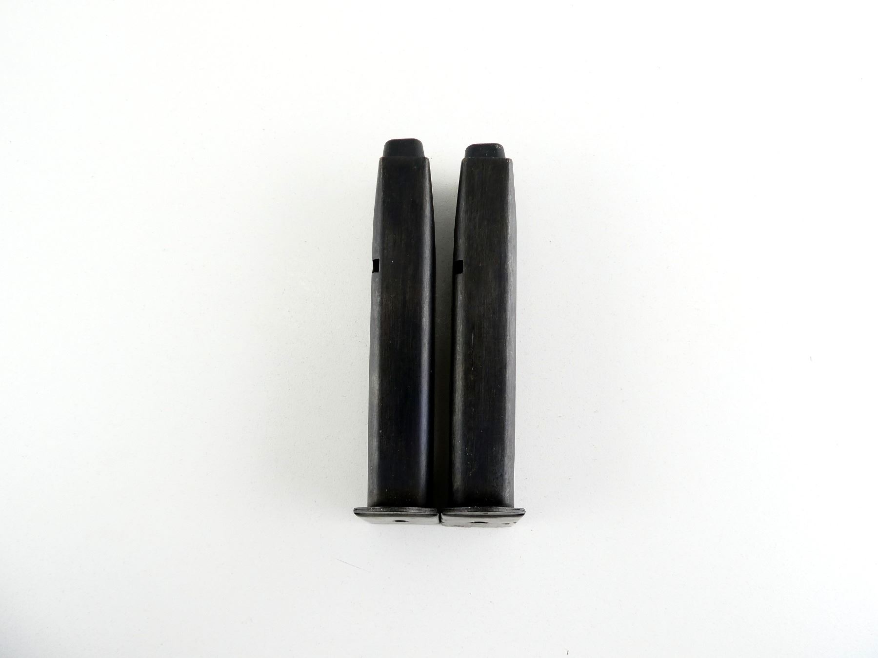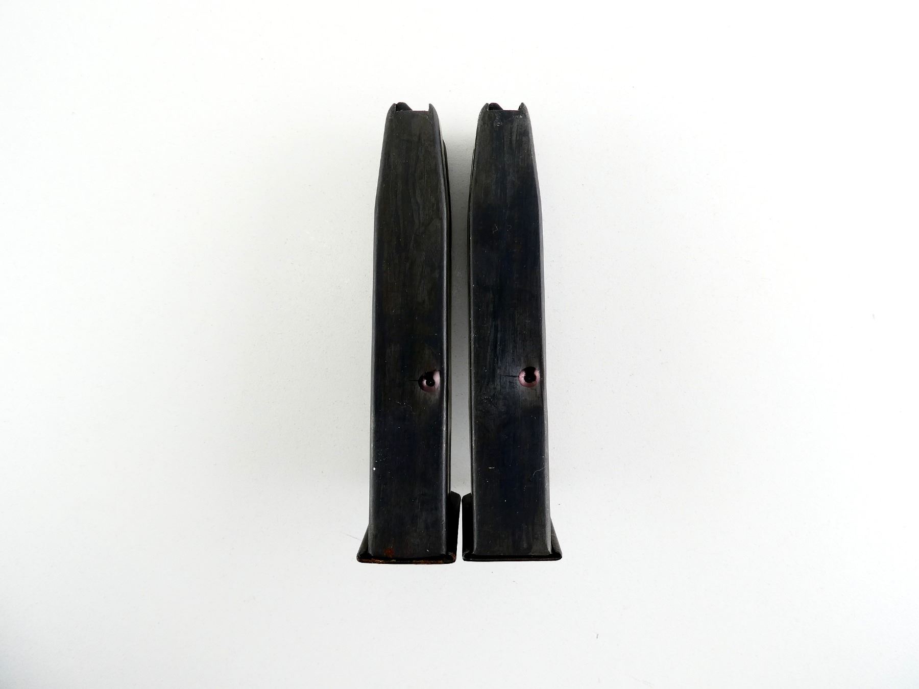 LOT INCLUDES; (2) 9MM LUGER, 10/15 ROUND PINNED MAGS, BLUED STEEL CONSTRUCTION, UNMARKED. SEE PHOTOS. PAL REQUIRED.