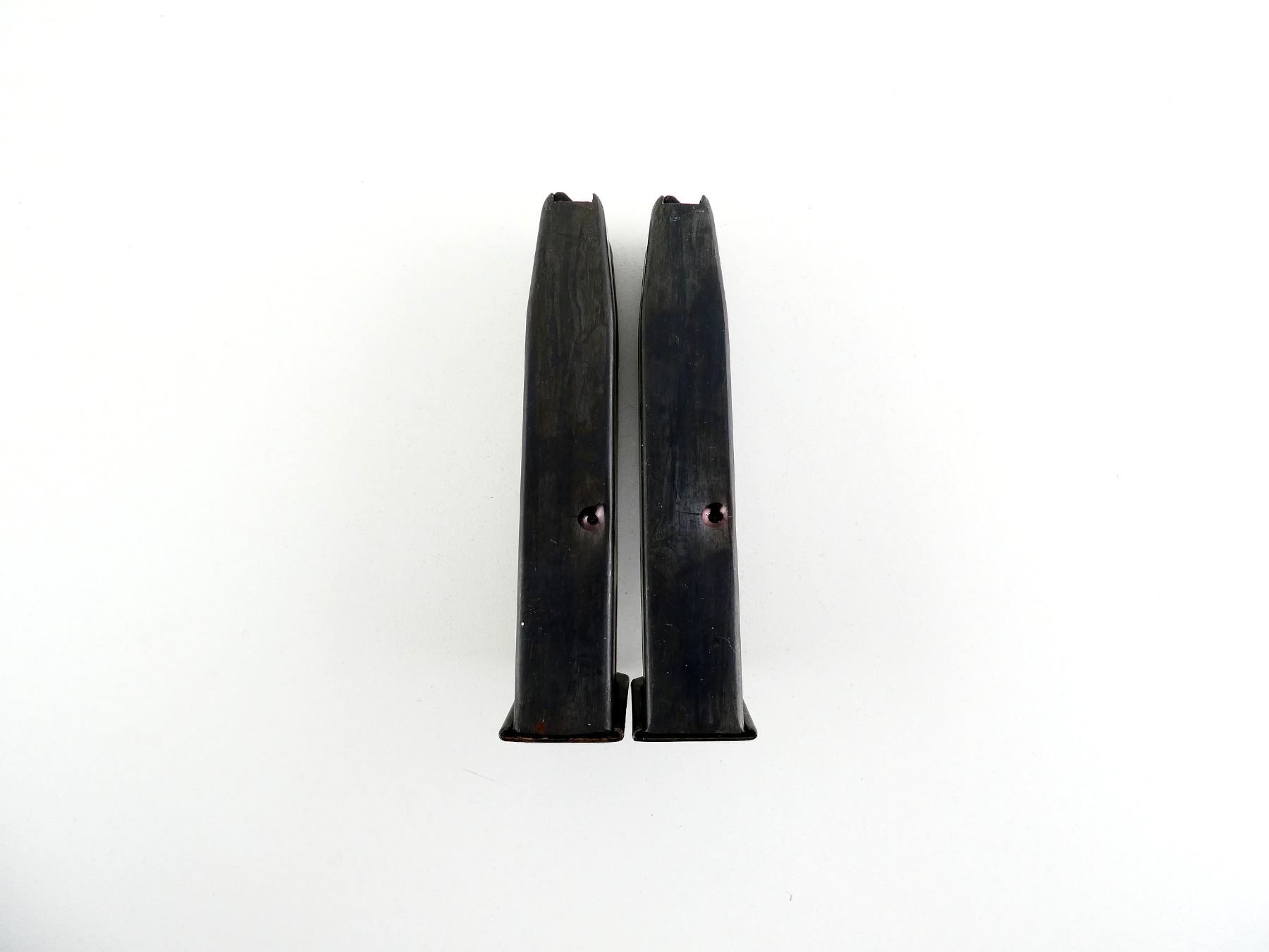 LOT INCLUDES; (2) 9MM LUGER, 10/15 ROUND PINNED MAGS, BLUED STEEL CONSTRUCTION, UNMARKED. SEE PHOTOS. PAL REQUIRED.