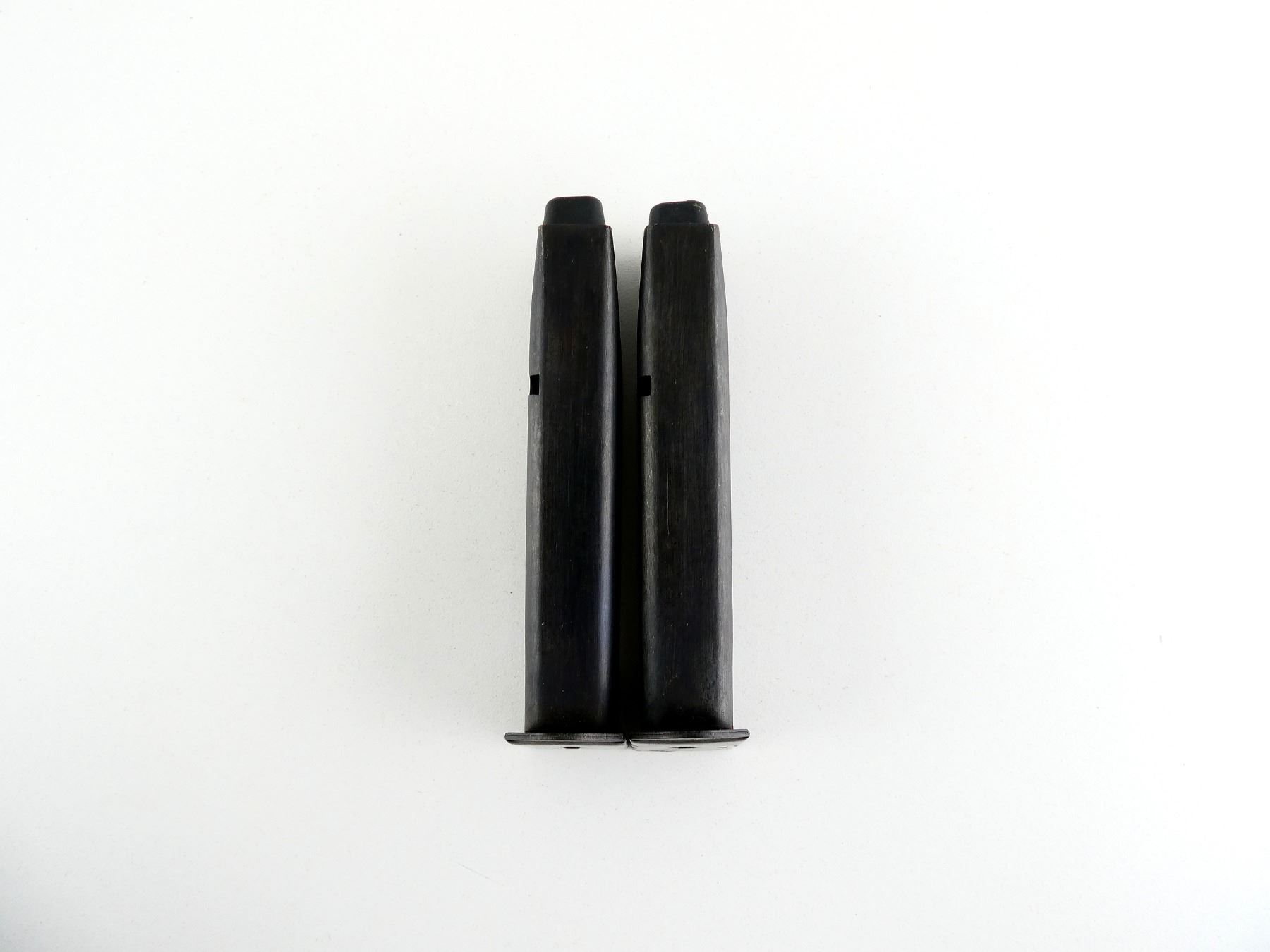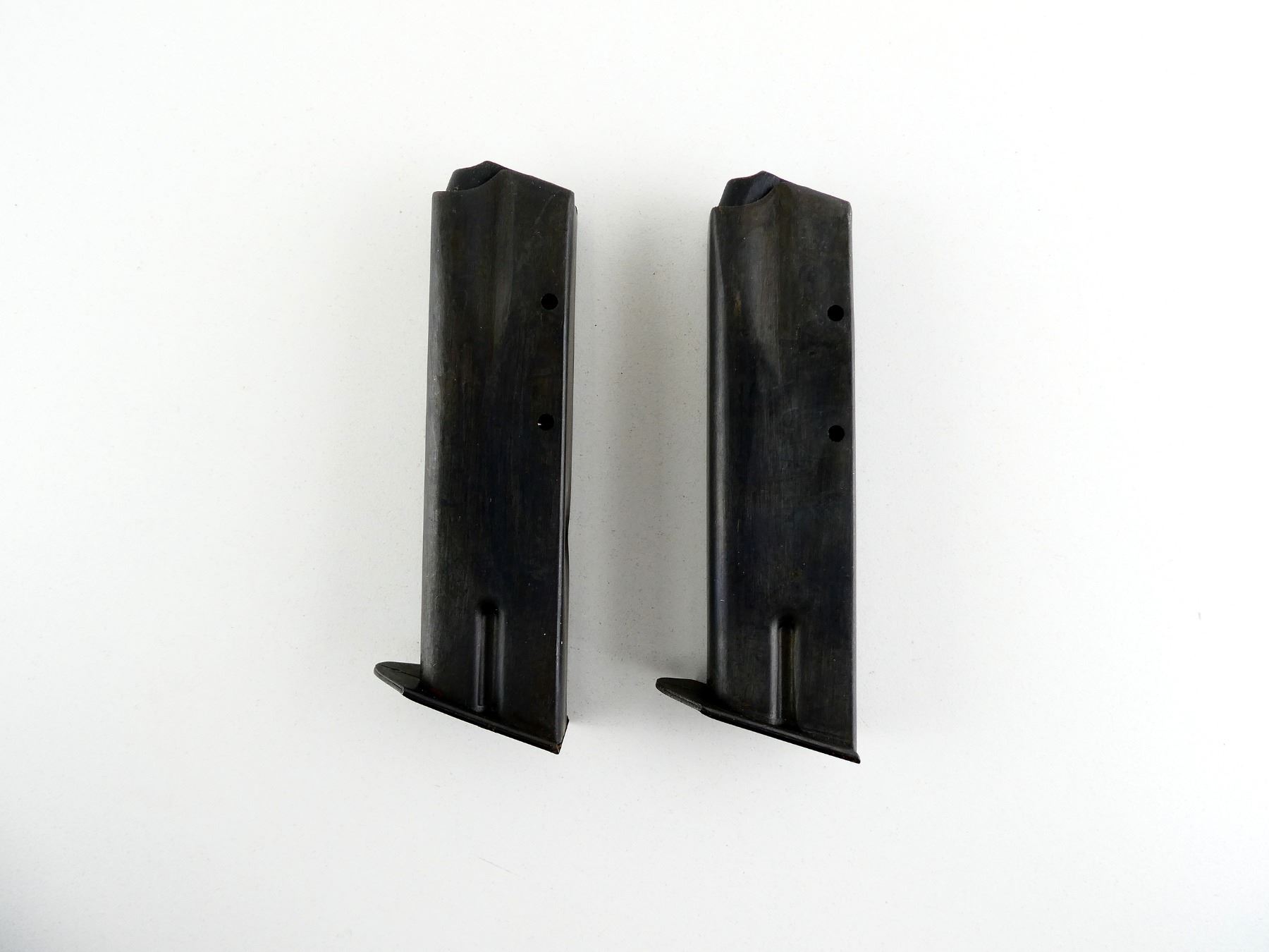 LOT INCLUDES; (2) 9MM LUGER, 10/15 ROUND PINNED MAGS, BLUED STEEL CONSTRUCTION, UNMARKED. SEE PHOTOS. PAL REQUIRED.
