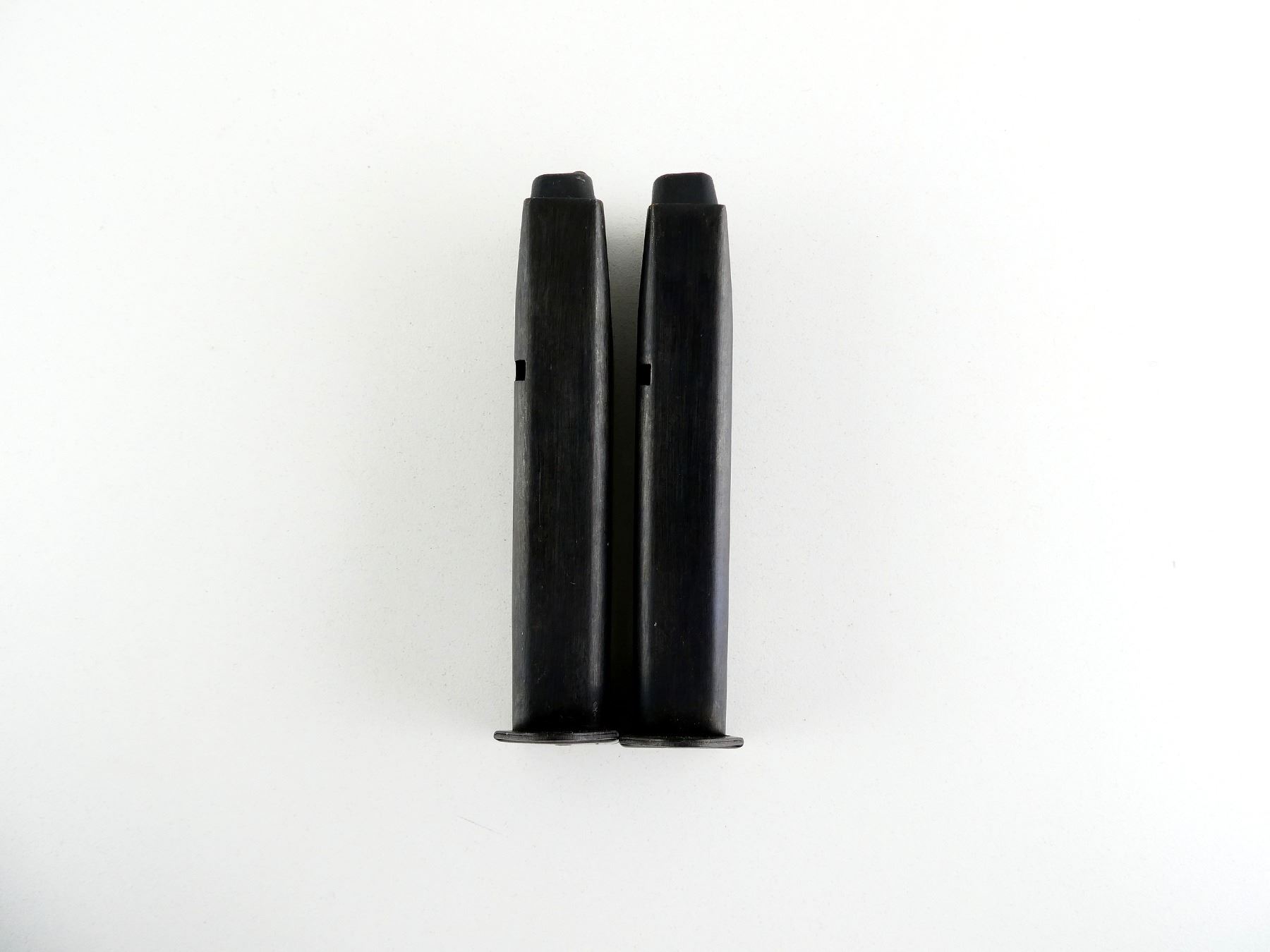 LOT INCLUDES; (2) 9MM LUGER, 10/15 ROUND PINNED MAGS, BLUED STEEL CONSTRUCTION, UNMARKED. SEE PHOTOS. PAL REQUIRED.