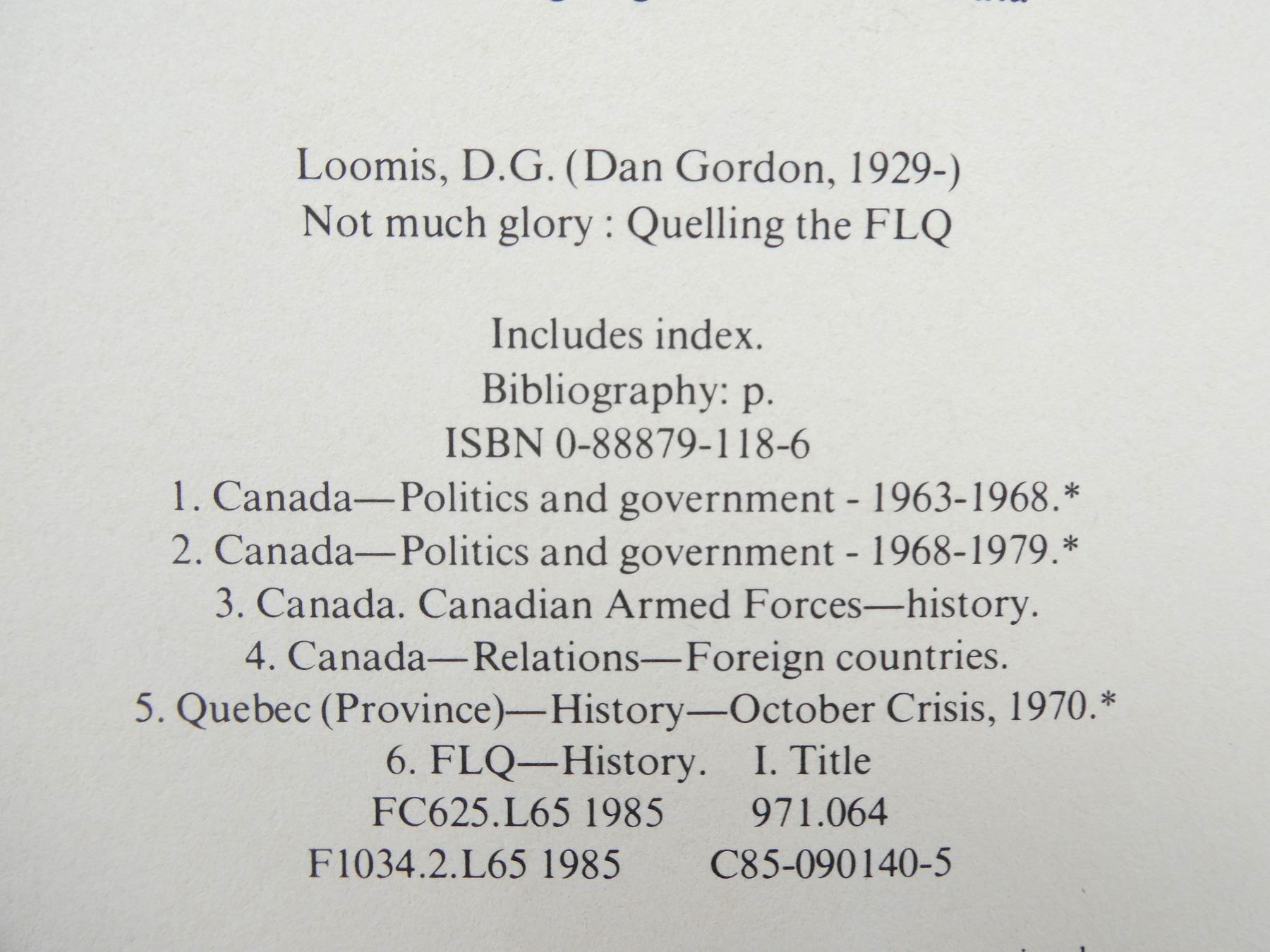 "NOT MUCH GLORY, QUELLING THE F.L.Q." BOOK